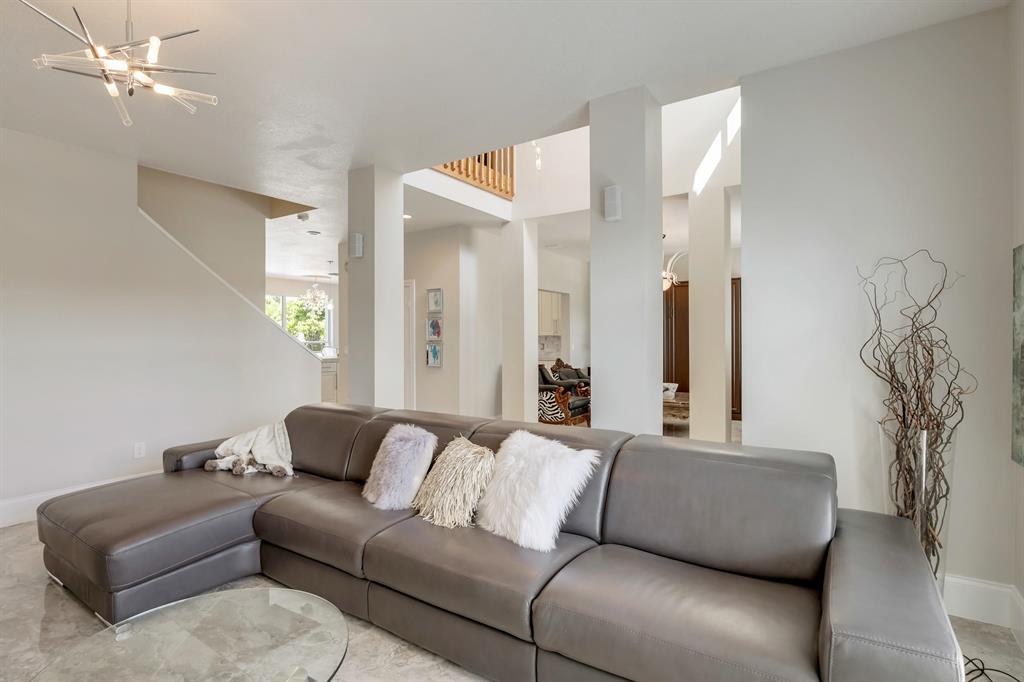 Majestic estate pool home in private treed setting. The first level of this spacious home features sparkling oversized porcelain tiles, a fully renovated gourmet kitchen with 42'' soft closing cabinets, a center island, GE monogram stainless steel appliances, marble countertops & backsplash & a walk in pantry. The living room/den has an alcove with a wet bar and wine cooler.Laundry room with oversized farm sink is conveniently situated off the kitchen & garage entry. Garage floor is vinyl tiled. The second level has Brazilian Cherrywood floors. The 5 bedrooms (one of which is being used as an additional walk in closet ) are generous in size. The second bathroom has been beautifully renovated.