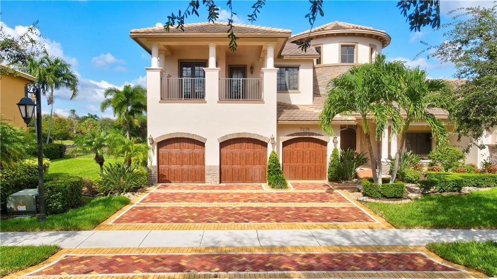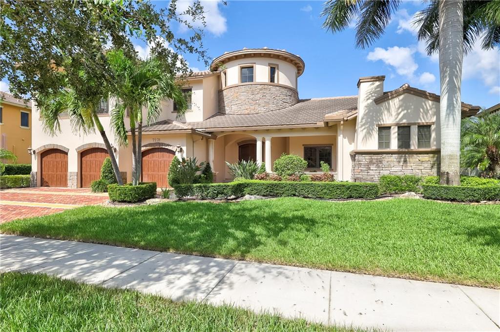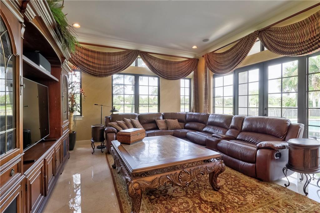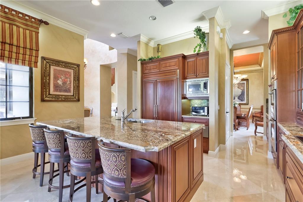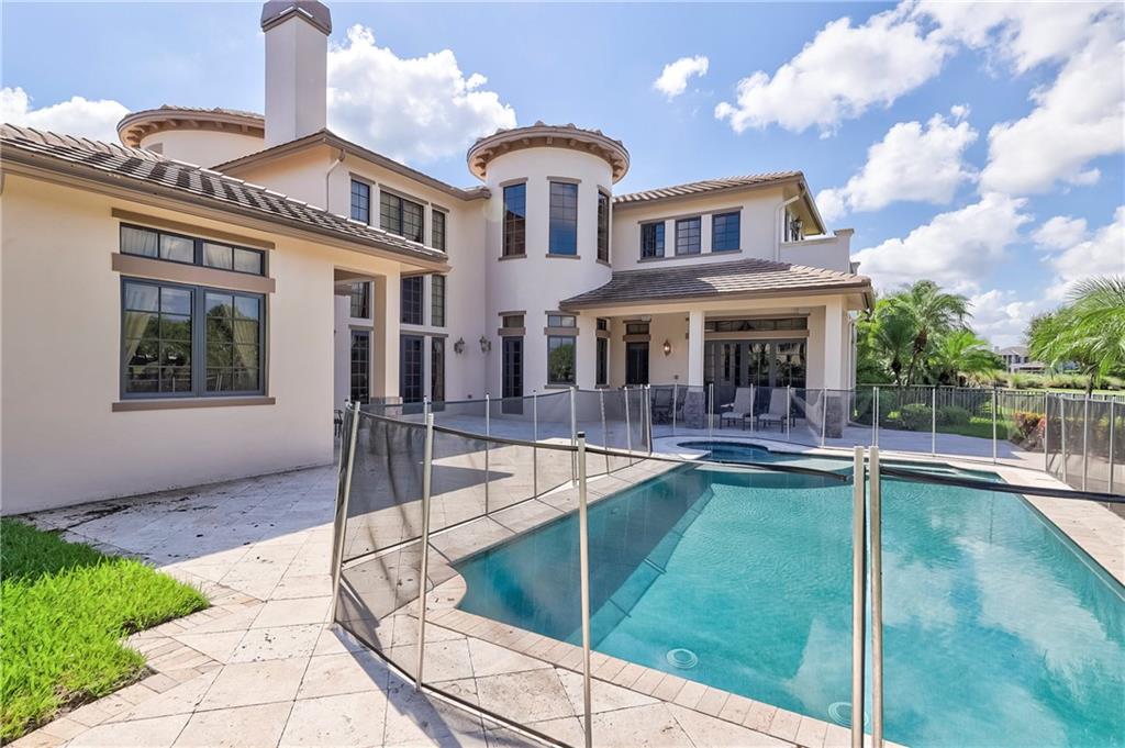 Magnificent mini mansion overlooking a par3, lush green fairway and wide water sits on one of the finest streets in PGCC. This lovely custom home features 7 bedrooms, + a large bonus room w a balcony overlooking the pool and golf course w 5.5 baths. Upgraded chef's kitchen w one of a kind granite, double ovens, SS appliances, spiral wood staircase, fireplace and 3 bedrooms down, including the oversized master w sitting area. All impact window and doors, two balconies, central vac, stunning views and pool/marble patio area. Quality at it finest in the lovely La Cuesta model, only 4 built and each have their own charm and upgrades making this a semi custom home.