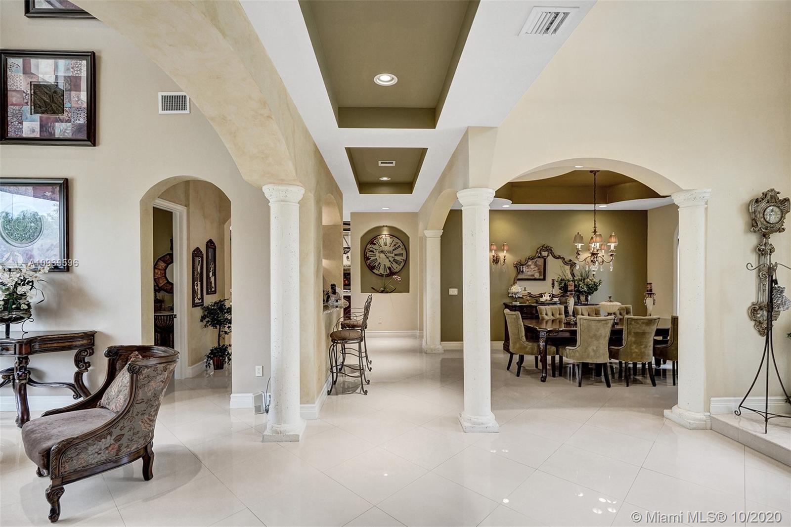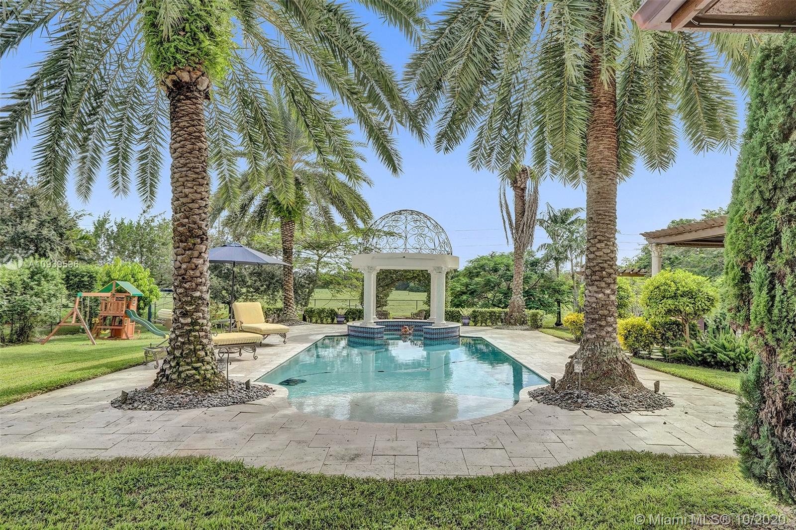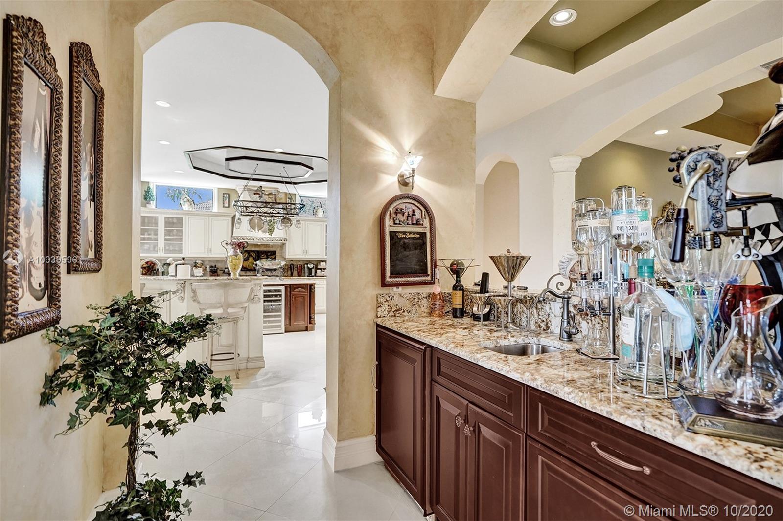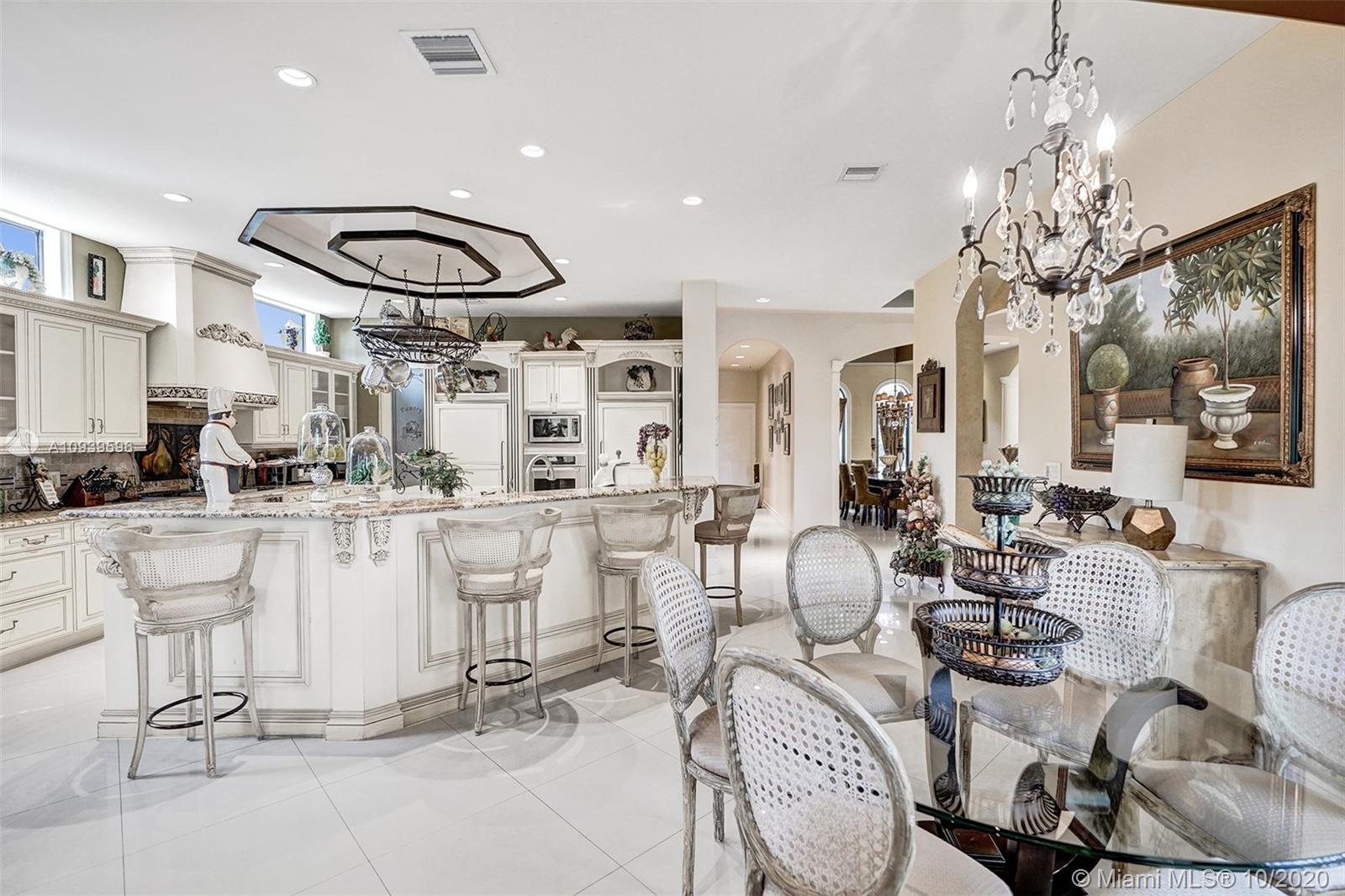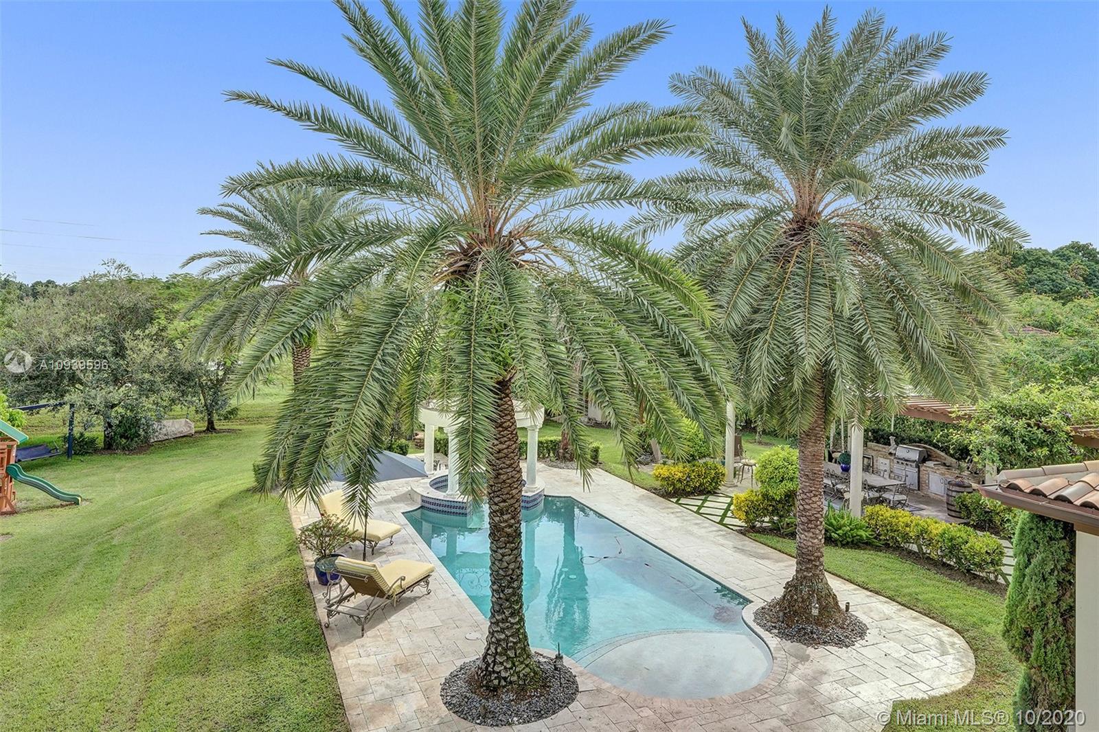 This 6 bed 4 1/2 bath home on an acre lot is everything you've ever dreamed of. The property is on a private street and has incredible curb appeal with impeccably done landscape and lighting. There's plenty of room to park all your toys on the paved side driveway. The home is connected to city water and has all the bells and whistles like impact windows and doors and is a Lutron Caseta smart home. Huge Master with ensuite located on the first floor. Half bath also on the first floor with pool access. The large two island kitchen includes a Subzero fridge and freezer, Wolf Gas Range, and separate pantry. If you rather cook outside the property also has a summer kitchen, fire pit, and a sunset view that is to die for. Furniture is negotiable.
