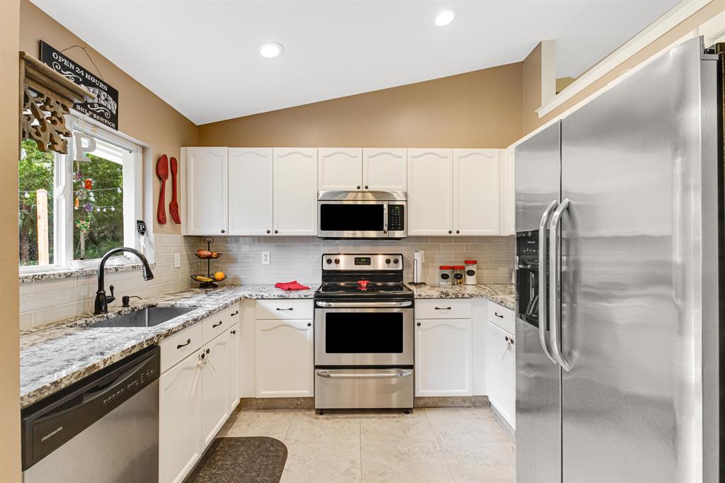 Come see this adorably renovated home! The house sits on a over 1.25 acres, as the last house on street, It features solar panels, travertine floors in main living area, laminate in bedrooms, remodeled kitchen with granite and stainless appliances, beautifully updated bathrooms, fresh exterior paint, newer light fixtures and recessed lighting, new front door and back french doors.