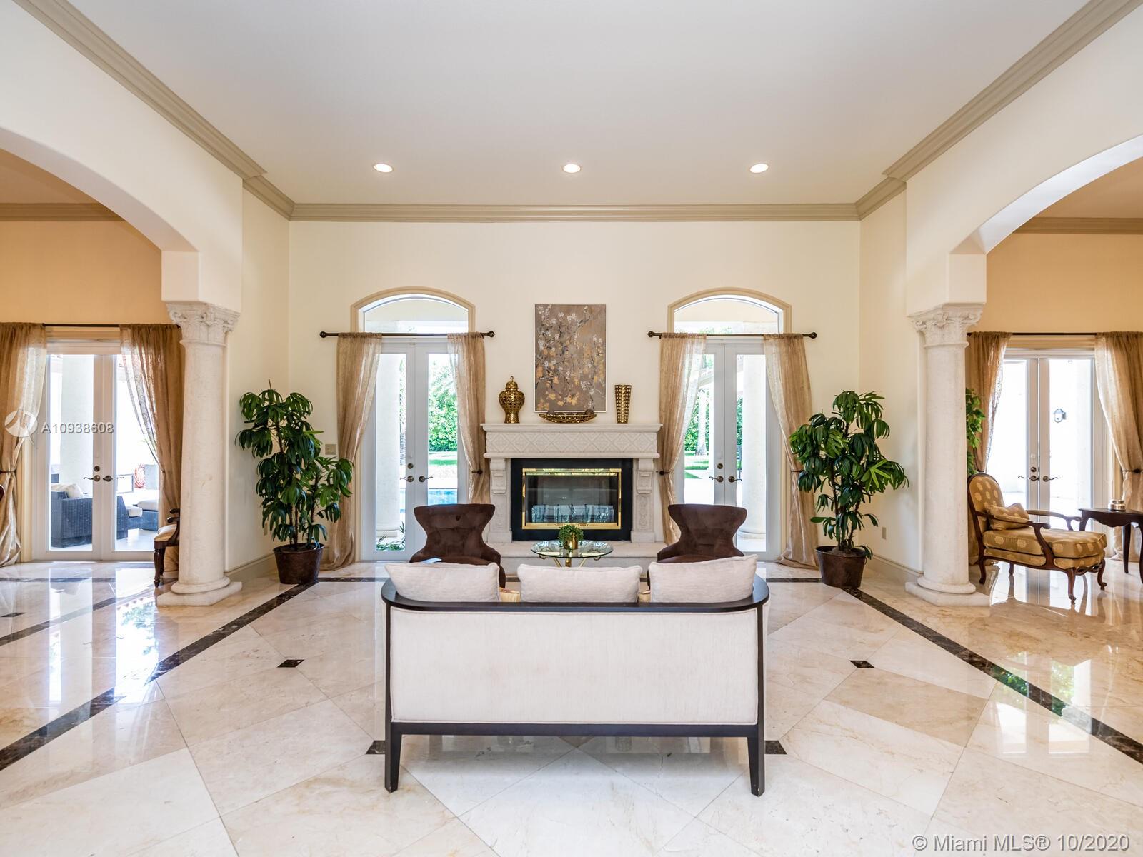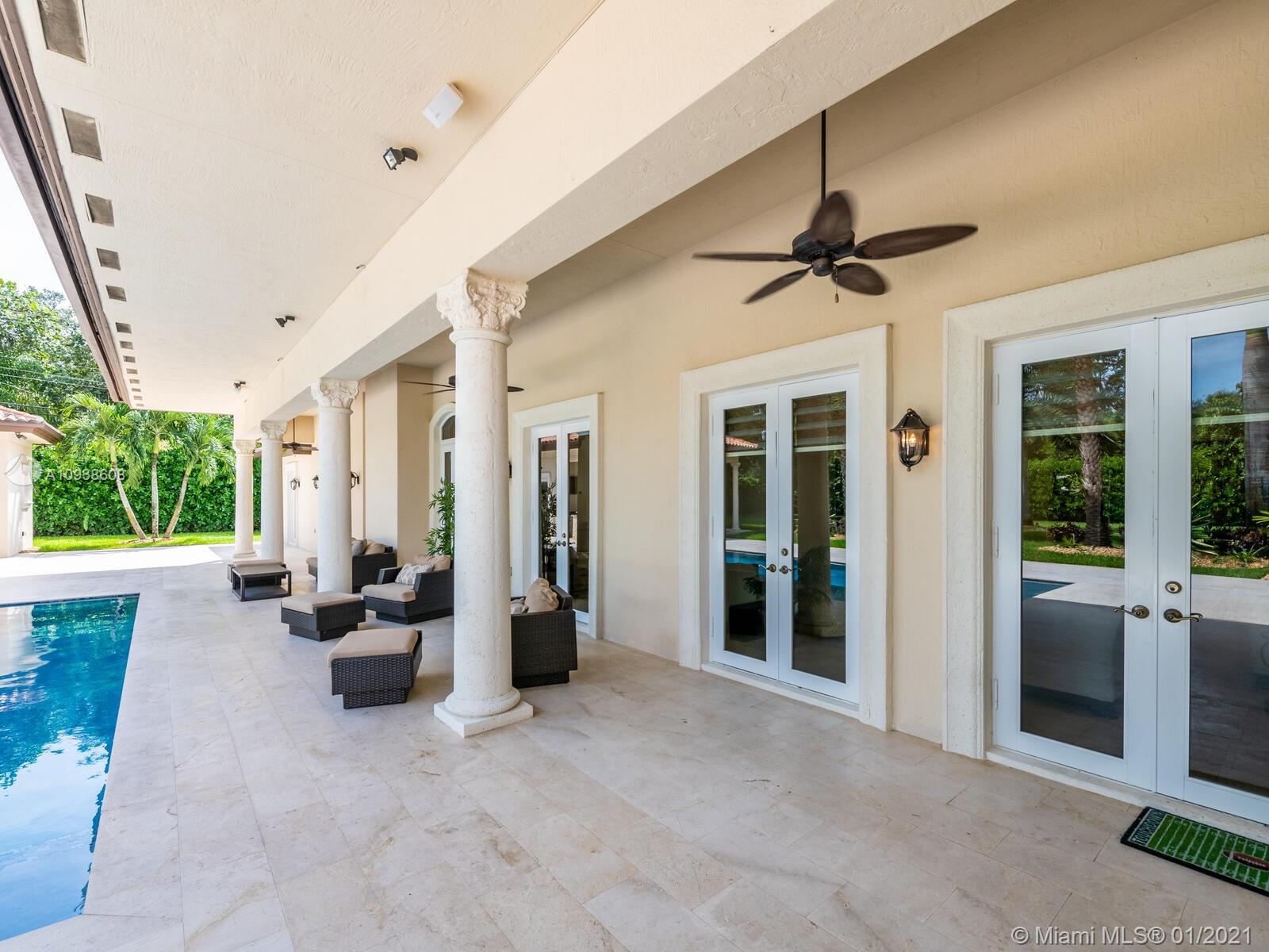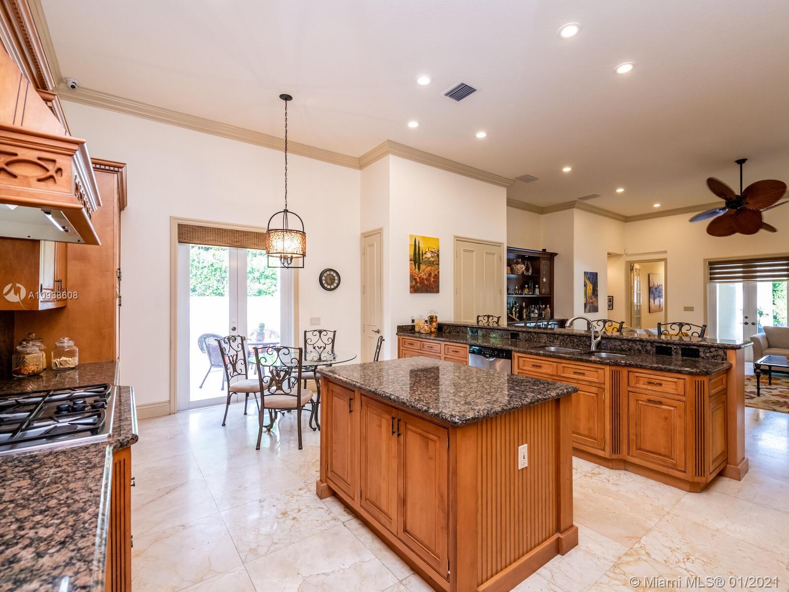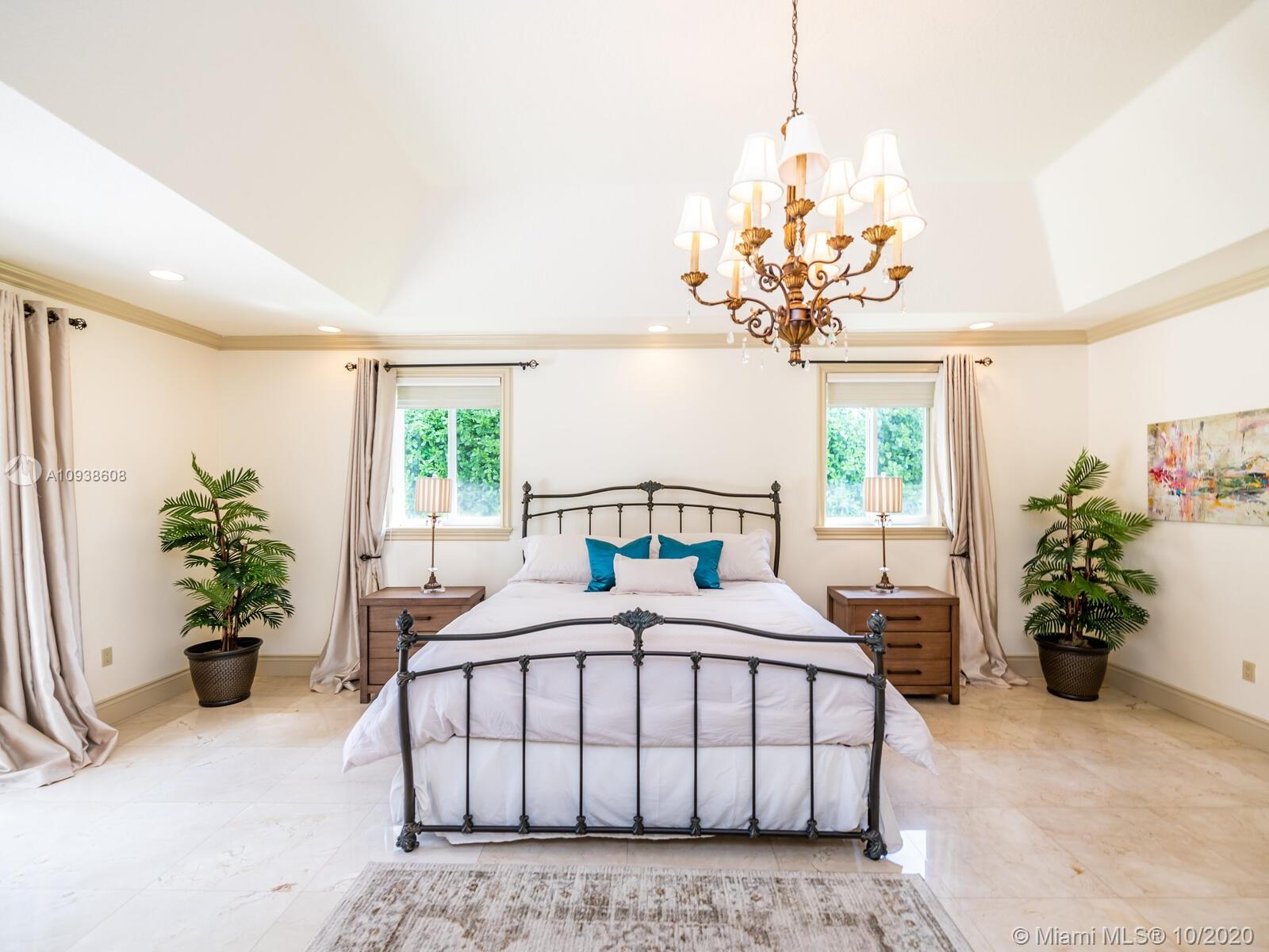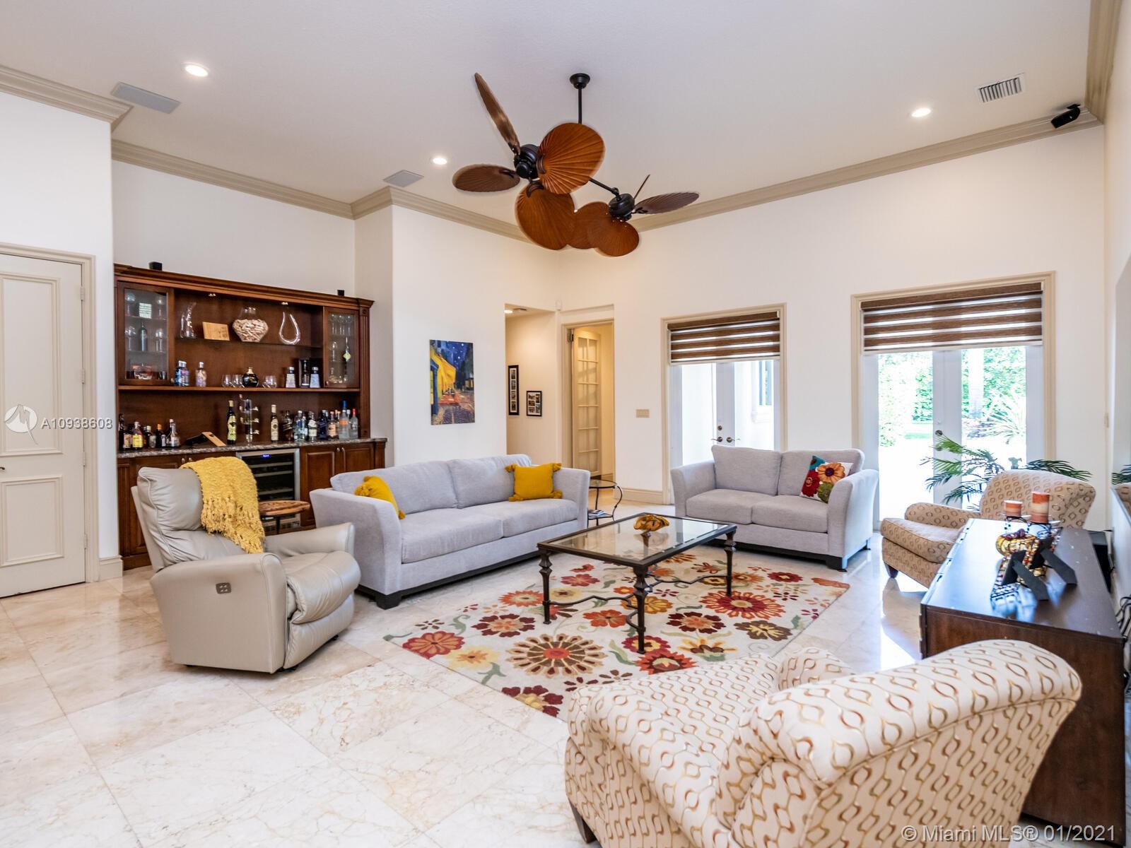 Gated and gorgeous north Pinecrest private one-story acre estate with stunning palms positioned on huge backyard. Enjoy family gatherings with sonos surround sound and televisions while soaking in the sumptuous saline heated pool. Full summer kitchen and 830 sf apartment-sized poolside guest house with full cabana bath. Impact glass, marble floors, generously high ceilings, chef’s kitchen w/gas and full house 2-tank generator. Chicago brick paver motor court entry with 2-car garage offers ample space for guests and any size event. Top rated Pinecrest Schools.