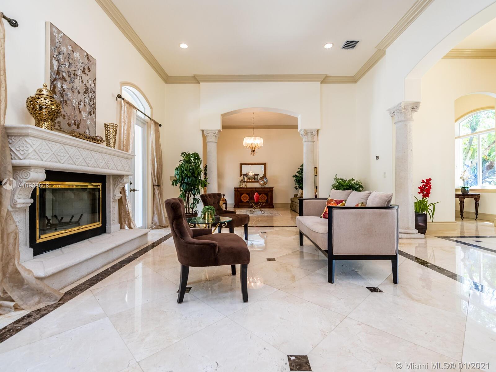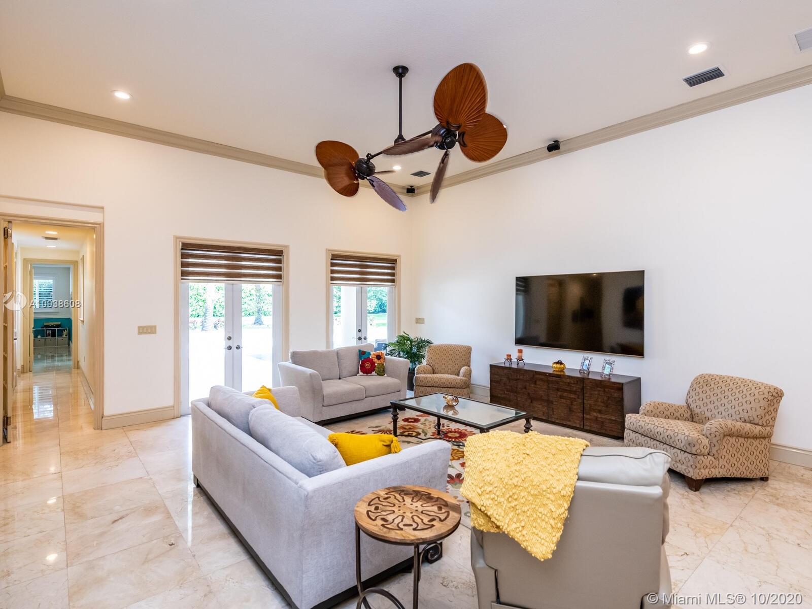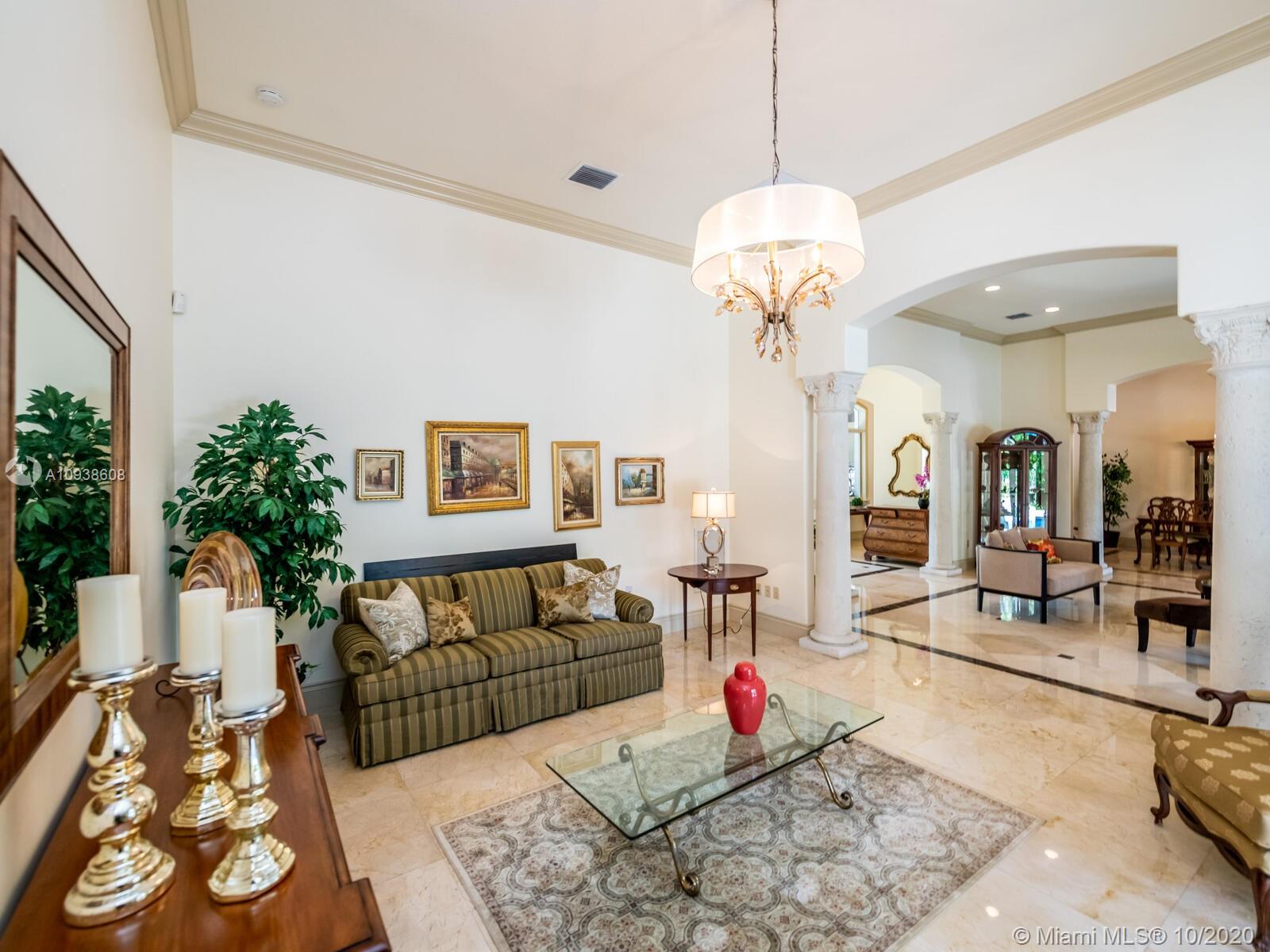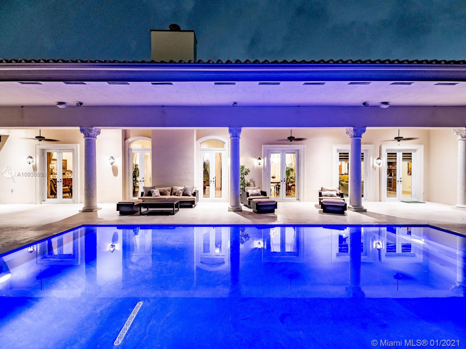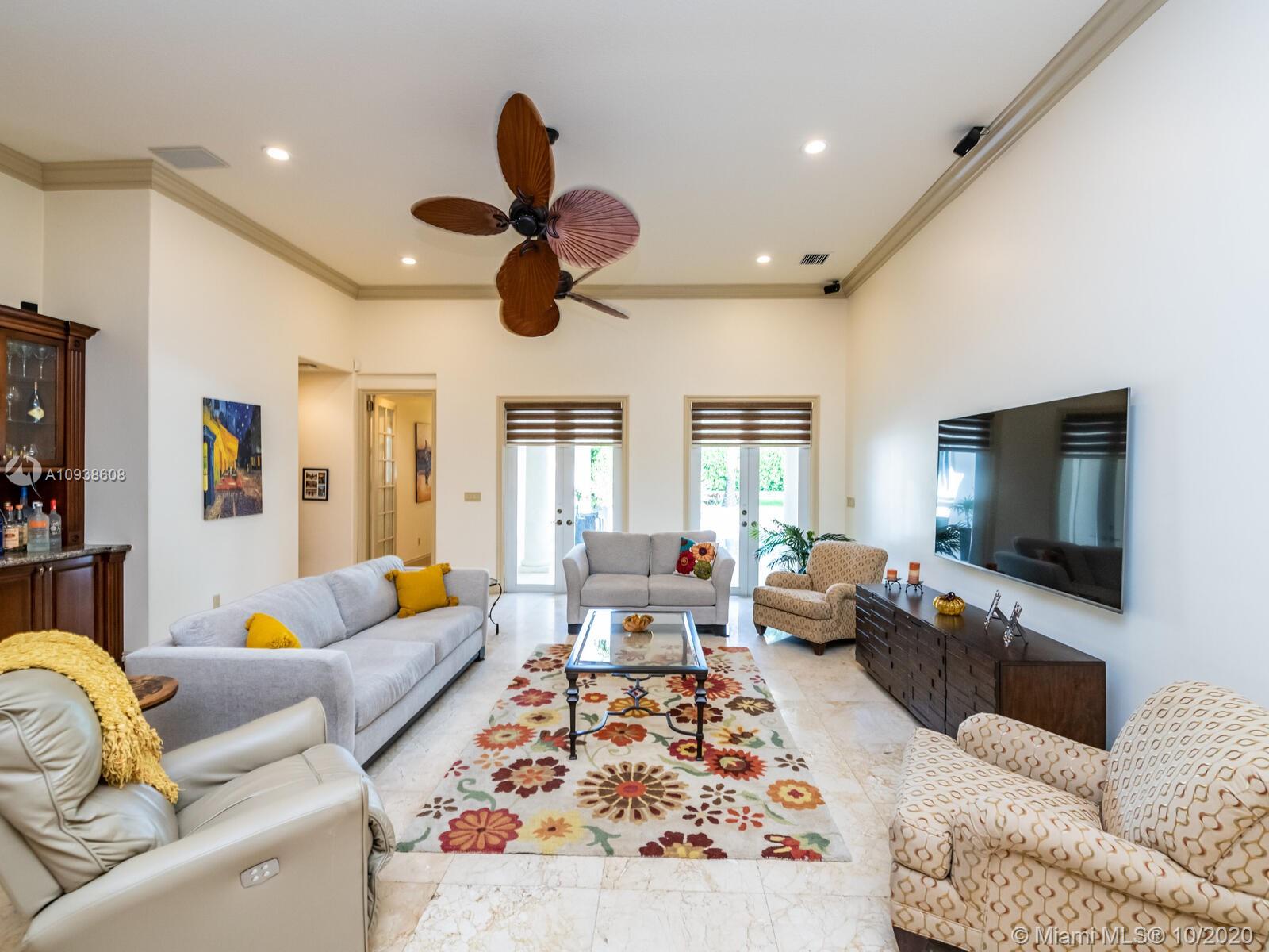 Gated and gorgeous north Pinecrest private one-story acre estate with stunning palms positioned on huge backyard. Enjoy family gatherings with sonos surround sound and televisions while soaking in the sumptuous saline heated pool. Full summer kitchen and 830 sf apartment-sized poolside guest house with full cabana bath. Impact glass, marble floors, generously high ceilings, chef’s kitchen w/gas and full house 2-tank generator. Chicago brick paver motor court entry with 2-car garage offers ample space for guests and any size event. Top rated Pinecrest Schools.