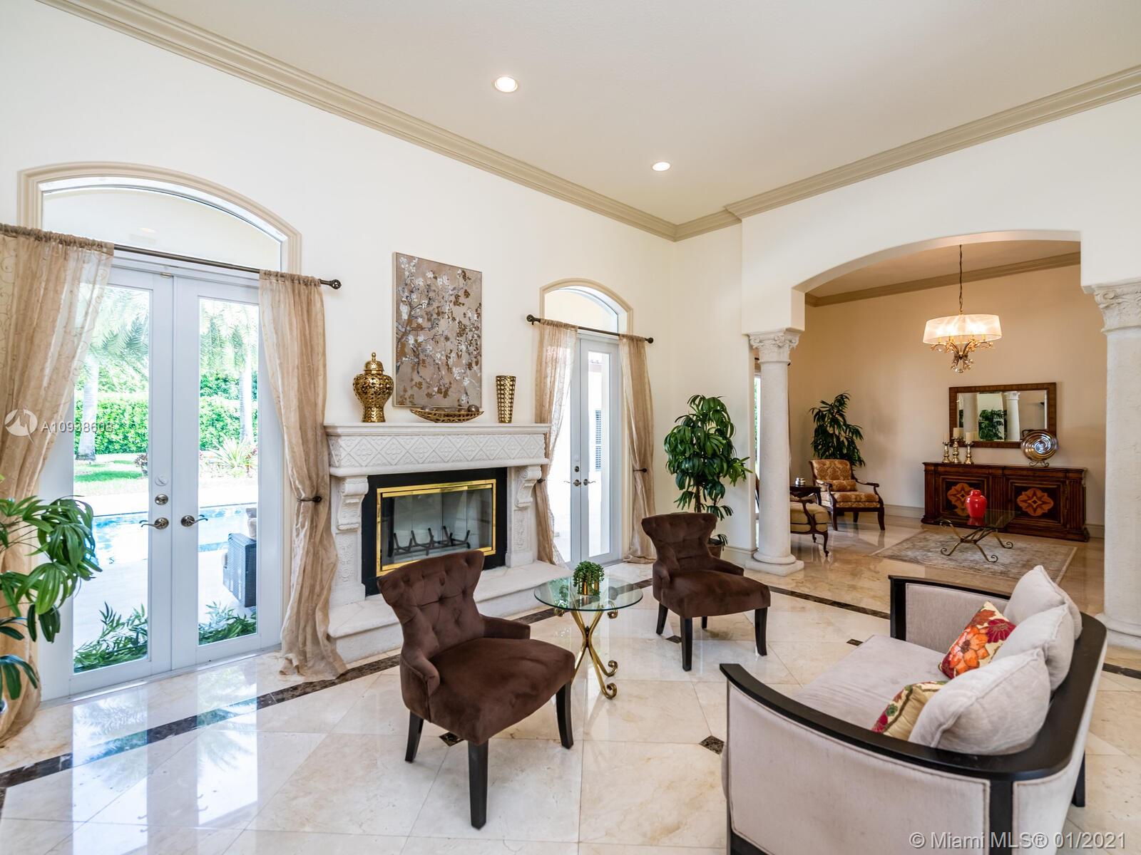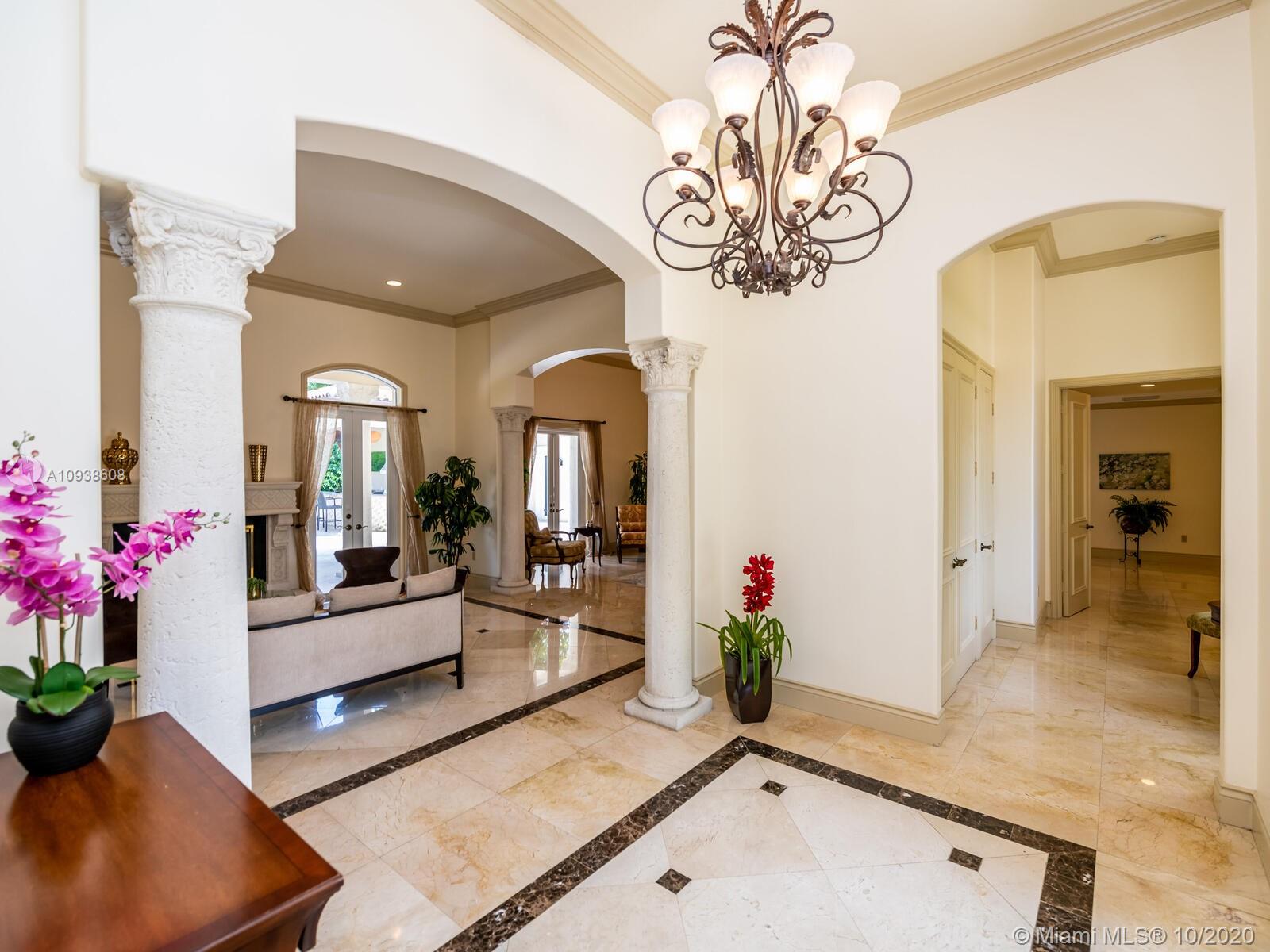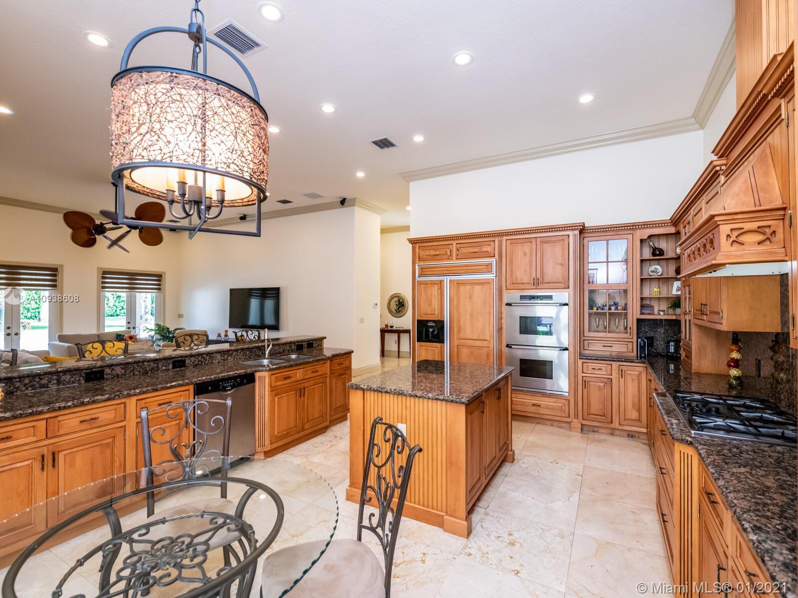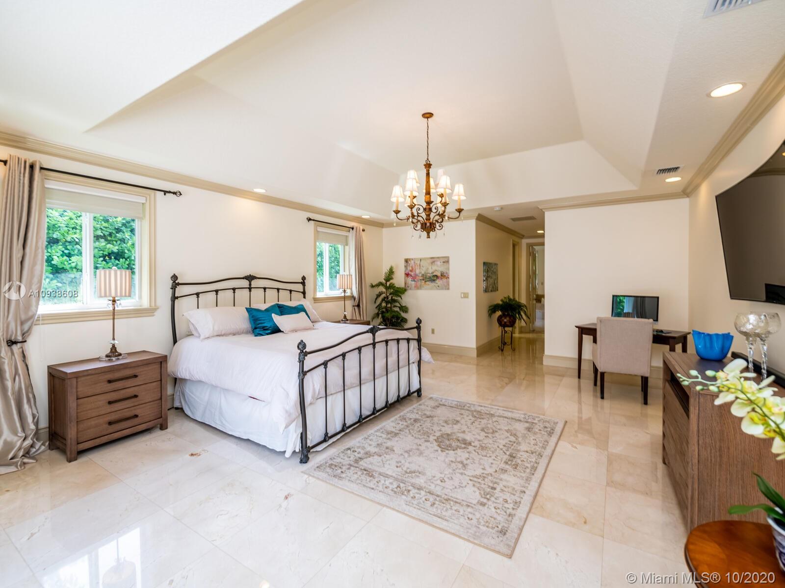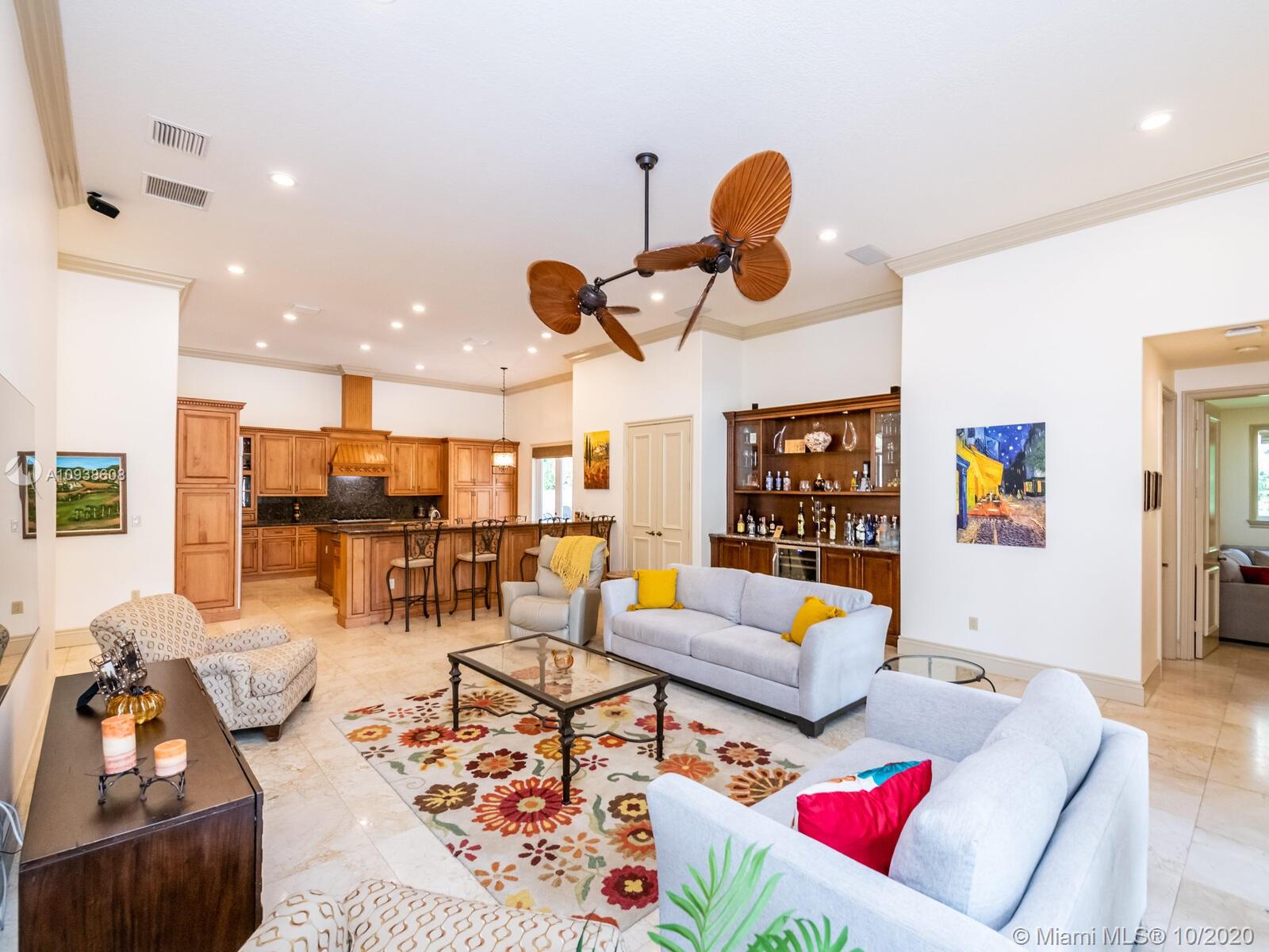 Gated and gorgeous north Pinecrest private one-story acre estate with stunning palms positioned on huge backyard. Enjoy family gatherings with sonos surround sound and televisions while soaking in the sumptuous saline heated pool. Full summer kitchen and 830 sf apartment-sized poolside guest house with full cabana bath. Impact glass, marble floors, generously high ceilings, chef’s kitchen w/gas and full house 2-tank generator. Chicago brick paver motor court entry with 2-car garage offers ample space for guests and any size event. Top rated Pinecrest Schools.
