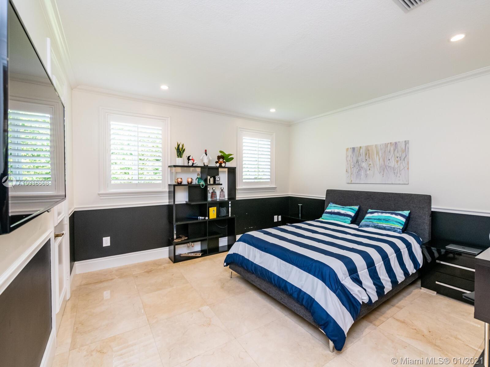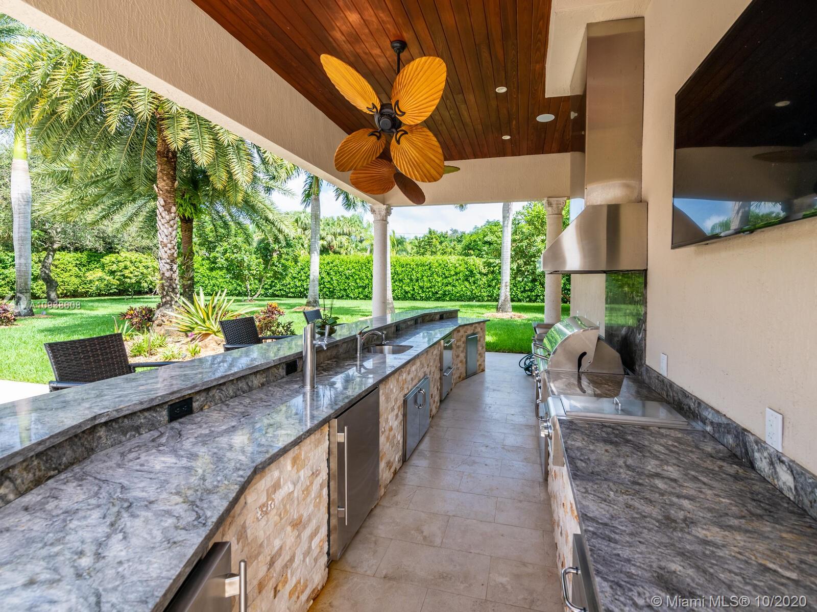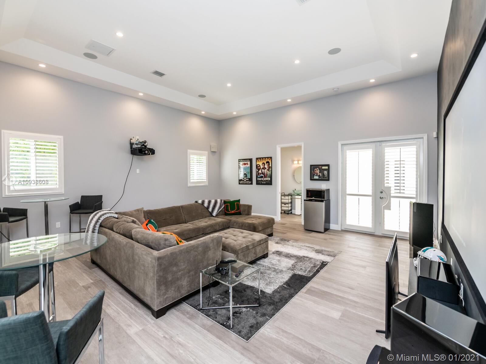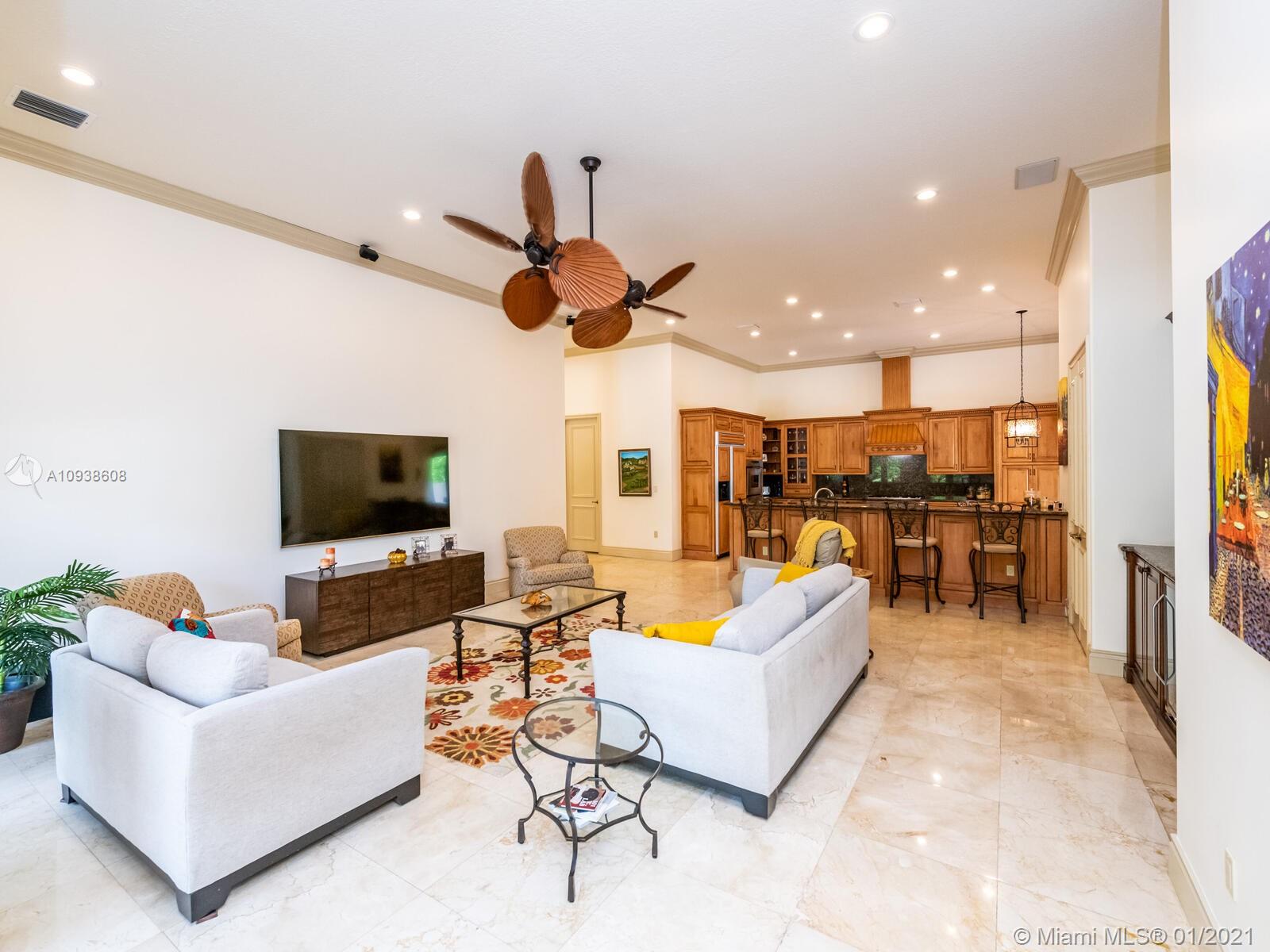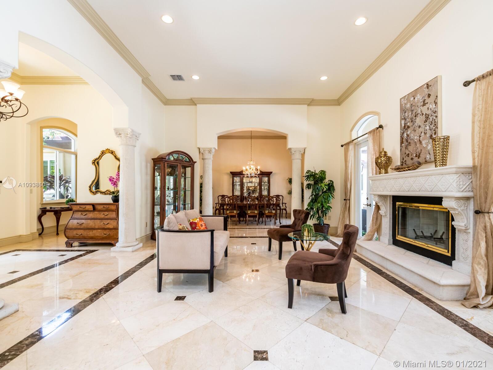 Gated and gorgeous north Pinecrest private one-story acre estate with stunning palms positioned on huge backyard. Enjoy family gatherings with sonos surround sound and televisions while soaking in the sumptuous saline heated pool. Full summer kitchen and 830 sf apartment-sized poolside guest house with full cabana bath. Impact glass, marble floors, generously high ceilings, chef’s kitchen w/gas and full house 2-tank generator. Chicago brick paver motor court entry with 2-car garage offers ample space for guests and any size event. Top rated Pinecrest Schools.