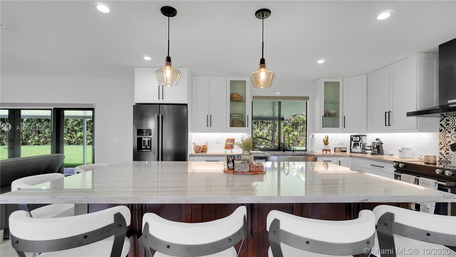 Immaculate SW Ranches home on a fantastic lot! This home features brand new kitchen with quartz countertops, cabinets and appliances. This home was completely gutted and restructured to an open concept. Marble floors throughout the house and bathrooms. This unique home also features an in-law suite with its own bathroom and wet bar. The patio and porch pavers were just installed, as well as the awning above patio. This incredible home sits on nearly a 2 acre lot. If you're looking for more space, this home has you covered. Country-Suburban living at its best! Schedule your showing today!