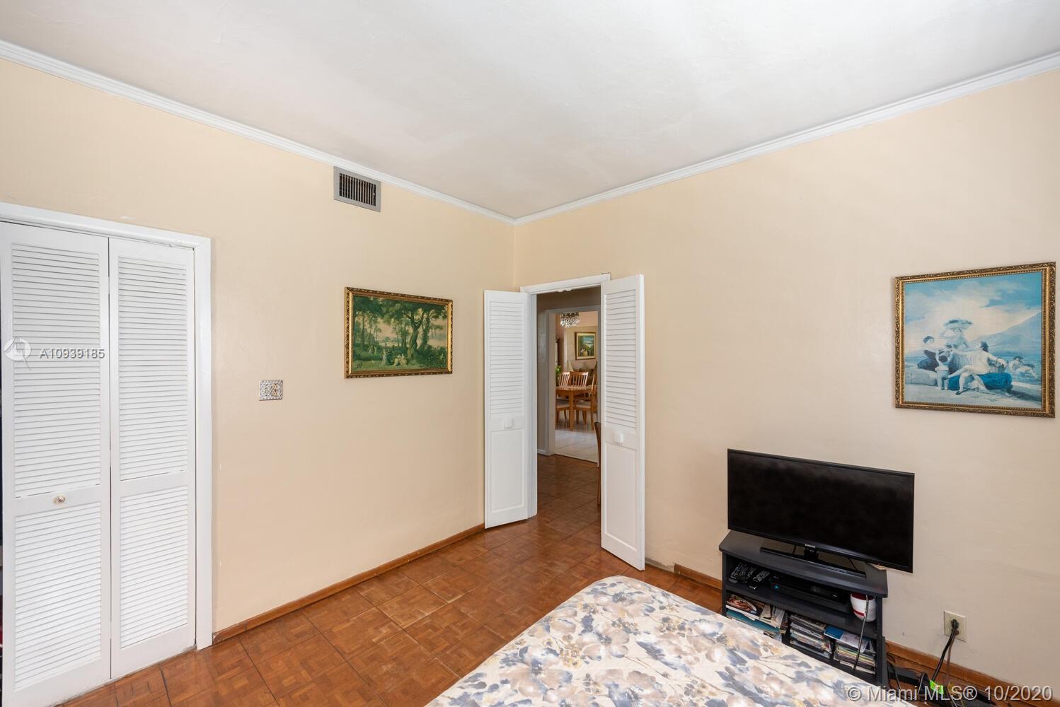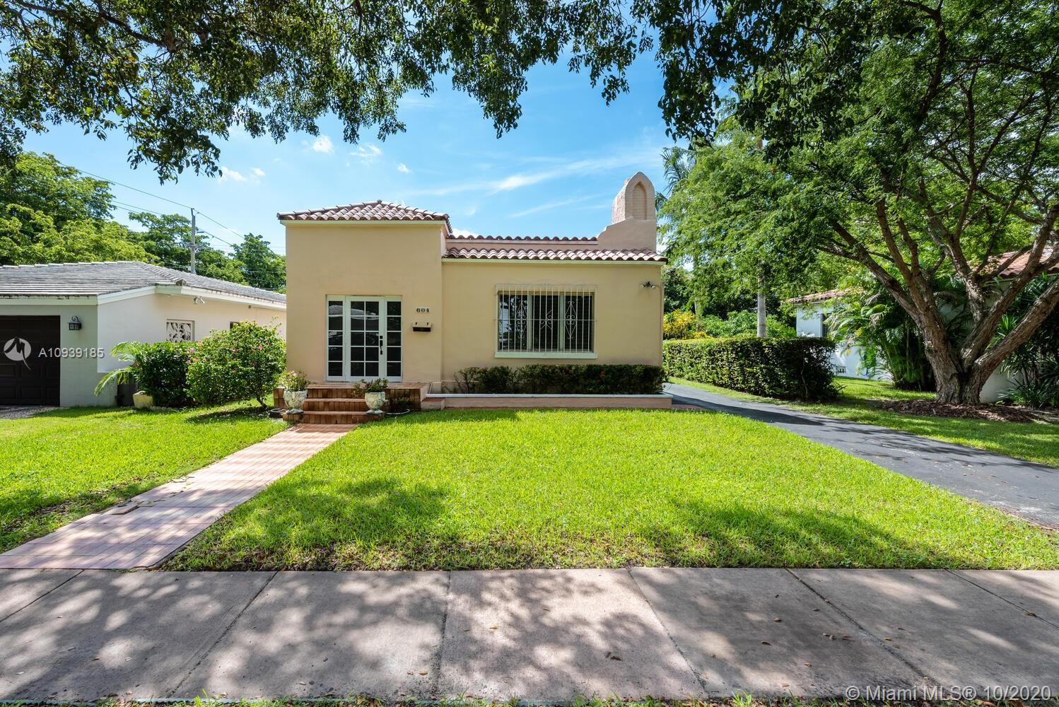 Wonderful opportunity to make this adorable house your home. Nestled within a quintessential Coral Gables tree-lined street this lovely 3 bedroom and 2 bathroom house is walking distance from the Granada Golf Course and Coral Gables Athletic Club. Enter the house through impact glass doors into an inviting front foyer and then make your way to a nice sized living and dining room combination. Step into a small vestibule to reach the bathroom and two bedrooms off the dining room. The kitchen with updated appliances leads you to an indoor washer dryer closet and the 3rd bedroom at the back of the house with en suite bath and glass doors to a small covered patio. 24-hour notification needed to make an appointment.