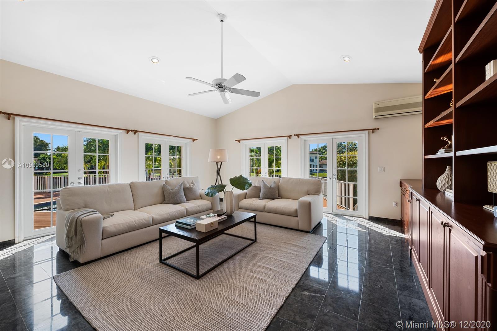 Luxurious waterfront property w/relaxing views from spacious poolside deck w/105' seawall on the tranquil freshwater canal of Gables by the Sea.This 4 bedroom, 3.5 bathroom home located in one of Coral Gables best gated communities offers open floor plan perfect for entertaining plus 2 family rooms.The best schools nearby including Pinecrest Elementary! Stroll the tree-lined streets to Lugo Point for fantastic views of Biscayne Bay and the community park is complete with playground, basketball & volleyball.