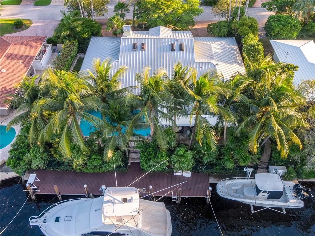 Spectacular waterfront home with pool & ocean access in Coral Ridge! No fixed bridges. Walk in through the antique impact door to mahogany floors, vaulted ceilings and open living space with lots of natural light coming through windows & skylights. This home has 3 bedrooms, 3 bathrooms, an office and an entertainment room with gas fire place. Relax by the salt water pool surrounded by lush landscaping, over looking 100ft of water front with boat lift and private dock. No expense was spared when remodeling this one of a kind home. Most features have been updated after 2017, Metal Roof, including AC units, sprinklers, dock, boat lift & more. Excellent location in a quiet neighborhood only 10 minutes from down town Ft. Lauderdale, close to the beach and Ft. Lauderdale Airport. Great schools.