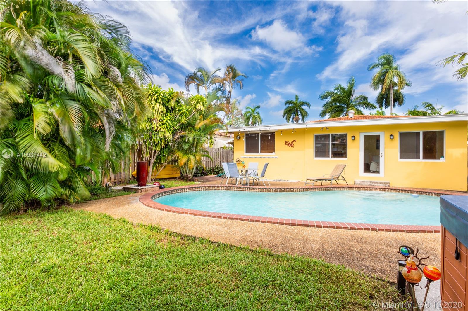 Charming one-story 2/2 Pool Home in prestigious Hollywood Lakes, East of US1 and minutes away from beach. Home features two bonus rooms: a den/office and a Florida Room which can easily be converted into a third bedroom. Florida room opens up to a fenced backyard, swimming pool, Jacuzzi and BBQ area. House has been beautifully renovated & updated with high impact windows/door and two tastefully renovated bathrooms. Kitchen features stainless steel appliances and new stove. Wood flooring throughout & tiles in den/office, Florida Room, kitchen & 2 bathrooms. Carport and shed. This property is located on a quiet street close to beach, restaurants, shopping & entertainment!