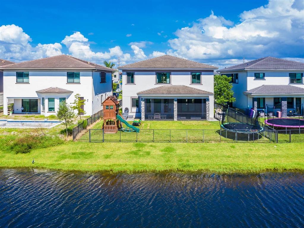 Welcome home to the luxurious Cascata community. This newly constructed PRICED TO SELL MODERN home w/ center lake view has a fenced in backyard This desirable 5/4 3 car garage is a rare find in this community. The large upgraded kitchen and the extended pavers are a few upgrades in the home. The custom 5th bedroom floor to ceiling glass wall gives you the modern luxury space you desire. Upgrades: generator hookup, SS gas appliances, stone wall with fire place, screened in patio, quartz countertops, diagonal 24x24 tiles and spacious upgraded laundry room. Home is fully functional smart home with impact glass. The 5 star resort style community club brings the vacation to you with Pool ,playground, kid splash pad, indoor sports plex, gym, tennis court, party rooms and much more!