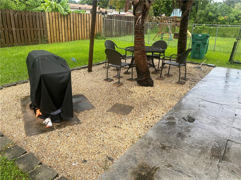 UPGRADED Half Duplex in Cooper City. Kitchen includes granite countertops, new cabinets/lighting, and 2018 Samsung refrigerator, featuring attached, spacious laundry room with 2012 Rheem 30-gallon hot water heater. Feel safe with Impact doors and windows, and a 2014 shingle roof. Central HVAC system installed in 2014 (featuring high-efficiency Trane, 2.5-ton unit). Enjoy the oversized, screened-in 20' x 8.8' patio with attached 5' x 3.5' locked storage. Tile floor throughout, and Florida terrazzo flooring in master bedroom & office. Upgraded vanity in bathroom with newly refinished bathtub. BBQ and have dinner outside under the trees while enjoying the spacious back yard. NO HOA, walk to A-rated school, and a piece of Cooper City to call your own.