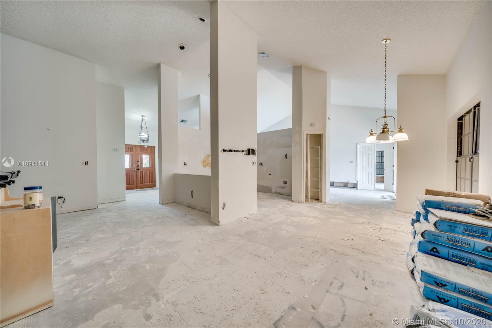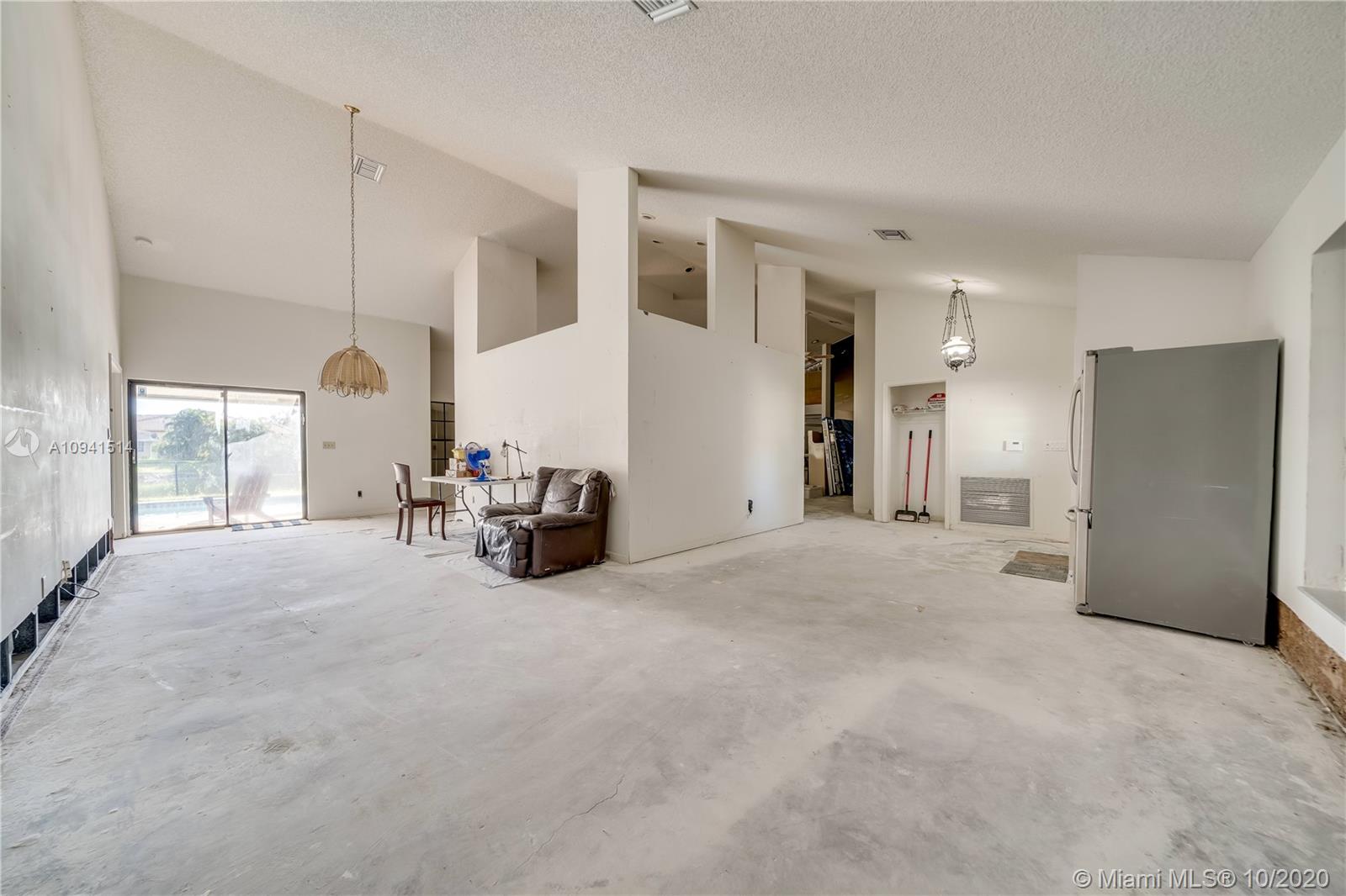 Perfect for end user wanting to buy into Jacaranda Cay at a fantastic price and remodel with all their personal taste/finishes, or investor! Cash Only! Desirable cul-de-sac, lakefront lot with almost 12K sq ft. Roof replaced in 2008. Panel hurricane shutters & impact garage door. 4 bed 2.5 bath, vaulted ceilings w/ split bedroom floorplan. Large pool. Fireplace. Newer AC. Demolition has already been completed for the buyer with all the floors kitchen & baths removed. Clean slate to work with. Well located! Minutes from major highways, shopping, airport, schools (American Heritage) & dining!