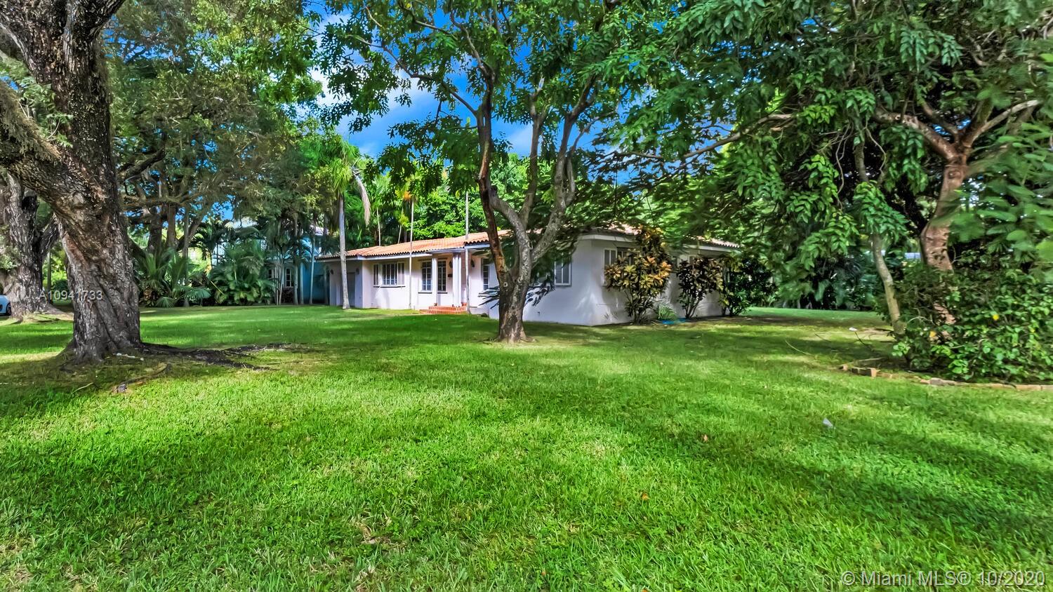 Your new home is a blank canvas ready to create a masterpiece. Sits on a desirable triple, corner lot with plenty of room to expand and surrounded by mature trees including a dreamy canopy, avocado, mango & lychee tree. Located in the heart of Coral Gables & only blocks to Miracle Mile shopping & dining, the Biltmore Hotel, Riviera & Granada golf courses, the Venetian pool & more. Boasts charming split floor plan layout with an inviting rotunda shaped family room that has a wall of windows & sun streaming in. Features roof ~10 years old, original terrazzo floors, panel shutters & a garage. A must see...