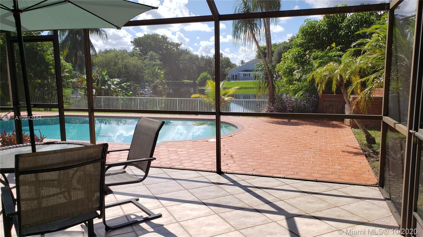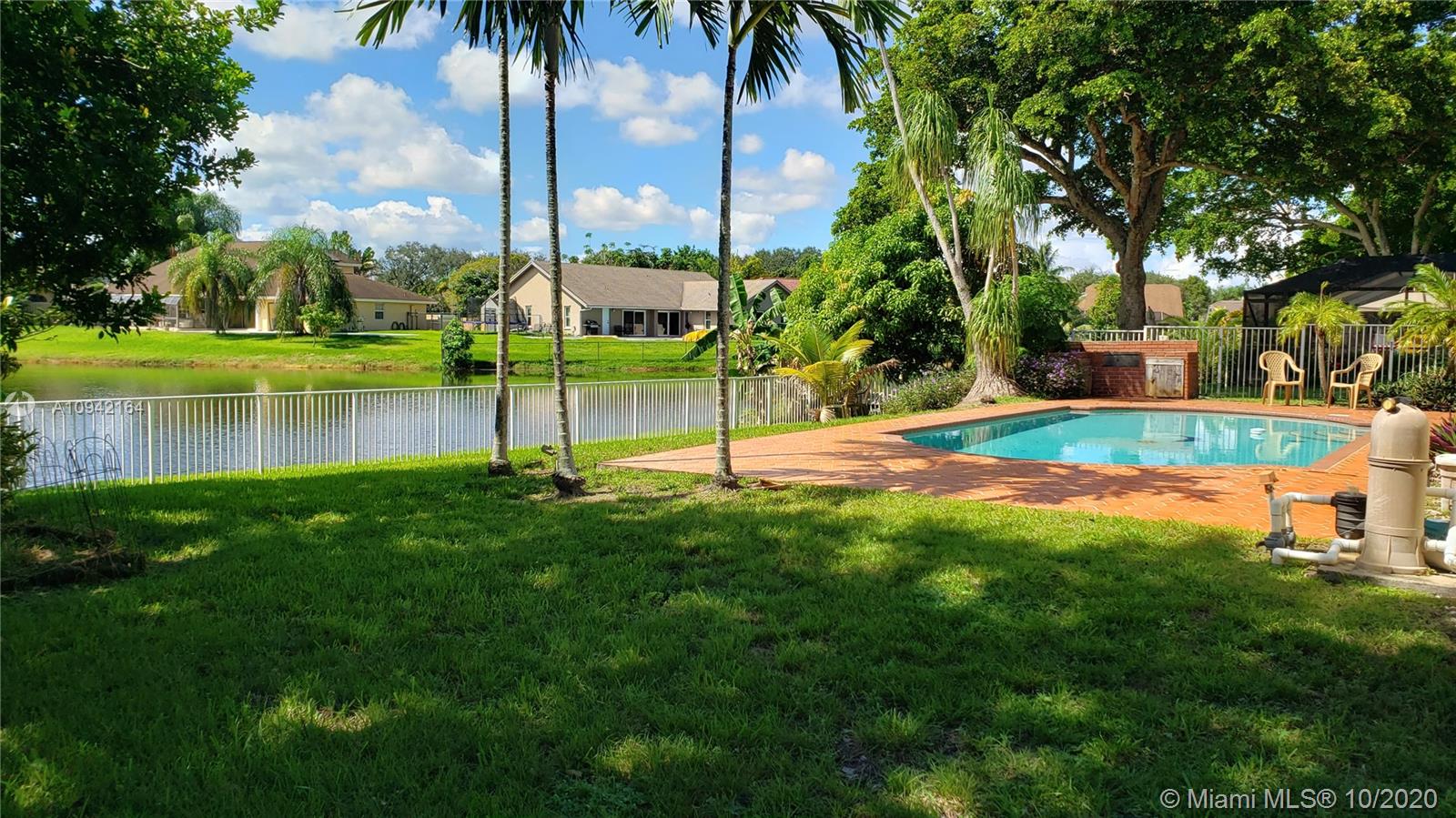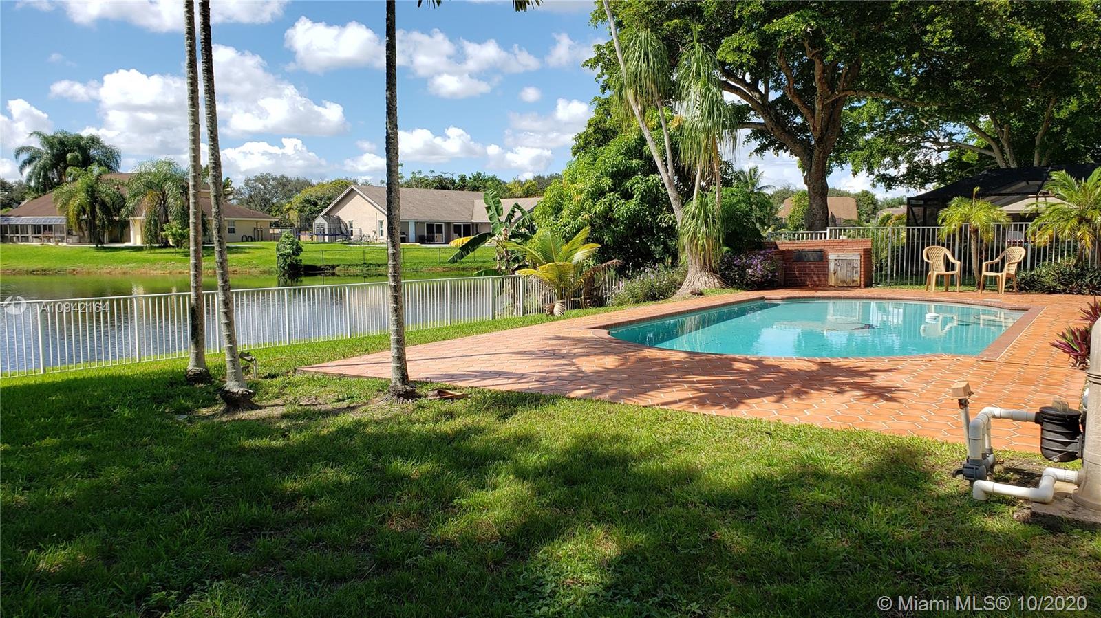 Excellent investment opportunity, pool/lakefront home in Cooper City close to A+ rated schools. Oversize lot complete with fruit trees & breathtaking lake views. Situated on a quiet cul-de-sac w/plenty of room for kids to run & play or go out back to fish, kayak, paddleboard, swim, or just lay out and enjoy a peaceful nature show. Move-in/tenant ready or remodel to make it your dream home. It features accordion shutters, new pool pump & sprinklers, roof replaced 2004 & AC 2007. Tall mature Oaks create a lush tree-lined canopy down each street perfect for shady strolls to neighborhood parks. Located near houses of worship, restaurants, shopping, hospitals. Excellent public school system. Easy access to major highways and airports. Just a short walk to the JCC.