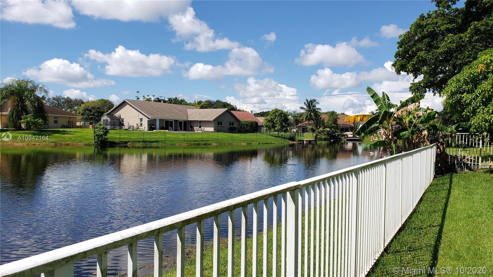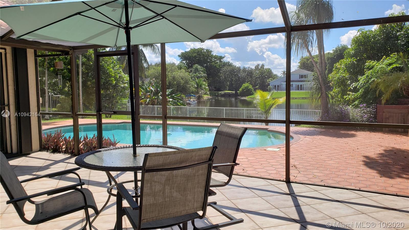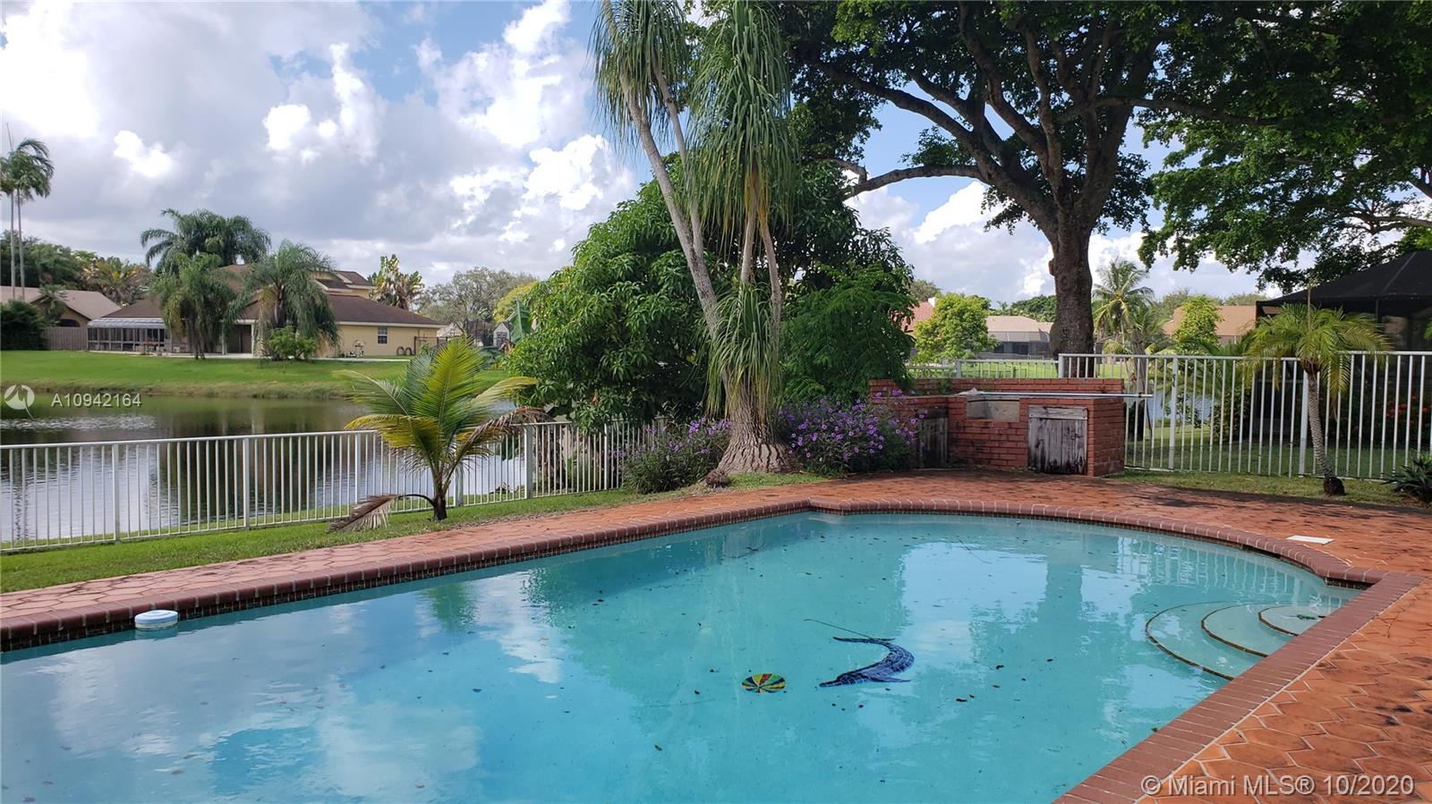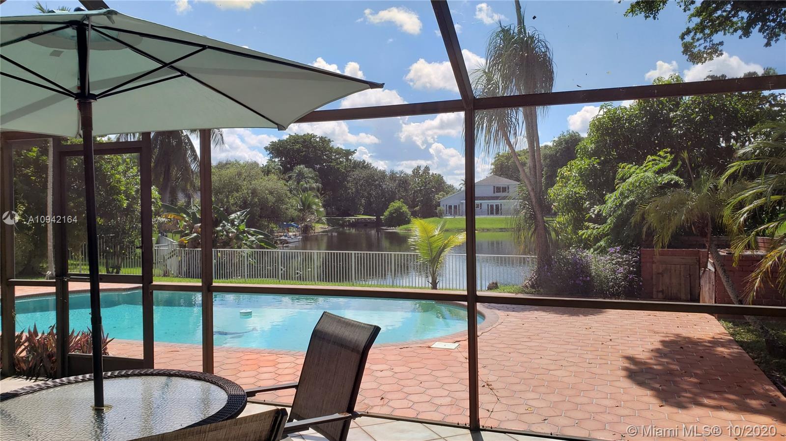 Excellent investment opportunity, pool/lakefront home in Cooper City close to A+ rated schools. Oversize lot complete with fruit trees & breathtaking lake views. Situated on a quiet cul-de-sac w/plenty of room for kids to run & play or go out back to fish, kayak, paddleboard, swim, or just lay out and enjoy a peaceful nature show. Move-in/tenant ready or remodel to make it your dream home. It features accordion shutters, new pool pump & sprinklers, roof replaced 2004 & AC 2007. Tall mature Oaks create a lush tree-lined canopy down each street perfect for shady strolls to neighborhood parks. Located near houses of worship, restaurants, shopping, hospitals. Excellent public school system. Easy access to major highways and airports. Just a short walk to the JCC.
