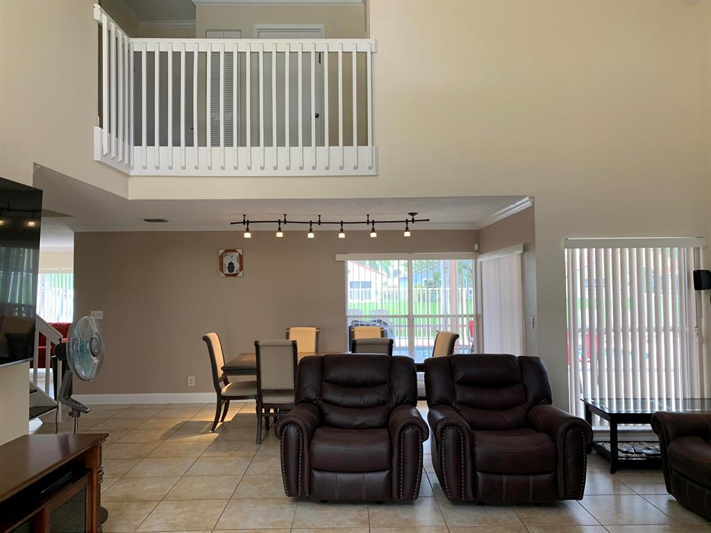 Must see. Beautiful 4 bedroom 2 and half bath pool home on a Lake view. Extra large screen porch Enclosure. Split bedrooms, Large master bedroom is downstairs. 3 Bedroom upstairs. Cabana bathroom from master shower to screen porch and pool. ADT Security Alarm and Cameras. Accordion Shutters. Great family home to enjoy your own private pool, large screen porch for parties and BBQ. Beautiful family friendly community with amenities at Low HOA fee. Include: Olympic size heated pool, Kids pool. Play Ground, Basketball, 2 adult and 2 childrens tennis courts, RacquetBall, Fiber Optic Internet, Cable. INCLUDING: HBO, Epix, and Showtime, Security patrol. Excellent A rated schools from Kindergarten to High school.