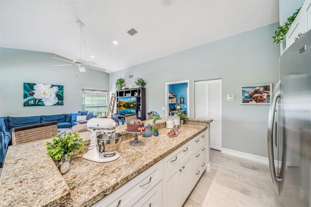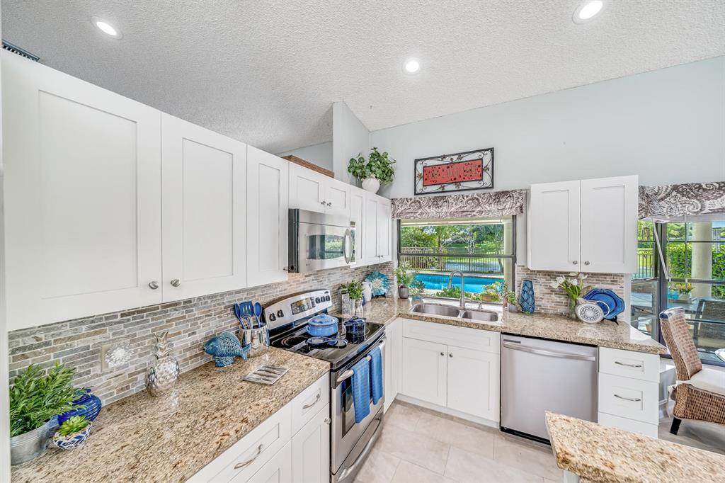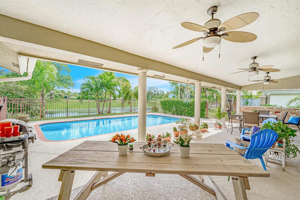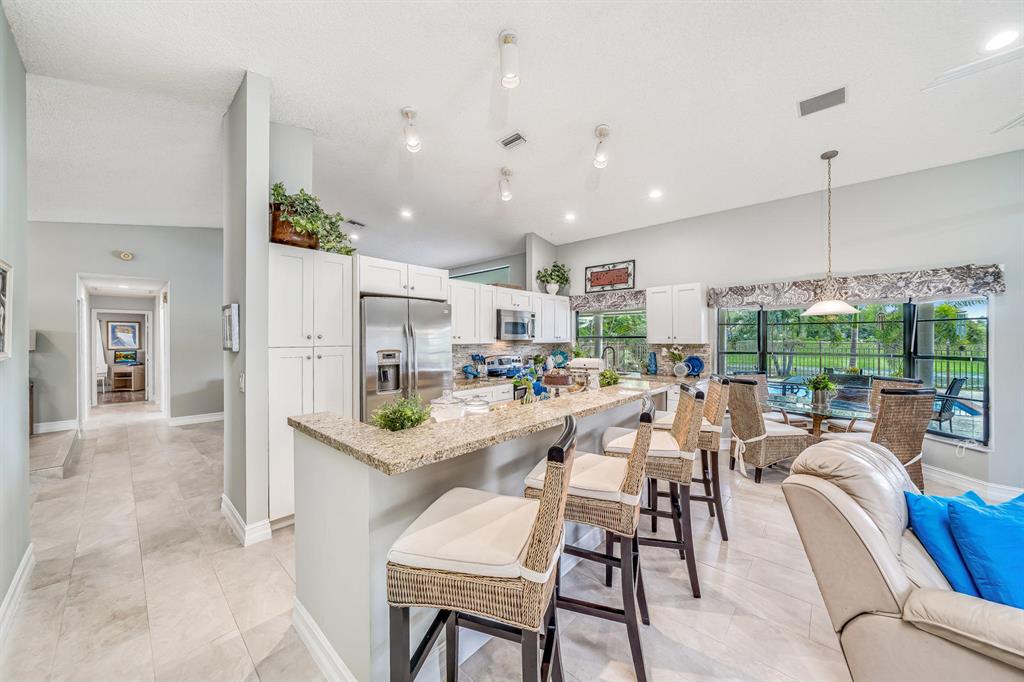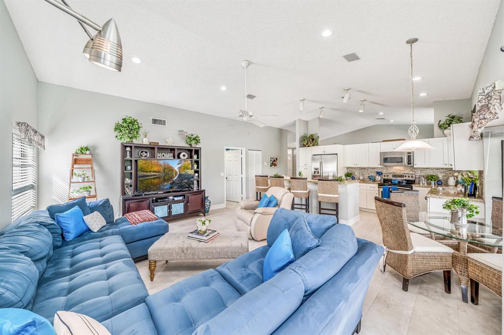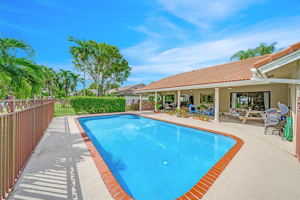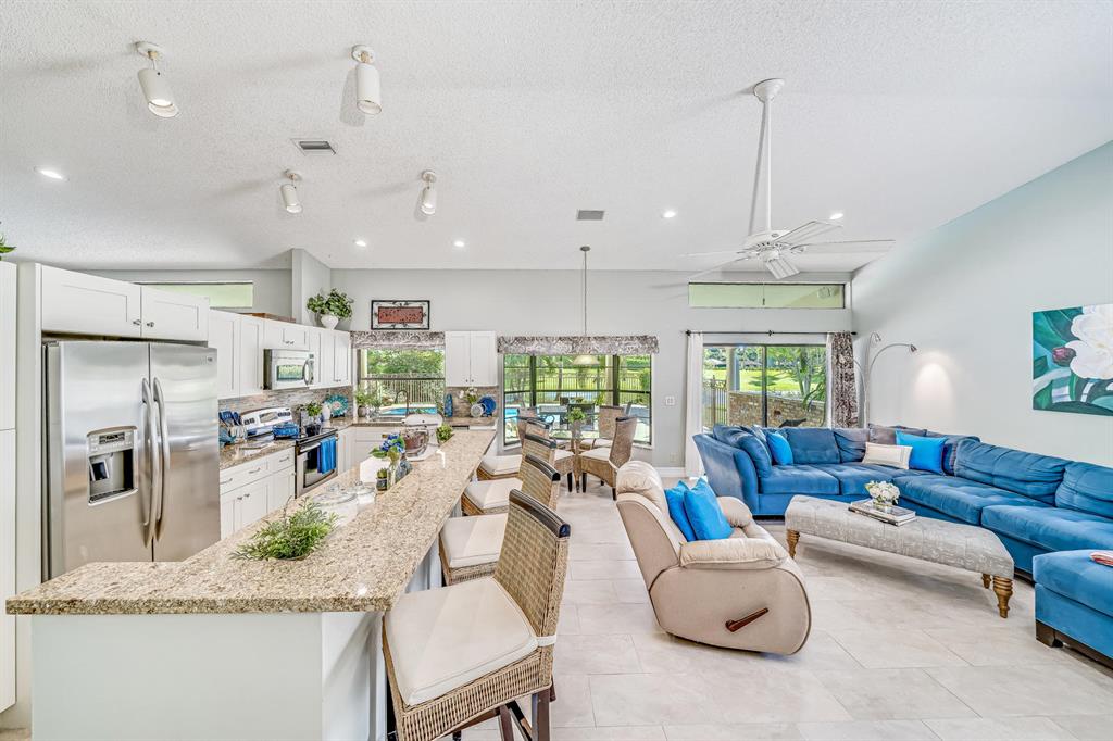 Island Lakes Waterfront Pool Home on a Huge Lot! Spacious 4 bedrooms, 2.5 baths & 2 car garage, pool & lakefront home w/ soaring cathedral ceilings, open floor plan w/tile flooring throughout living area & wood/laminate flooring in all the bedrooms. Gourmet kitchen features granite counter tops & stone tile backsplash plus an Island, SS appliances, white wood shaker cabinetry w/pull out drawers, pantry, plenty of cabinet storage, an eat in area & so much more. Expansive family room off the kitchen. Large Living and dining room as well. Master suite features 2 huge his and hers walk in closets. Tons of sliders that all lead to the amazing tropical oasis private back yard. Covered patio overlooks the sparkling pool and canal. Surprise visitors include Blue Heron birds, Egrets and more!