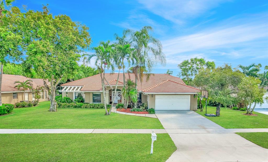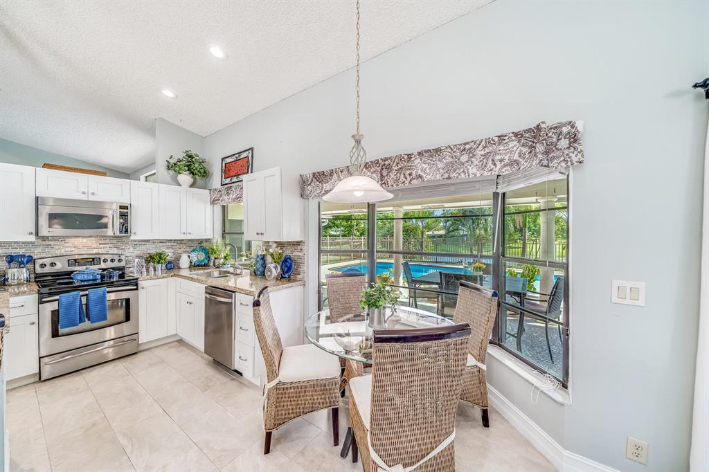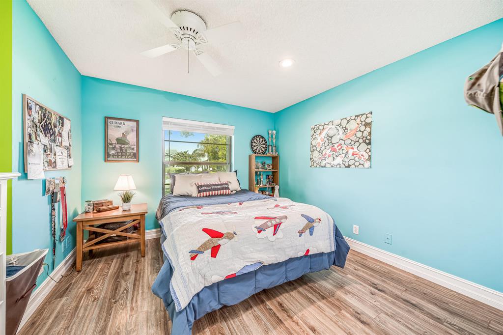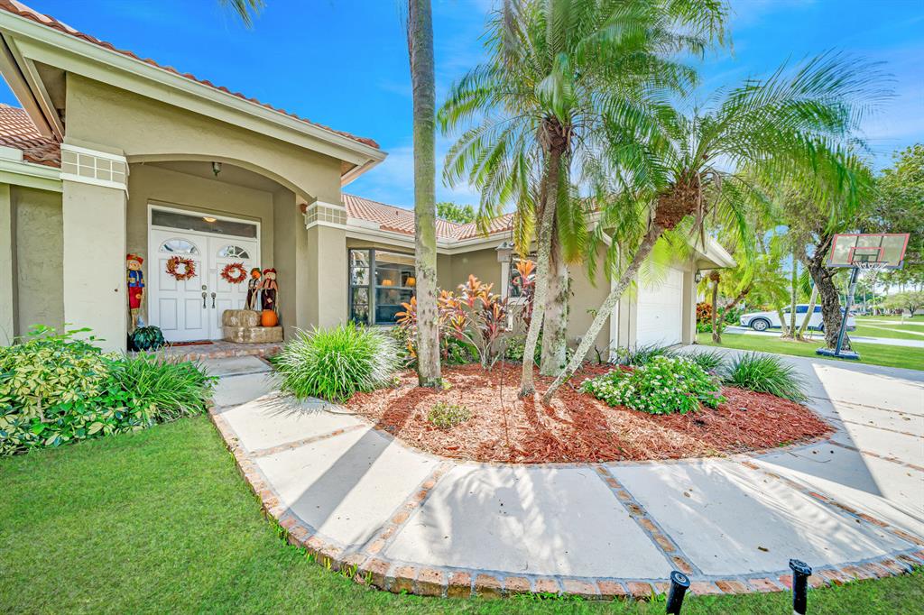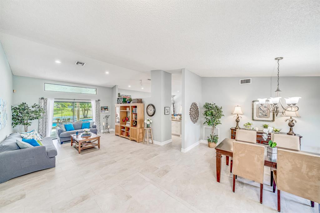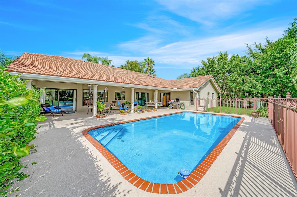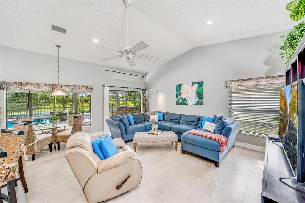 Island Lakes Waterfront Pool Home on a Huge Lot! Spacious 4 bedrooms, 2.5 baths & 2 car garage, pool & lakefront home w/ soaring cathedral ceilings, open floor plan w/tile flooring throughout living area & wood/laminate flooring in all the bedrooms. Gourmet kitchen features granite counter tops & stone tile backsplash plus an Island, SS appliances, white wood shaker cabinetry w/pull out drawers, pantry, plenty of cabinet storage, an eat in area & so much more. Expansive family room off the kitchen. Large Living and dining room as well. Master suite features 2 huge his and hers walk in closets. Tons of sliders that all lead to the amazing tropical oasis private back yard. Covered patio overlooks the sparkling pool and canal. Surprise visitors include Blue Heron birds, Egrets and more!