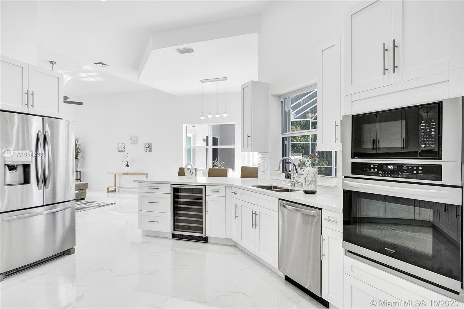 Come out and see this beautiful, luxurious, and meticulously remodeled 4 bed room 3.5 bath home in the heart of Coral Springs. This home is tucked away in a 24 hour guard gated community and features a gorgeous kitchen, upscale bathrooms, new impact windows and doors, all new fixtures, new marble floors, open layout and much more! Enjoy entertaining on your enclosed pool patio with a beautiful view of the lake. Perfectly located near shops, restaurants, sawgrass, and A+ schools.