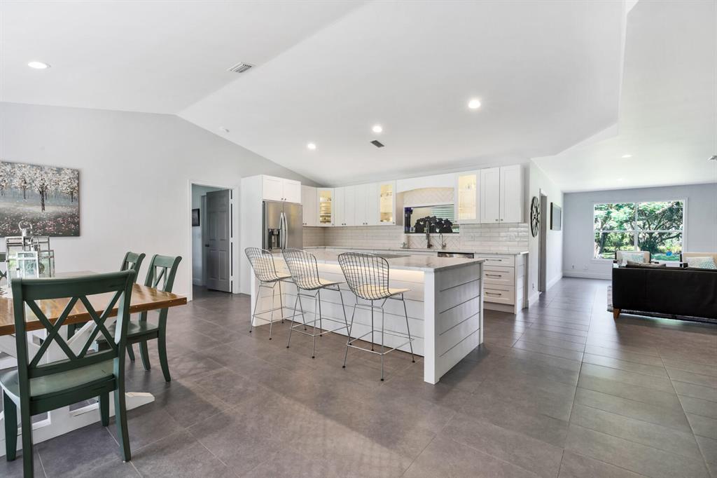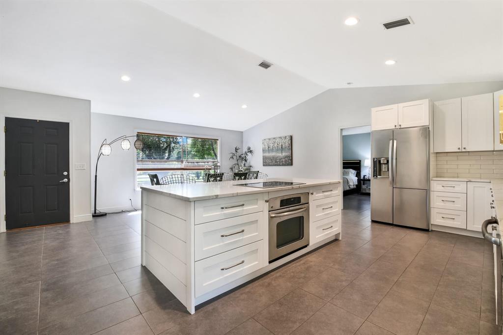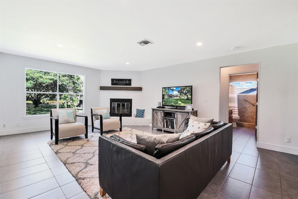 Welcome to this beautifully renovated 3 bedroom, 2 bathroom modern farmhouse style home situated on 1.25 acres! This move-in ready home features a perfectly manicured lot with lush landscaping & lighting, a 2 car garage, and a large driveway for ample parking space. Upon entering, you'll fall in love with the open concept floorplan with split bedroom layout, smooth vaulted ceilings, and wood burning fireplace in the living room. The gorgeous & airy kitchen features new white cabinetry with soft close drawers, 2 spice rack drawers & a lazy susan, white subway tile backsplash with a herringbone design on the fish tank wall, quartz countertops, newer stainless steel appliances, and a large eat-in island & hidden panty with a secret door adorned with shiplap siding.