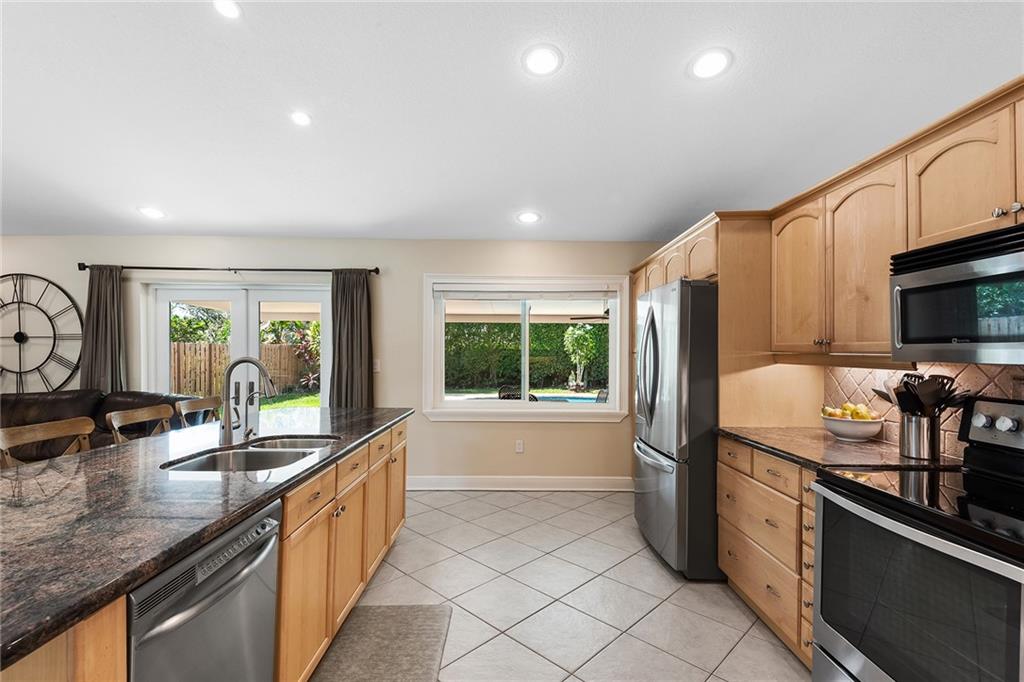 Absolutely stunning 4/2 centrally located in Davie. New impact windows and doors and new impact garage door. Updated kitchen and baths. Stainless steel appliances. Tile throughout and laminate in the bedrooms. New AC and new water heater. New travertine driveway with new matching mailbox. House is freshly painted. LED lights with dimmers throughout the home and landscape lighting in the front yard. Updated electrical including security lighting around the home. New fence with an updated outdoor covered porch with fans. Roof is in great condition. Beautiful backyard with bushes for privacy and a baby gate for the pool. This will not last!