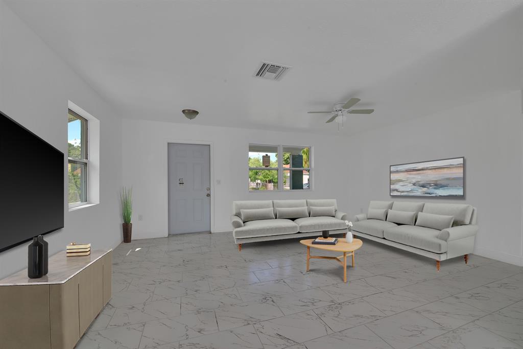 Welcome home to an exceptional opportunity with this totally renovated home with NO HOA. This spacious floorplan features a living room, dining area and a fenced yard. Chef's kitchen features classic white cabinets, granite countertops, a tiled backsplash, high hat lighting and stainless-steel appliances. Relax on the patio overlooking the large, fenced yard. Neutral tile throughout (no carpet!), NEW ROOF, NEW A/C, NEW ELECTRICAL PANEL, ALL new windows and doors, and a neutral grey and white color scheme are just a few of the highlights in this totally updated home. Located close to beaches, the marina, the intracoastal, shopping, dining, entertainment, downtown West Palm Beach, and hospitals. SELLER WILL PAY 3% FOR BUYERS CLOSING COSTS