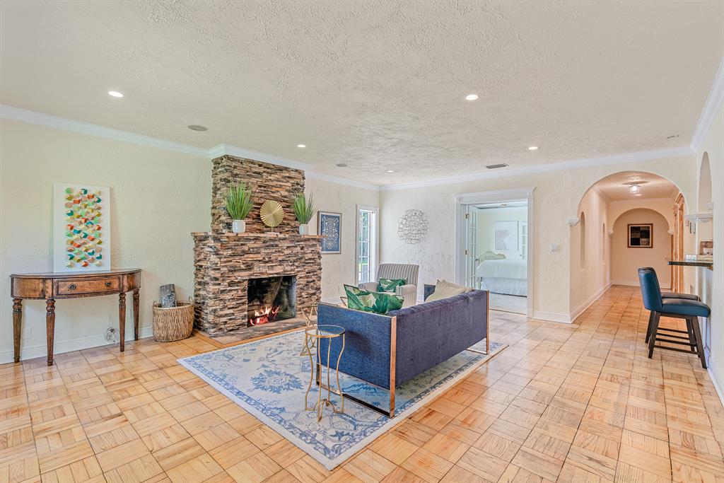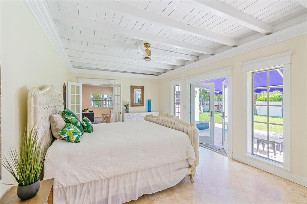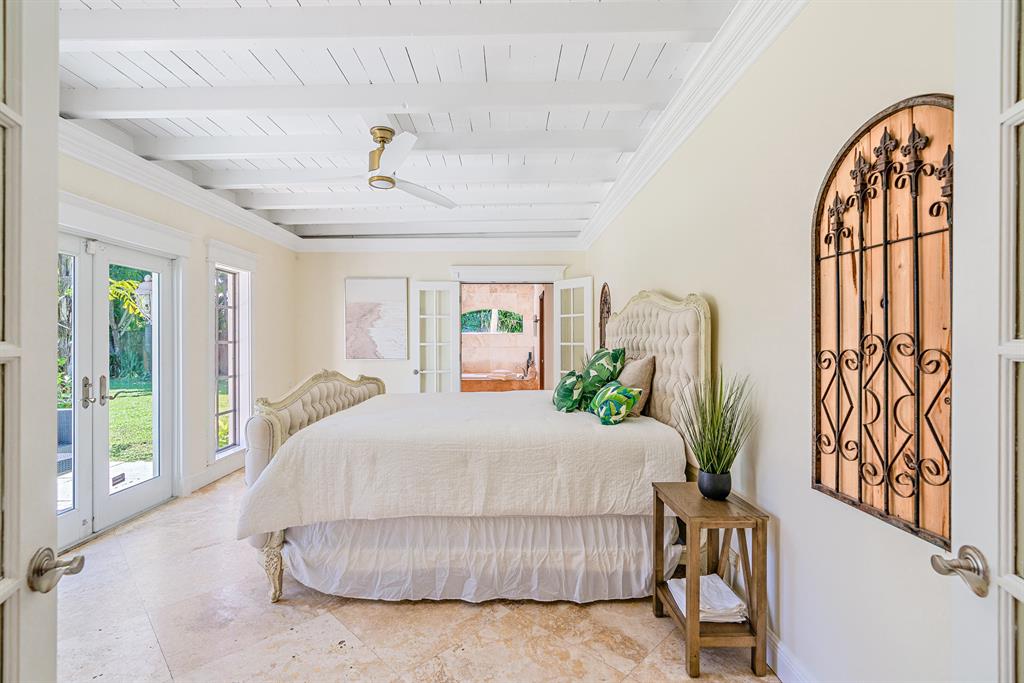 Presenting Rancho Guiana: located on one of the most desirable streets in the 'South of Southern' district with wide tree lined streets and just steps from the intracoastal. Situated on a massive corner lot just shy of 12,000 square feet, this mid- century home embodies the best of the outdoor-indoor lifestyle. Double doors from the master lead out to a covered patio overlooking generous green space with ample room for a pool. On the west side of the property is paved Chicago brick with the fountain as a focal point creating the most peaceful garden.