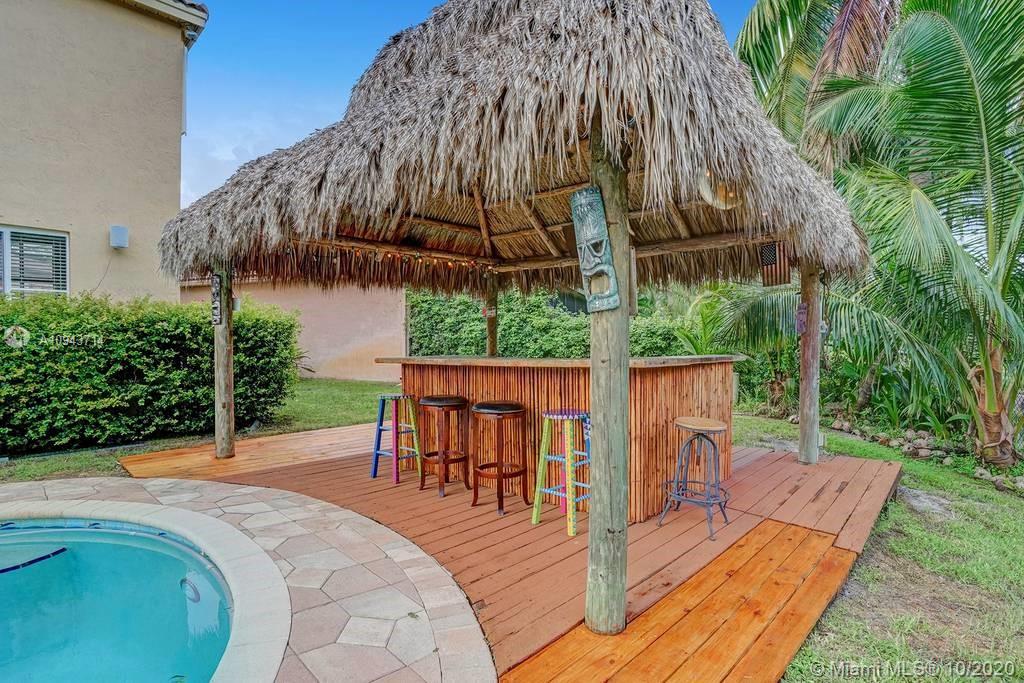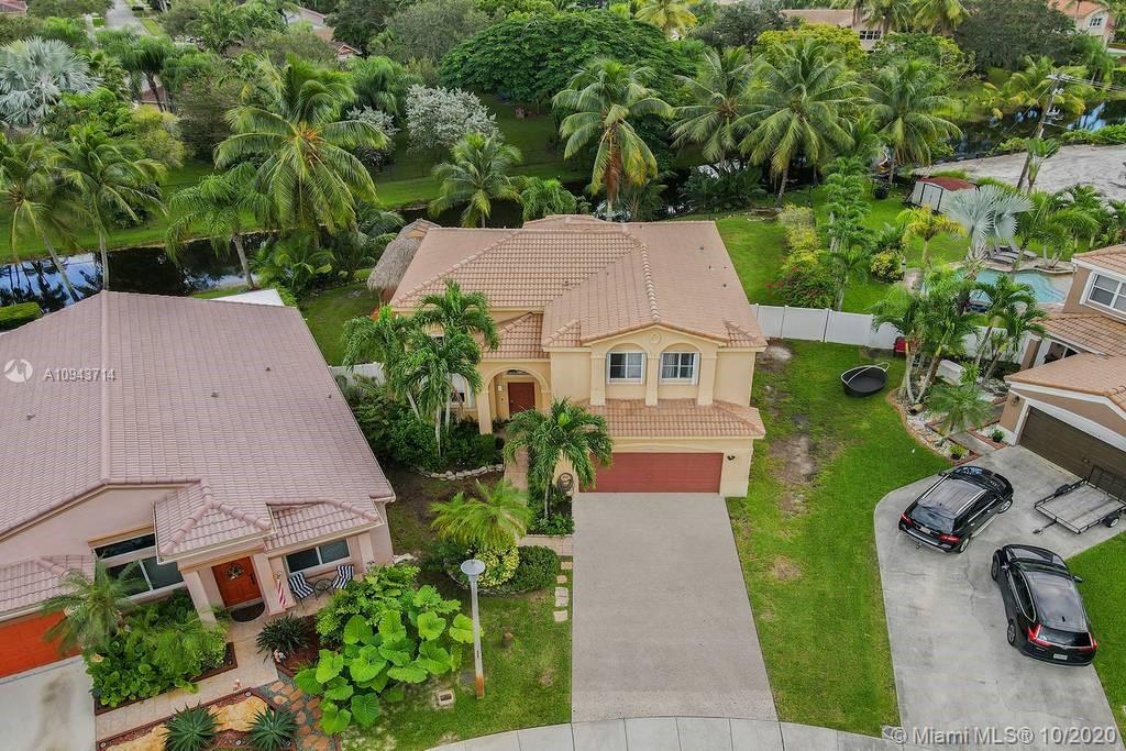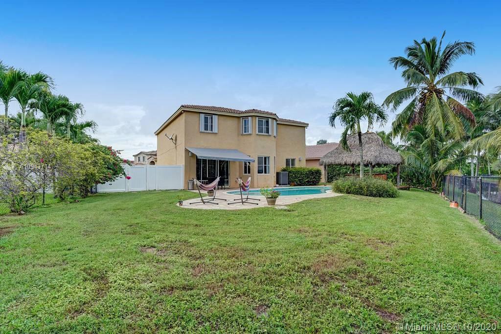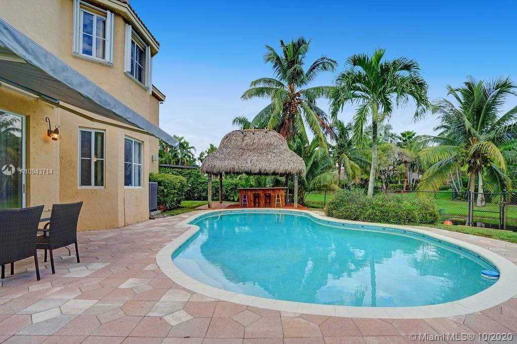 Magnificent 4 bedroom 2.5 bath **POOL HOME ON THE WATER** is situated on a pie lot (10,823 SF) in The Village of Harmony Lakes in Davie off of Hiatus Road! All 4 bedrooms and 2 bathrooms on second floor with laminate floors and first floor has tile with 1/2 bathroom! Eat in kitchen very open with natural light, A/C replaced in 2017, inside laundry room! Amazing backyard with a freeform pool, chickee hut with electric, fenced yard with a tropical oasis and beautiful views of water in your private backyard- perfect for outside living and entertaining! Located in a top school district, easy access to I-595! Guarded highly sought out community! Community offers pool, tennis courts, BBQ & pavilion, and racquet ball! Only available property!