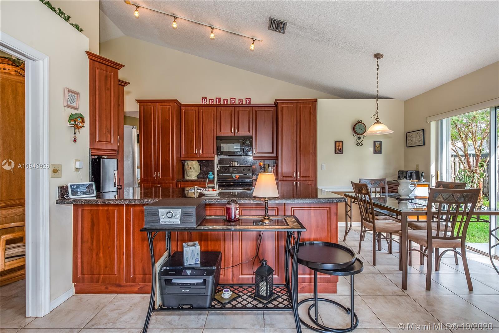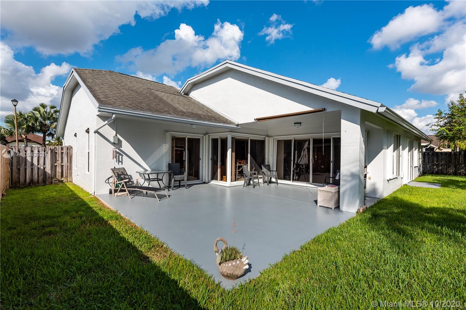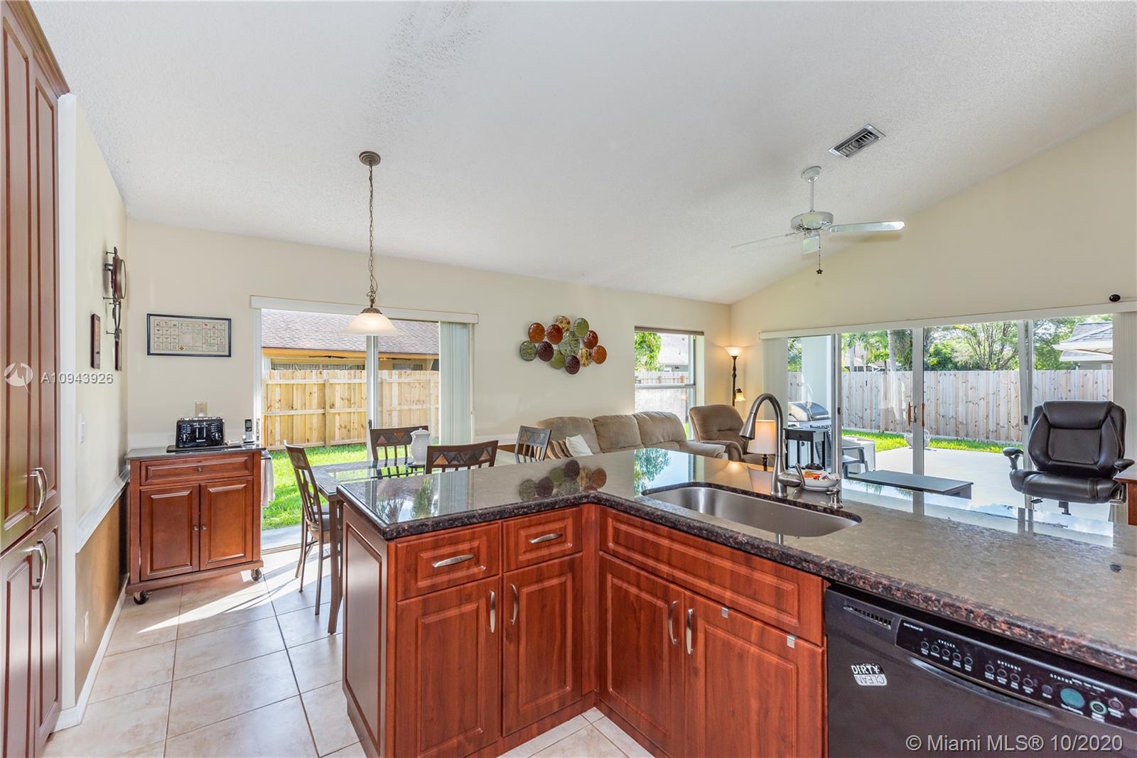 Rarely available 4/3 one story model in quaint community of New Providence East. High ceilings, abundant windows/sliders, split bedrooms and open floor plan make this one stand out. Lots of upgrades including remodeled kitchen with wood cabinets, granite and stainless package. AC 2 years old. Freshly painted exterior, big patio and large backyard add to the appeal. Plenty of room for a pool, garden or both. Original owners have impeccably maintained the home and have made it ready for a new owner. Full accordion shutters for safety. Terrific, friendly neighborhood with LOW association fee ~ only 150/year. EXCELLENT LOCATION near shopping, awesome schools and parks. Easy access to highways. Short drive to airport and beaches.