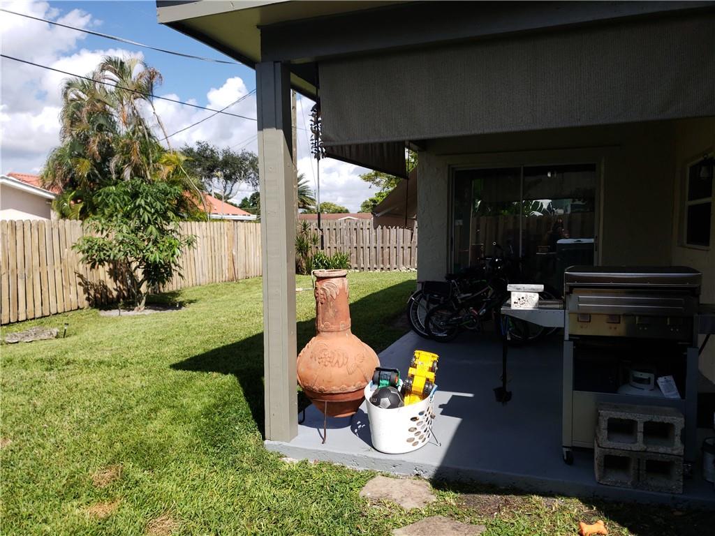 Great home with lots of renovations and no HOA fees. New roof, new AC, new hot water heater, new kitchen cabinets (good quality), new granite counter top, new stainless steal appliances, new fans, new light fixtures, new laminate floors, newer bathrooms and cabinets, newer windows and storm shutters, washer and dryer and just so much more. Open floor plan great for entertainment and participating on the conversation while cooking. Currently the family room is being used as their dining room and the dining room is their office. Back yard completely fenced and a covered patio pretty great for a BBQ with family and friends. Listing agent is related to Seller