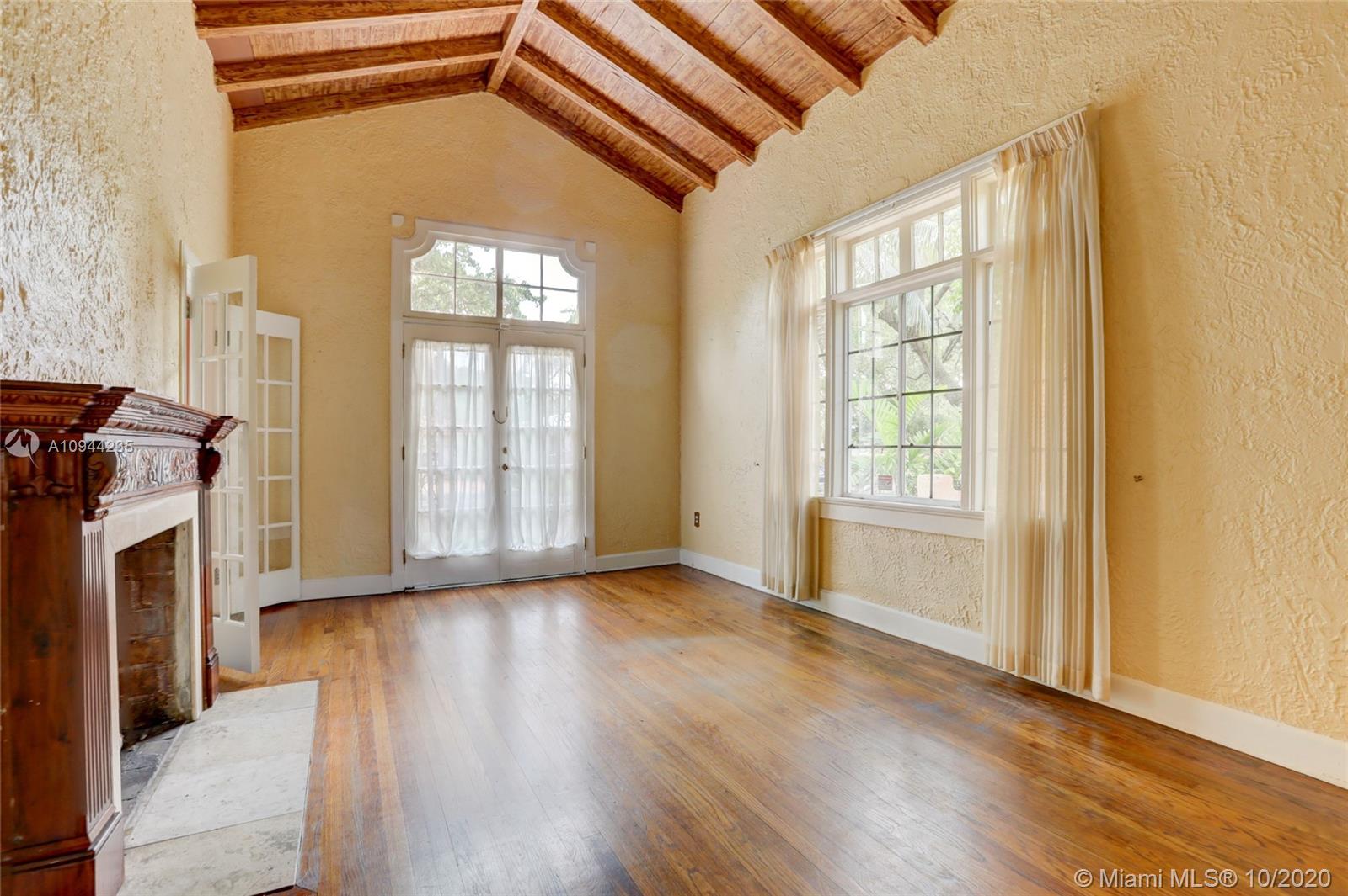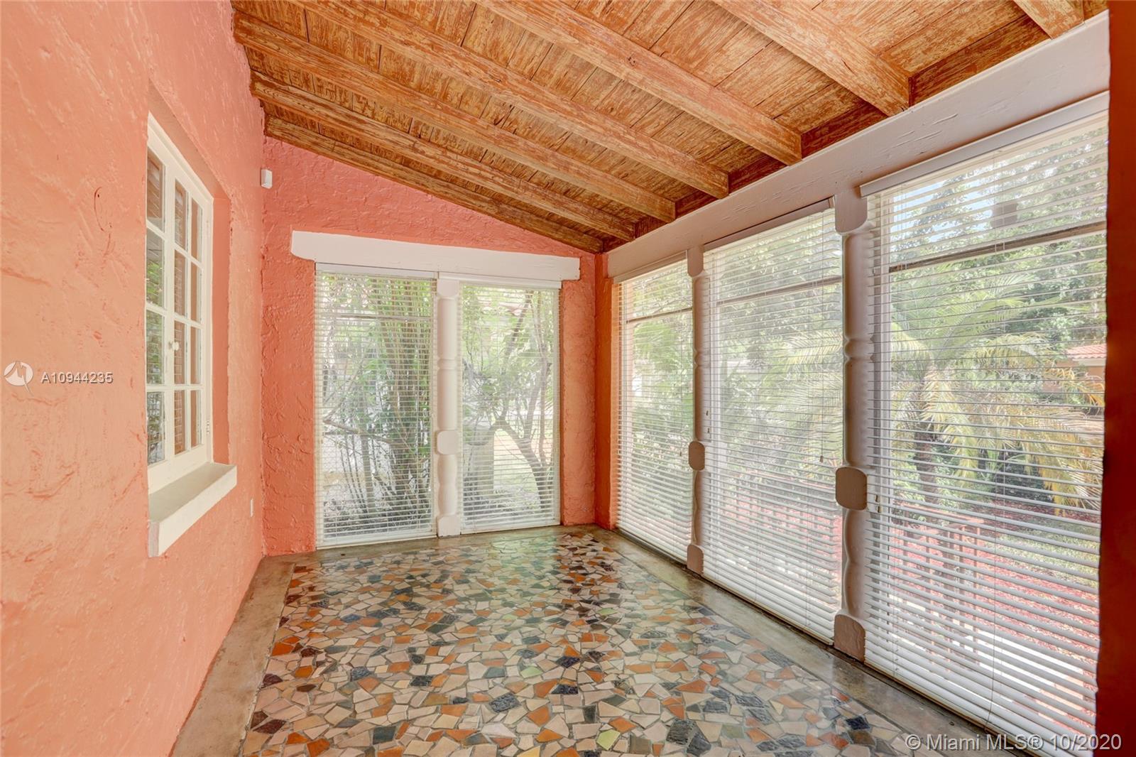 Charming Old Spanish home for sale on a beautiful and quiet street in North Gables! 2 bedrooms/1 bath in the main house, living/dining area with amazing vaulted ceilings, enclosed bright sunlight porch, fireplace, original wood floors throughout. Kitchen has been upgraded with granite countertops and newer appliances. Too many other original details to be mentioned. Detached cottage with 1 bedroom and 1 bath, sitting area and kitchenette with sink and small refrigerator. perfect for in-laws or grown children. Roof is approx. one year old, washer and dryer are new also. Nice yard all around with lots of potential. Property is currently rented at $ 2,800 a month with excellent tenants-great for investors.