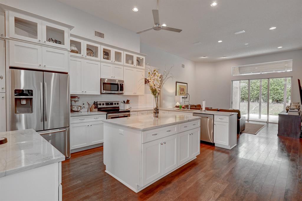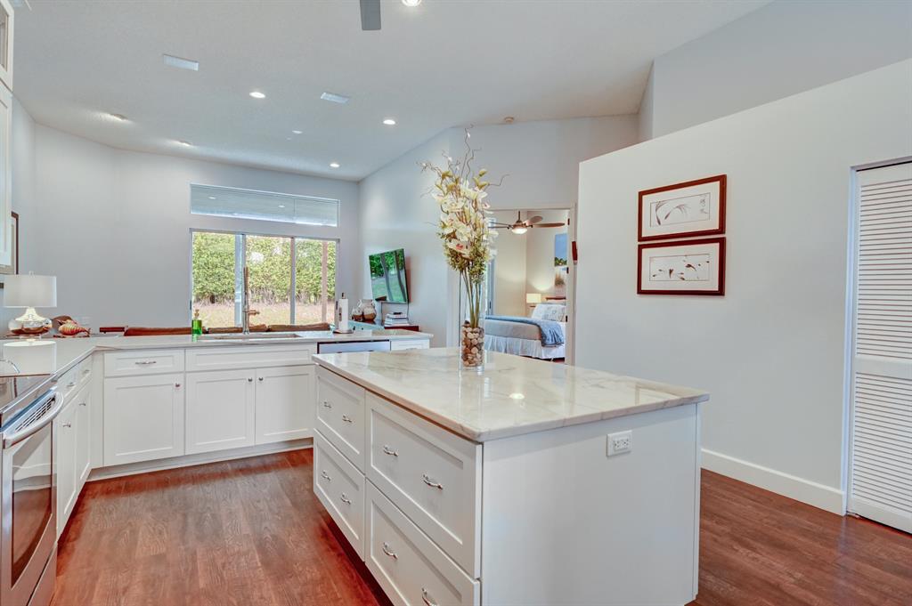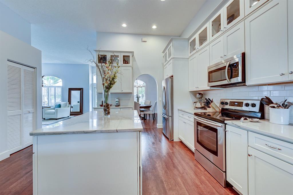 Beautifully renovated and professionally landscaped, move-in ready, 4/2 in Boca Isles South. Open concept, gourmet kitchen with custom cabinetry, ample storage, with above cabinet glass displays, Blum soft close hinges, large center island, quartzite countertops, and stainless steel appliances. Master bath is fully renovated with frameless glass door walk in shower, freestanding soaking tub, and Carrara Marble countertops. 2nd bath is fully renovated with marble countertops, subway tiles, and marble accent tiling in bath/shower. Pergo XP laminate flooring throughout main living area, with hardwood flooring in bedrooms. Plantation shutters in living and dining area, New 2018 roof. Guard gated, Resort style clubhouse amenities, pool, gym, tennis, basket ball court, playground, sauna.