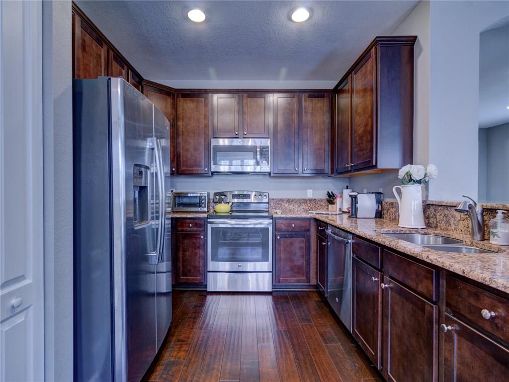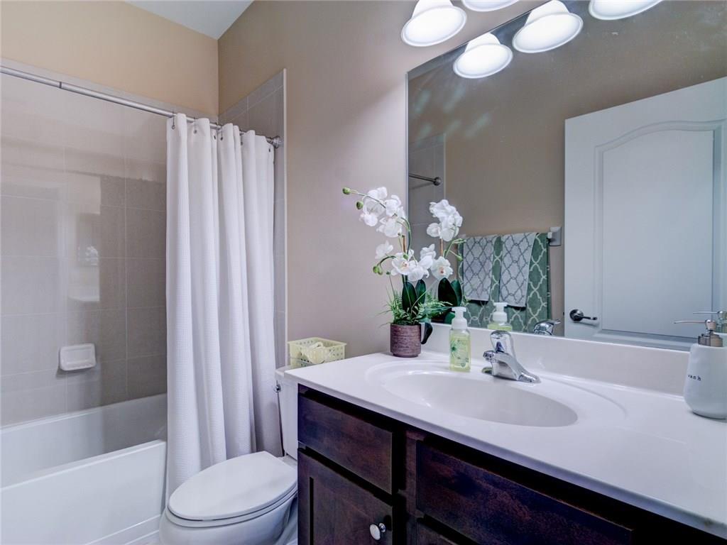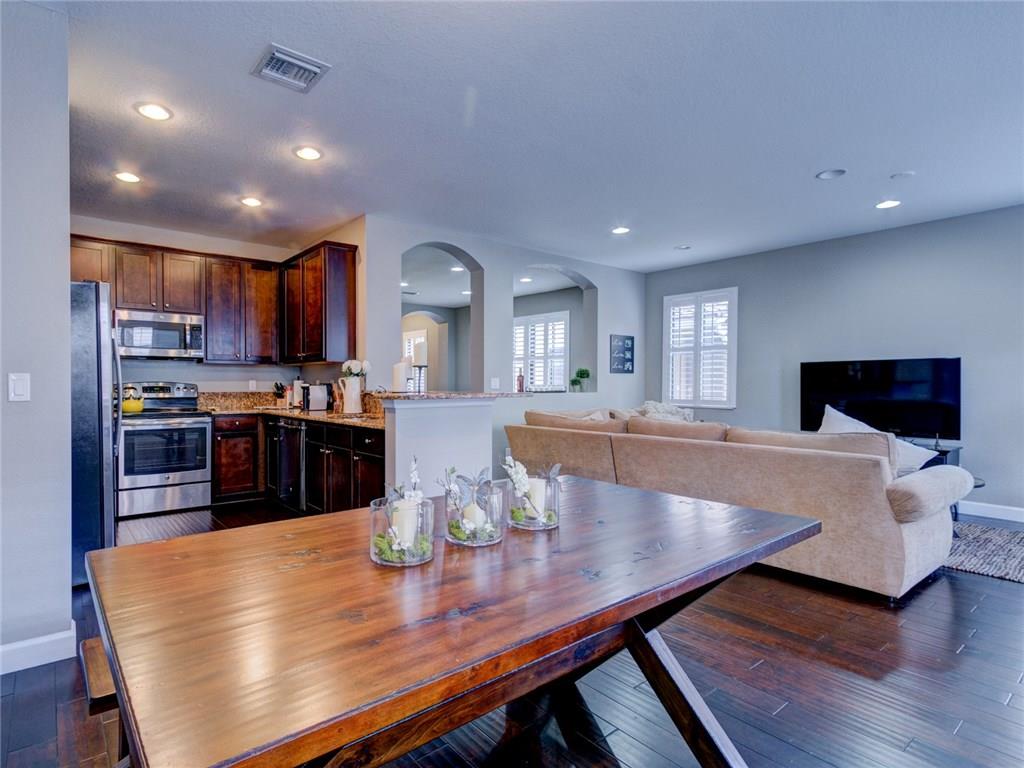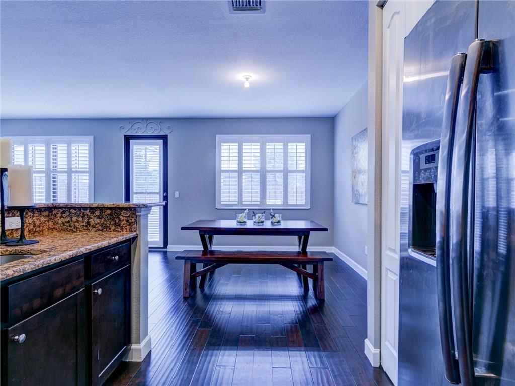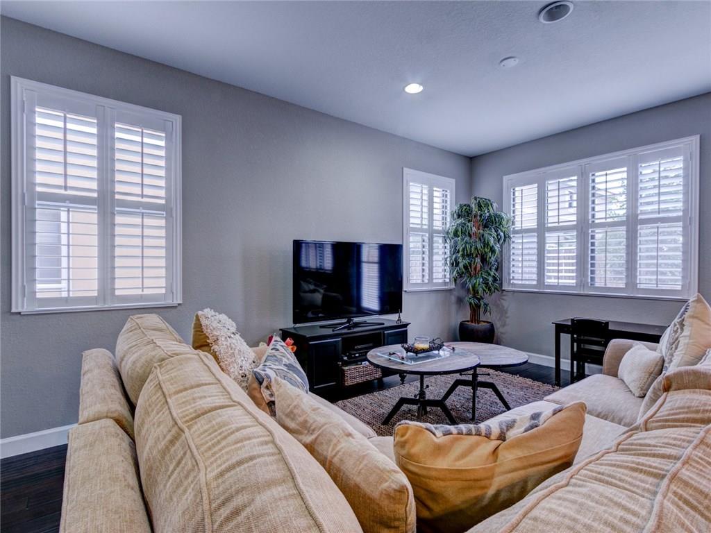 Move-in ready corner unit with hardwood flooring, custom closets, and plantation shutters throughout. All impact windows and doors, concrete block construction, and access to its own playground and pool, as well as the resort-style pool and fitness center at Miralago. Large master bedroom with walk-in closet and en suite, and fenced in yard with extended paver patio. Largest model available in Town Parc.