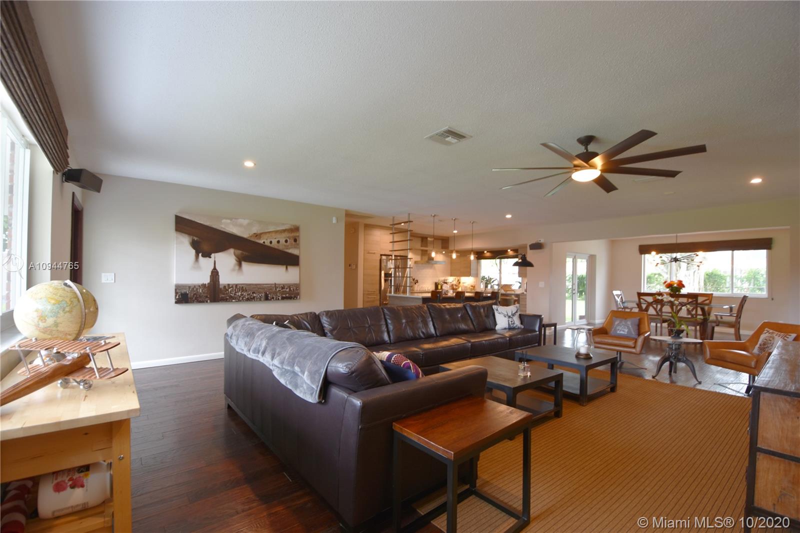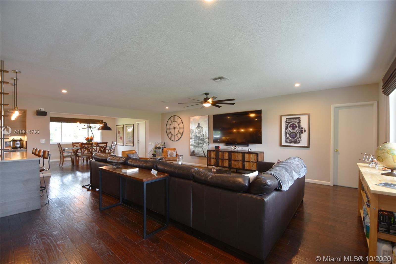 Meticulously well cared for home, open floor plan with real wood flooring throughout. Impact windows, doors and garage from 2017. Pitch roof 2006 and flat roof over patio/barbeque area 2016. Open concept remodeled kitchen flows nicely to living area and dining space. A/C from 2013 has been serviced twice a year and tented for termites including subterranean preventative in 2017. Brand new washer/dryer in single car garage accessible from rear of property. Fenced back yard with a beautiful shade tree, sprinkler system on well water treated to prevent rusting on walls or fencing. Split bedrooms with a huge master suite and nicely sized 3 bedrooms on the other side of home. Nice quiet neighborhood in the heart of Hollywood and close to major roadways, and airport.