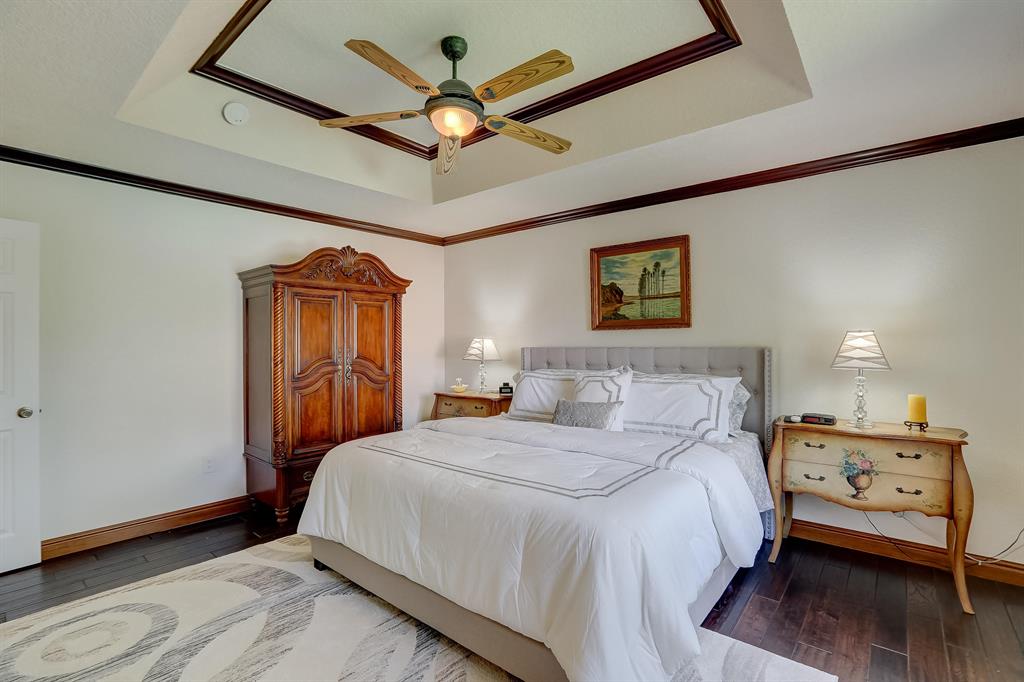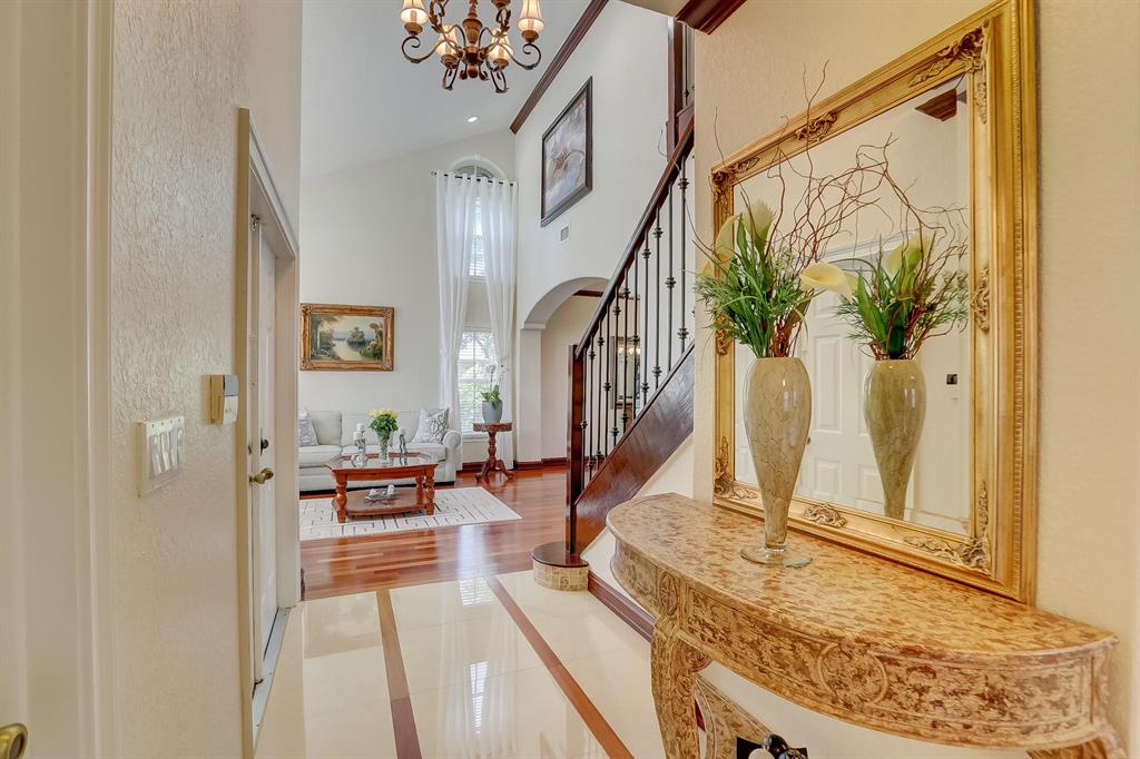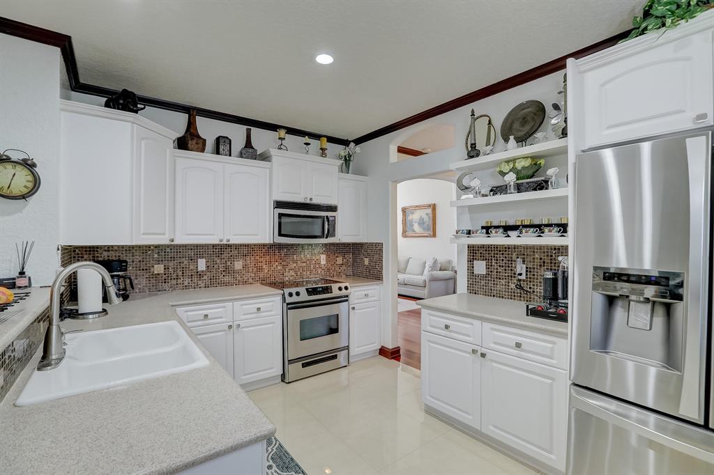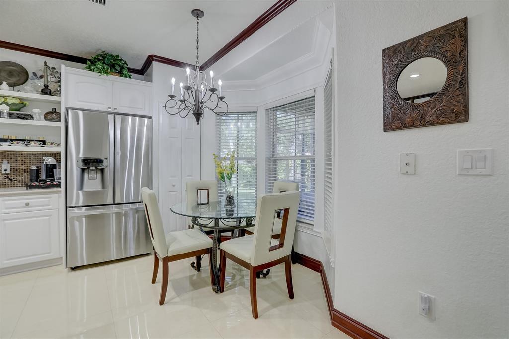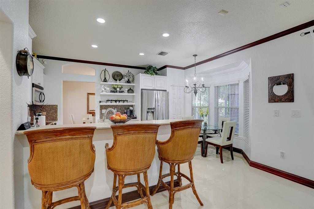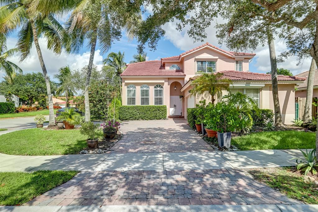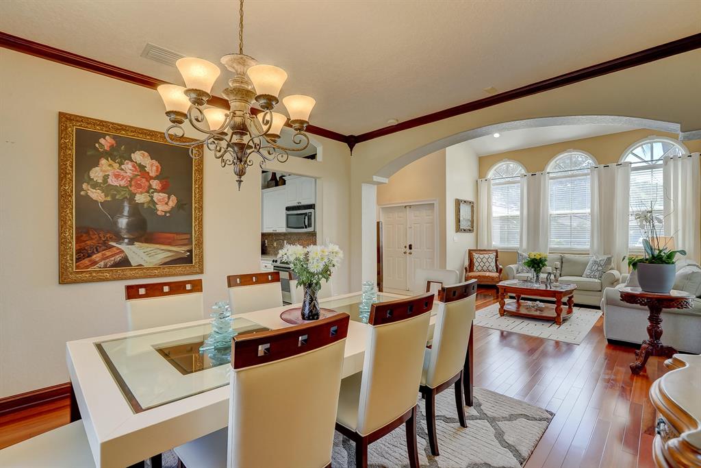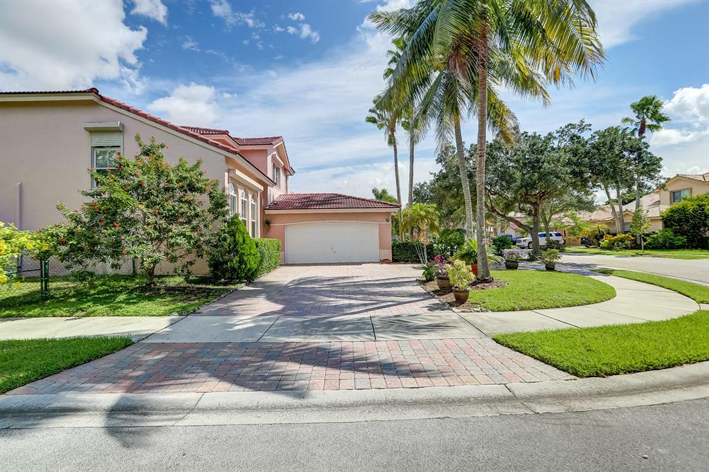Enjoy exceptionally stylish & luxurious living in this stunning home located in the gated Poinciana Parc community. Here you'll find stunning design details including volume & tray ceilings, custom crown molding throughout, as well as upgrades including electric shutters, a UV air purifier, whole-house intercom system, newer (<1 year) AC & newer (2018) hot water heater. Gorgeous eat-in kitchen features Corian countertops, stainless steel appliances, custom cabinetry & a seated bar. Owner's suite features en suite bath with double-sink & seated vanities, water closet & separate tub & shower. Relax in the screened terrace or outdoor patio, offering a perfect setting for outdoor seating, grilling, dining & entertaining. Fenced greenspace is an ideal spot for playtime with children & pets.