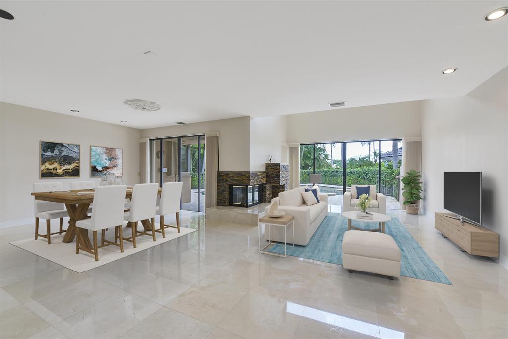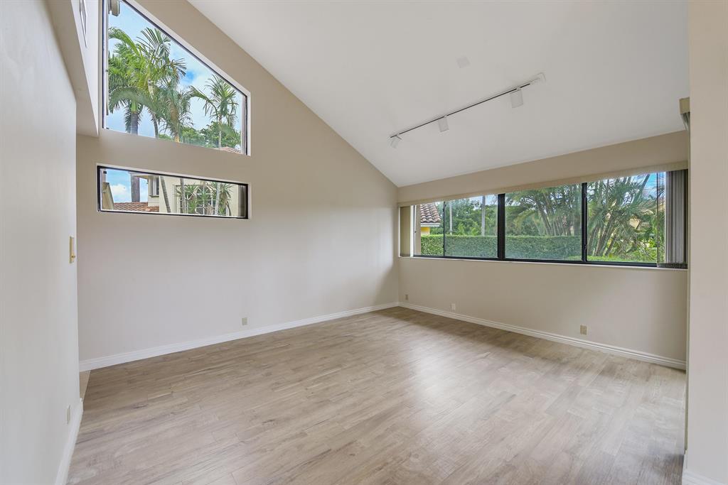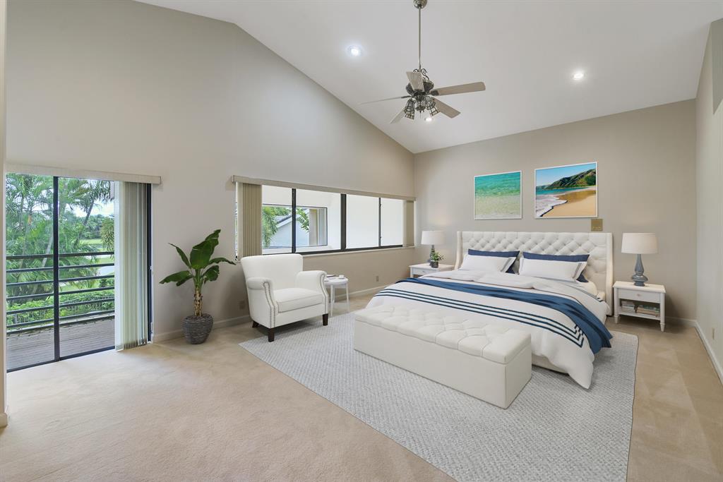 An incredible opportunity to make this home your own. Majestic views of the famed Boca Grove Plantation Golf course and lake. This 3427 square foot home has 4 bedrooms 4 1/2 baths. The spacious floor plan can be a contemporary showplace or classic European. The large living area overlooks the pool patio area and golf course highlighted by a wood burning fireplace, vaulted ceilings and large sliding glass doors. The first floor features 2 large guest suites each with their own bathrooms. A gourmet kitchen, breakfast area and large family room have spectacular views. The second floor master bedroom and bath create a private oasis. Dual sinks, European bath, marble floors and large closets create an environment of comfort and elegance. Several Rooms have been virtually staged...More.