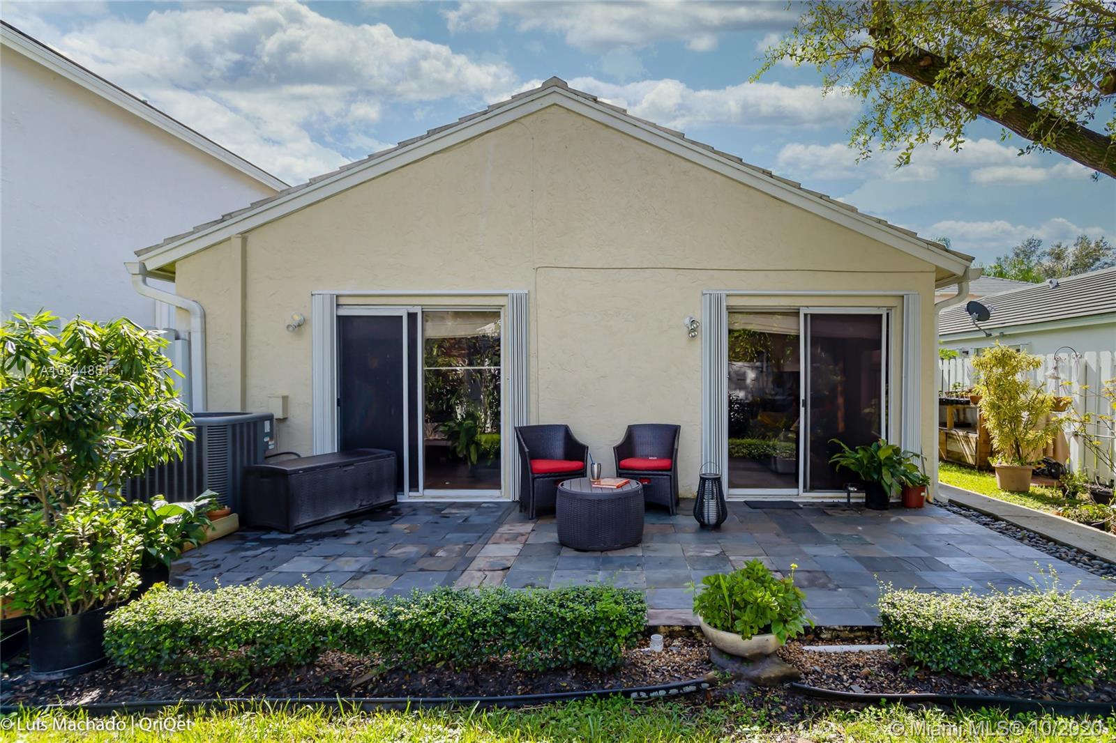 Remarkable and cozy 3 Bedrooms single family home sits on a cul-de-sac and is totally updated. Engineered bamboo wood floors in all bedrooms, Porcelain tile on all living areas. updated kitchen with unique backsplash, granite, stainless steel appliances, split bedroom floor plan. 1 car garage w driveway parking for two cars --Nice patio and fenced backyard, serene Gazebo area where you can have your morning coffee. Vegetable garden and many fruit trees. ROOF and A/C were replaced in 2018, tankless water heater & Accordion shutters in 2020. - Walking Distance to prestigious Central Park @ Jacaranda!!! This home is in remarkable condition! This house will not last!!!