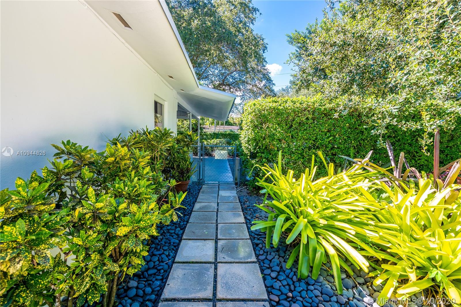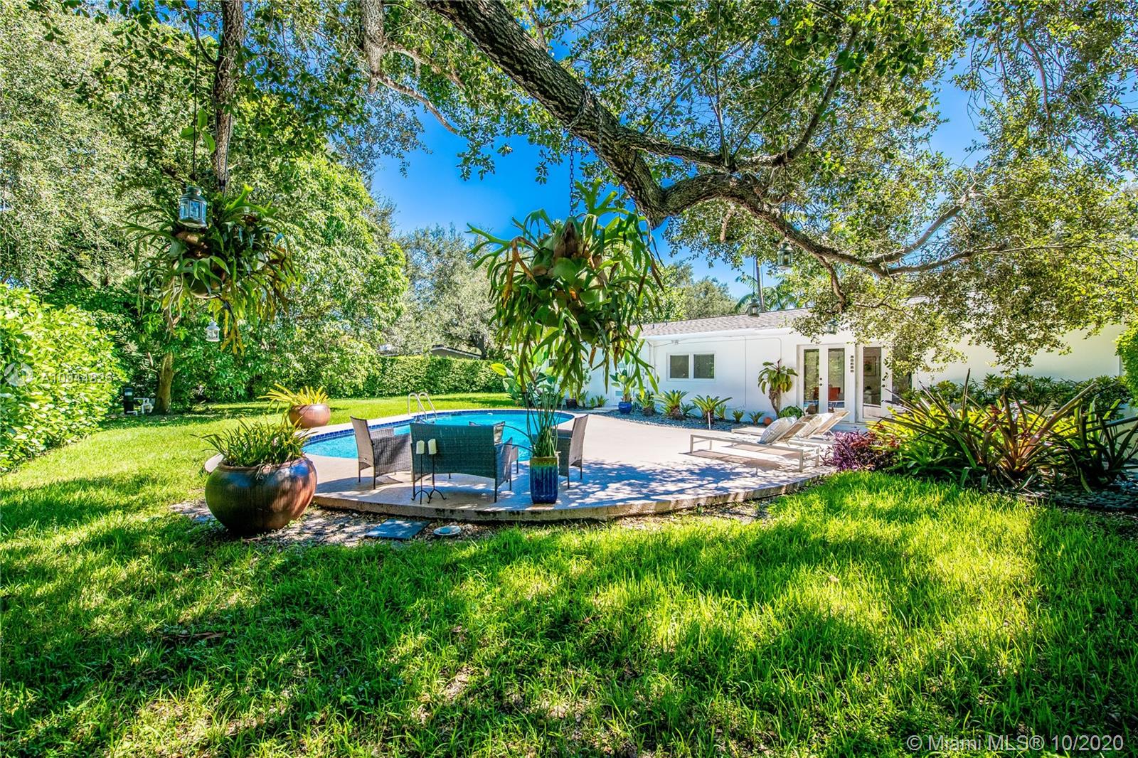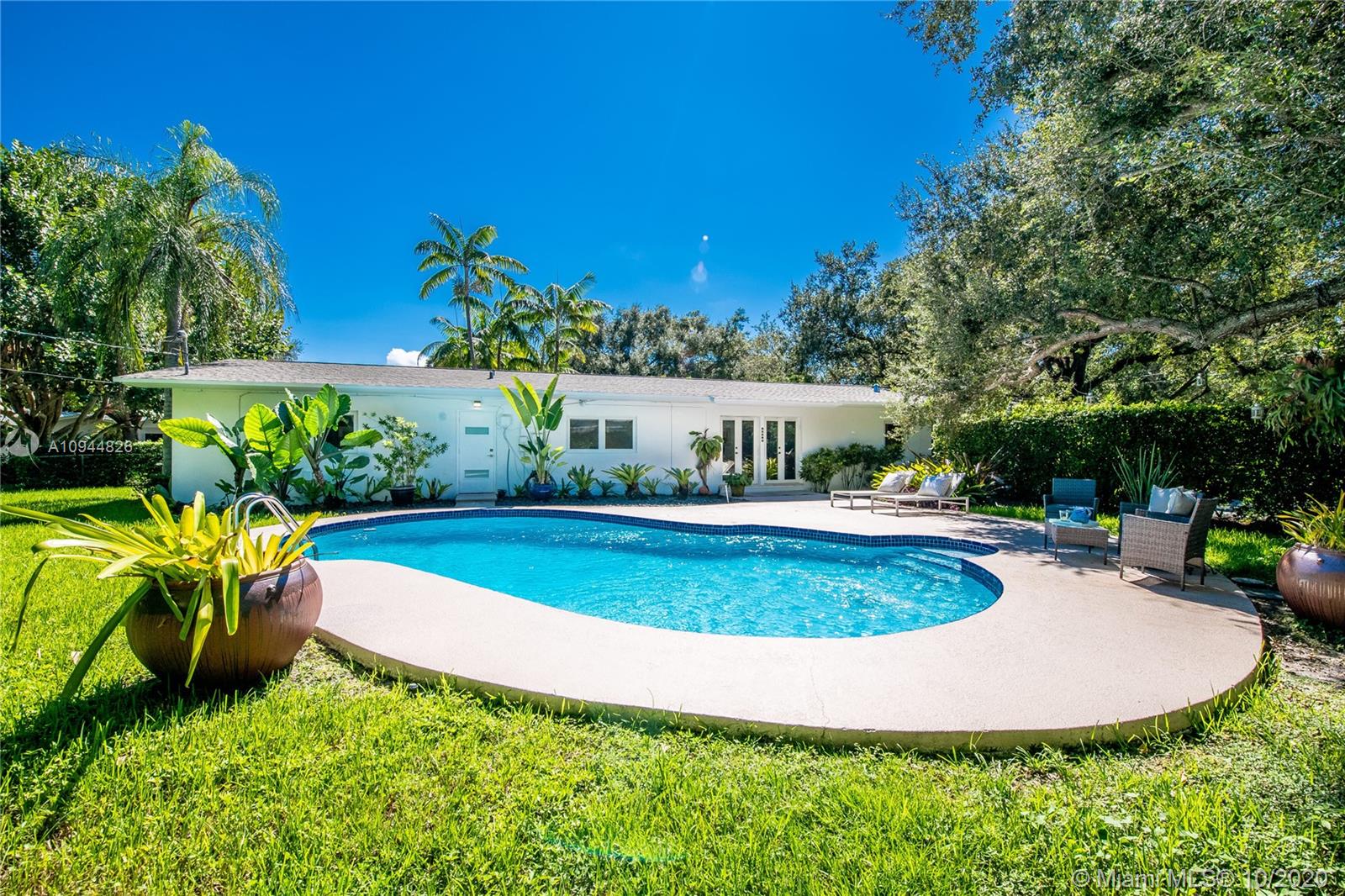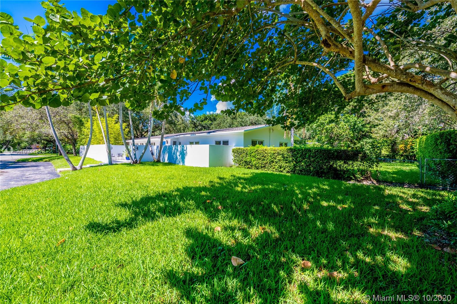 On a corner lot in a prime neighborhood, this residence offers a coveted NE Pinecrest setting. Nearby highlights incl. acclaimed Pinecrest Elementary (2 blks), Coral Oaks Tennis & Wellness Ctr (5 blks), Pinecrest Gardens & Dante Fascell Park, plus the beloved landmark Wayside Produce Market & Juice Bar. Superior privacy behind a high wall around a large front Zen patio + tall dense landscaping around the sides & back is a much-appreciated bonus. Another standout feature is the sunny living & dining great room with a tongue-and-groove ceiling + a wide bank of French doors overlooking the Zen patio. The flow-thru family room & kitchen open to the pool & fenced yard. The layout places 4BD/2BA on the East side + 1BD/1BA on the West side. Brand New Roof. 5BD / 3BA / 2,359 SF Adj / 16,466 SF Lot