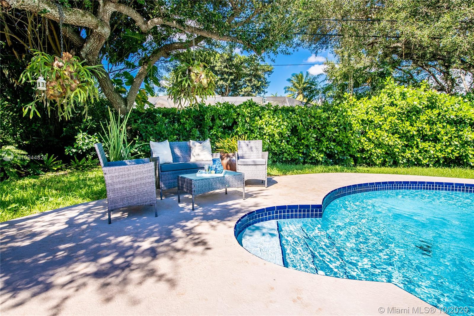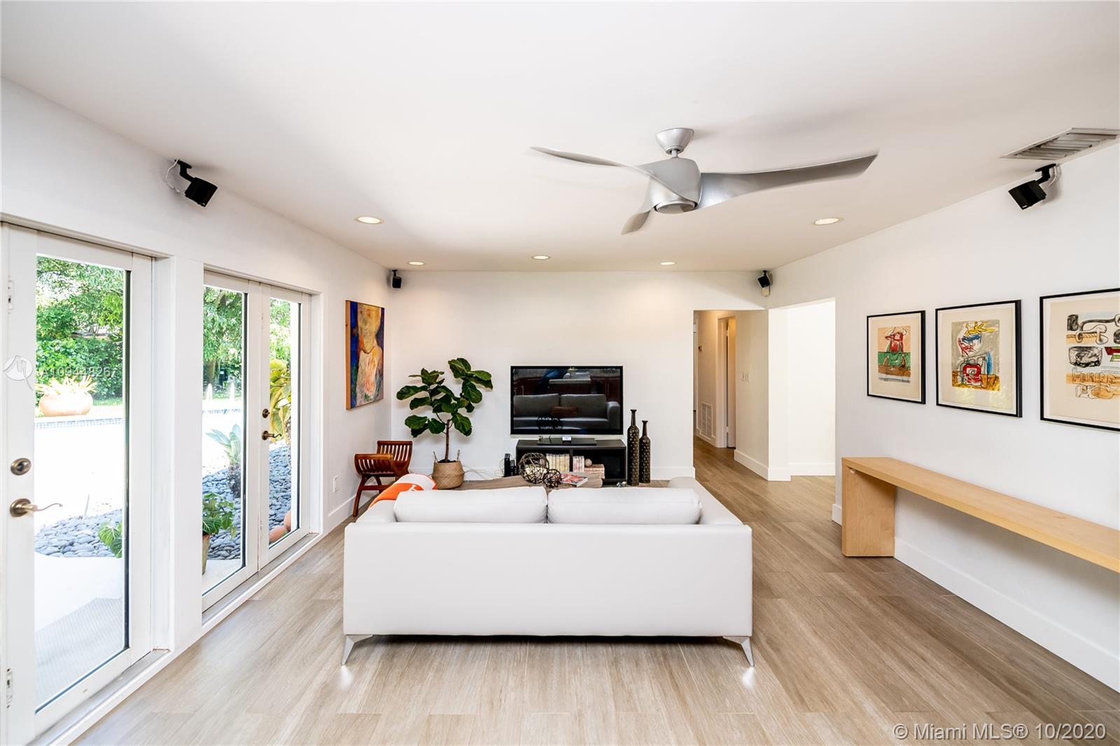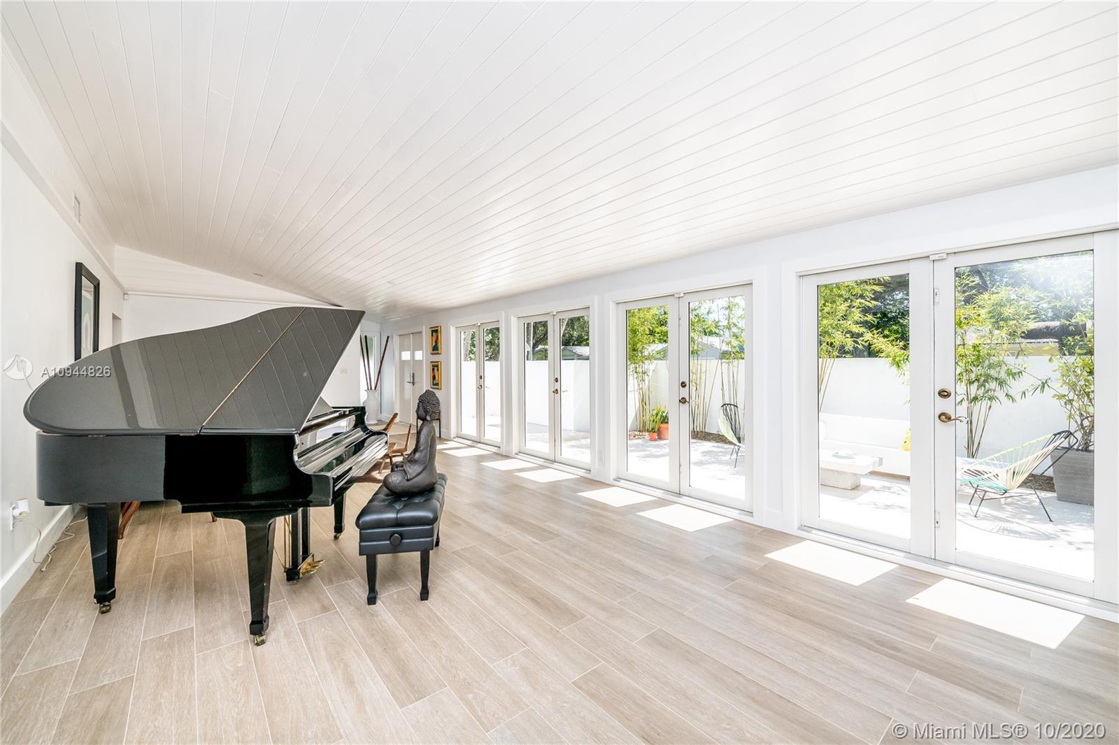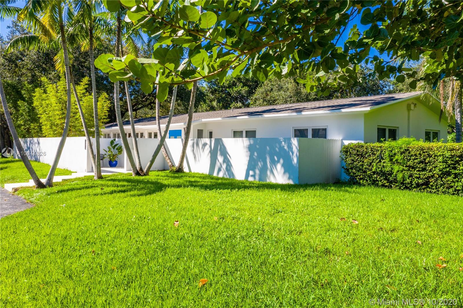 On a corner lot in a prime neighborhood, this residence offers a coveted NE Pinecrest setting. Nearby highlights incl. acclaimed Pinecrest Elementary (2 blks), Coral Oaks Tennis & Wellness Ctr (5 blks), Pinecrest Gardens & Dante Fascell Park, plus the beloved landmark Wayside Produce Market & Juice Bar. Superior privacy behind a high wall around a large front Zen patio + tall dense landscaping around the sides & back is a much-appreciated bonus. Another standout feature is the sunny living & dining great room with a tongue-and-groove ceiling + a wide bank of French doors overlooking the Zen patio. The flow-thru family room & kitchen open to the pool & fenced yard. The layout places 4BD/2BA on the East side + 1BD/1BA on the West side. Brand New Roof. 5BD / 3BA / 2,359 SF Adj / 16,466 SF Lot