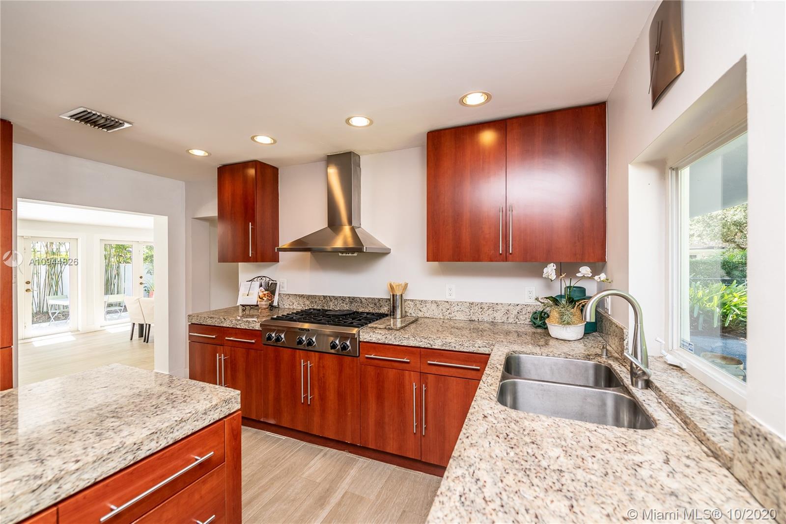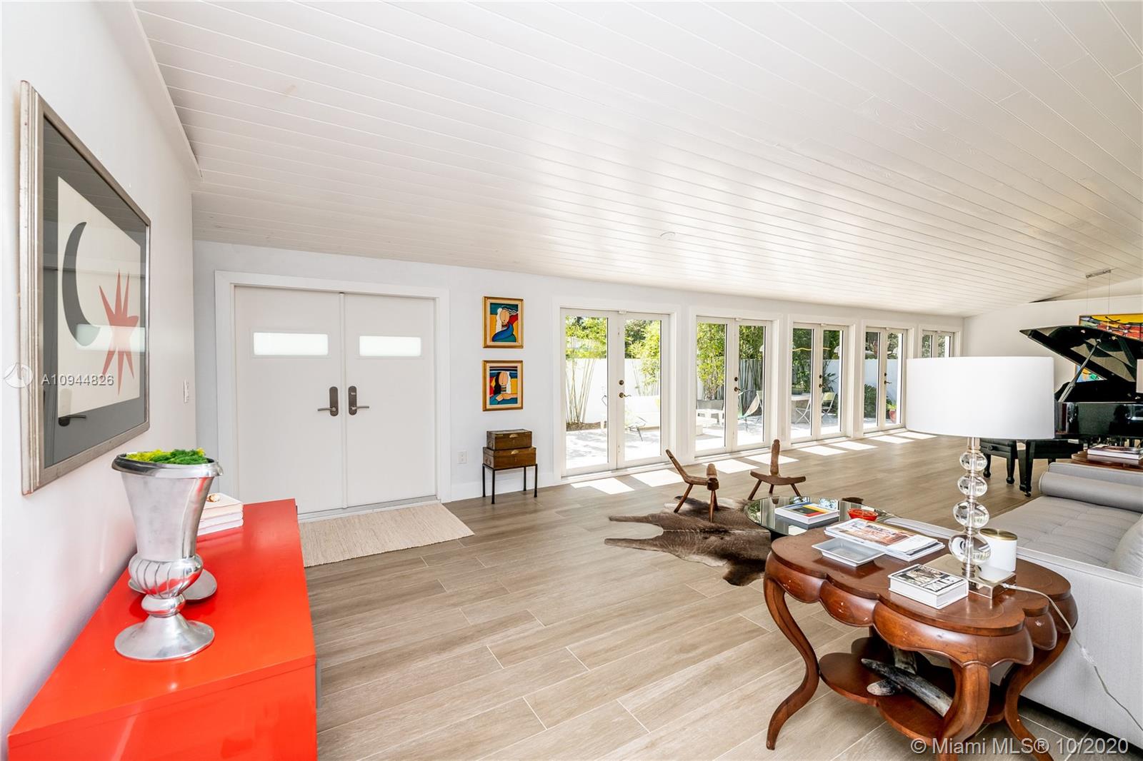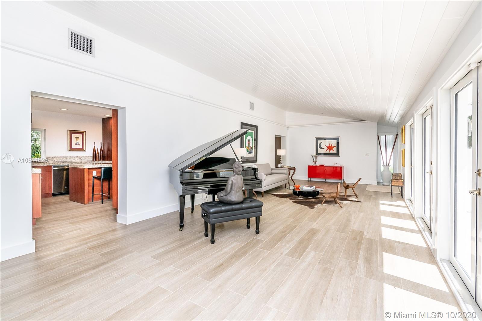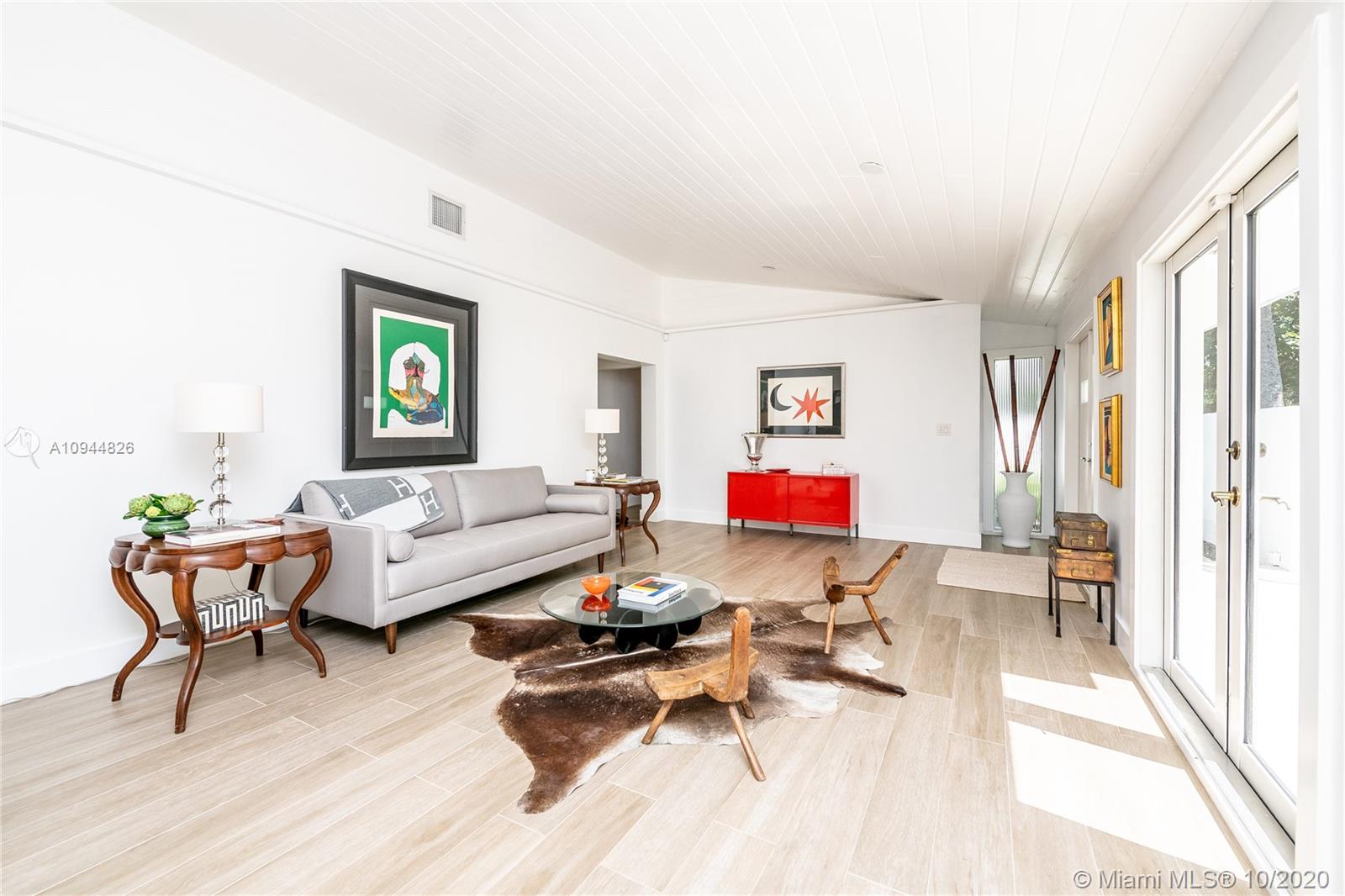 On a corner lot in a prime neighborhood, this residence offers a coveted NE Pinecrest setting. Nearby highlights incl. acclaimed Pinecrest Elementary (2 blks), Coral Oaks Tennis & Wellness Ctr (5 blks), Pinecrest Gardens & Dante Fascell Park, plus the beloved landmark Wayside Produce Market & Juice Bar. Superior privacy behind a high wall around a large front Zen patio + tall dense landscaping around the sides & back is a much-appreciated bonus. Another standout feature is the sunny living & dining great room with a tongue-and-groove ceiling + a wide bank of French doors overlooking the Zen patio. The flow-thru family room & kitchen open to the pool & fenced yard. The layout places 4BD/2BA on the East side + 1BD/1BA on the West side. Brand New Roof. 5BD / 3BA / 2,359 SF Adj / 16,466 SF Lot