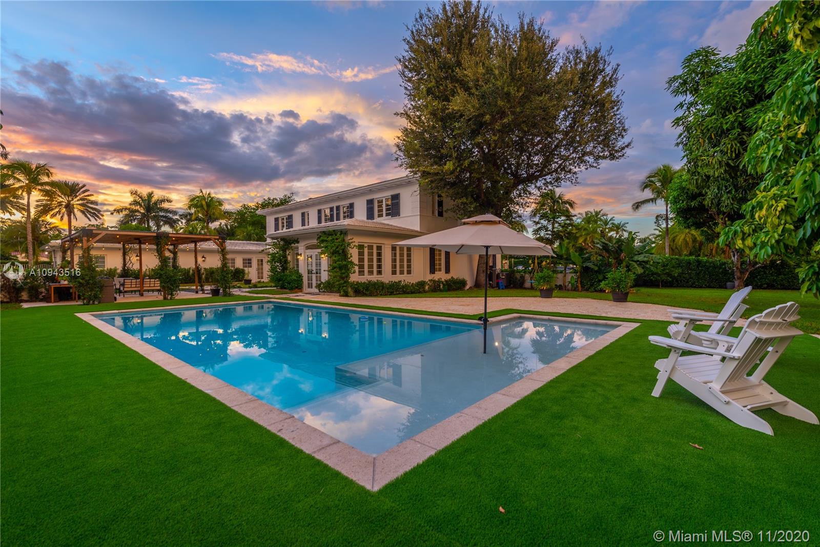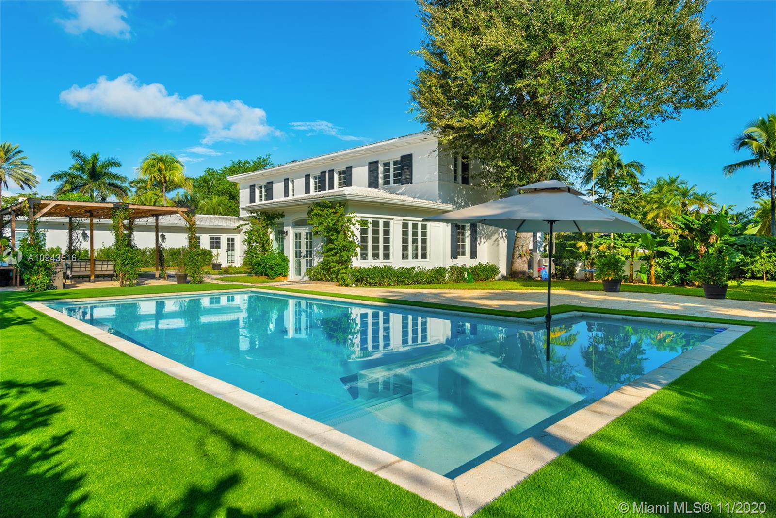 Impeccably renovated 4,397 SF Historic Home on a 20,238 SF triple lot on the Granada Golf Course. The lushly landscaped yard offers exceptional privacy, pergola and stunning pool. This luxurious 2-story home boasts 5 bedrooms, 4 with ensuite baths, powder bath and Cabana bath with Waterworks fixtures. The Primary Suite features a midnight kitchen, double head shower, soaking tub and the ultimate walk-in closet. The main level includes multiple living areas, office, playroom and guest suite anchored by a top-of-the-line Chef's kitchen with an 86” La Canche range, Miele and Sub-Zero appliances and oversized island, ideal for entertaining. Custom built-ins throughout. Blocks from the best schools, parks, restaurants and shops, this home is the crème de la crème in prestigious Coral Gables.