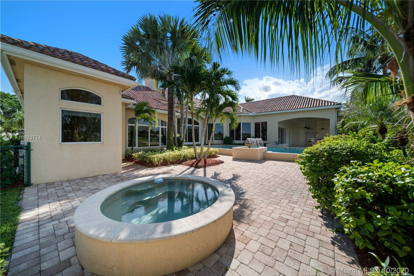 La Bahama Hacienda, one of 12 custom-built estates, is tucked away on The Island at Boca West, a private, gated enclave for the elite located in the prestigious Boca West Country Club. This Mediterranean Contemporary mansion sits on over half an acre lot with 10,006 sqft. under roof. This beauty has it all: 5 En Suite Bed + an Office, 7 Full Baths, 2 Half Baths, 5 Cars and 1 Golf Cart Garage, and an infinity-edge pool. An open floor plan, coffered 16'-20' ceilings with crown molding throughout the home, unique terra cotta roof tiles, and all exquisite finishes. Oversized Main Suite with two separate Full Bathrooms, a separate Half Bathroom, two separate walk-in closets, and direct access to jacuzzi and pool. The Veranda with a full outdoor kitchen offers additional space for entertaining.