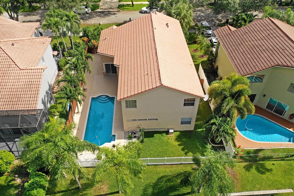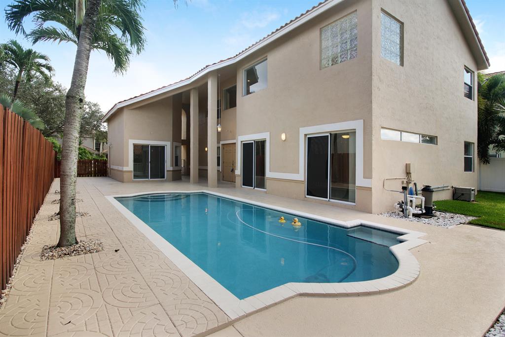 Stunning 5 bed 3 bath Single Family home! Courtyard model.The gourmet kitchen was just redone and upgraded with great features like stainless steel appliances, quartz counter tops,real wood cabinets, kitchen island plus upgraded pantry with sliding shelves. Floors downstairs Italian ceramic tiles.A lots a natural lighting, Crown molding in all living areas.Upstairs has hardwood floors. Whirlpool bathtub on Master Bath, frameless shower glass in all recently redone bathrooms.Mother-in-law suite with separated entrance overlooking the gorgeous pool area.Pool with Diamond brite plus vacuum. Serene water views. Irrigation from the canal, brand new pump.Gated Community with very low association fees, located in this prestigious area!Schedule a showing today!