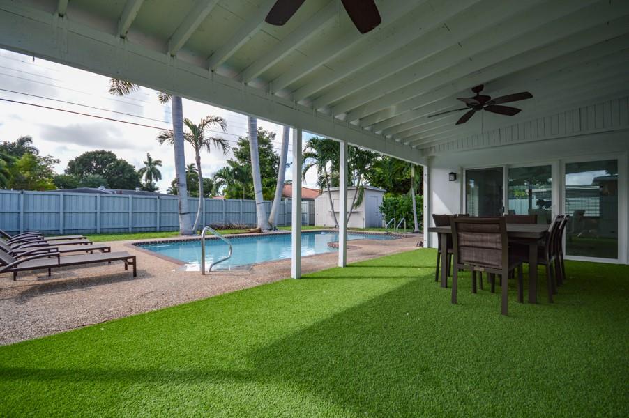 Contemporary modern feel awaits you at this wonderful 4 bedroom home.Perfectly suited for both relaxation and entertaining with its clean lines and light and airy spaces. Lots of windows and doors - all hurricane impact make for a seamless indoor/outdoor living. You have an inviting patio and pool area in the backyard which also features an extra large shed. Bedrooms are all great size with the 4th bedroom possibly serving as an in law quarter as it has it's own private entrance. Bathrooms have also been remodeled. Home is hurricane prepared with additional straps added to the roof. This immaculate home is just lovely and move in ready,located within minutes to all that south Florida has to offer.