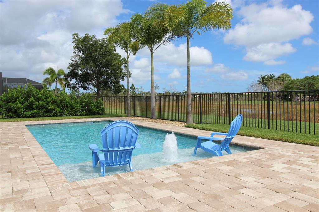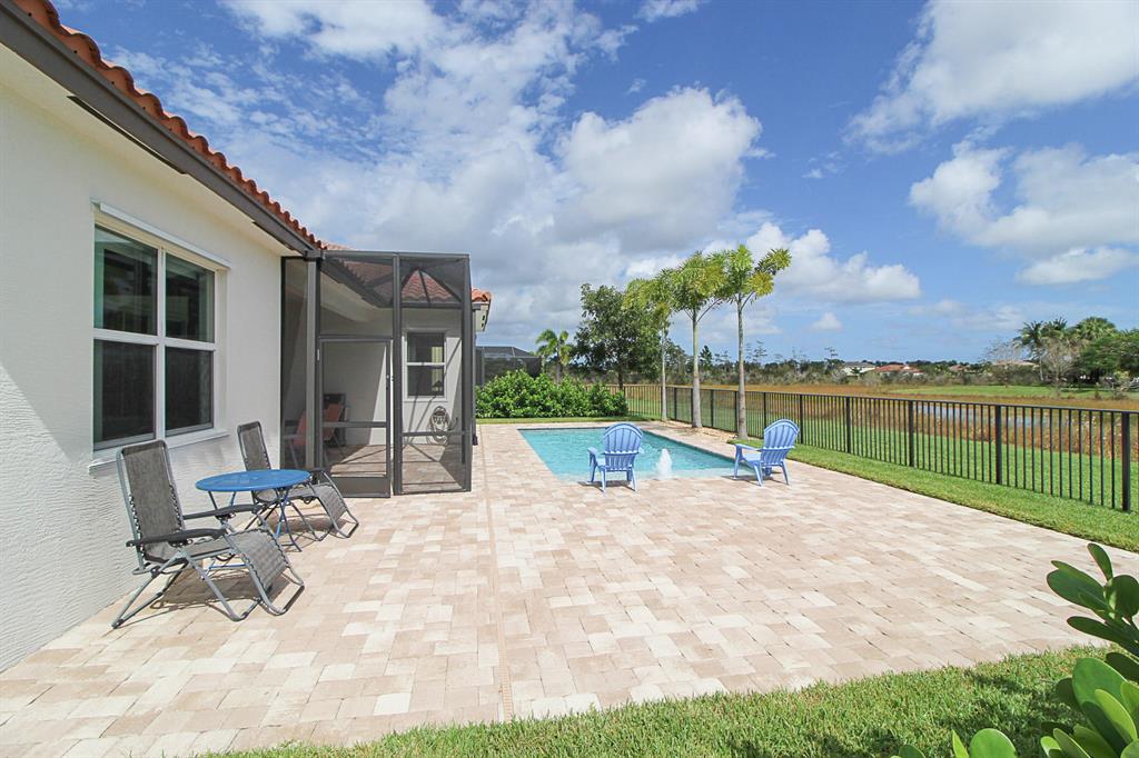 Completely Remodeled Pool Home with no neighbors to the rear! 3 Bedrooms plus Den/Home Office! No carpeting. 3 full bathrooms, 2 car garage & tranquil lake & preserve views! Eye catching curb appeal including paver driveway, upgraded new landscaping & decorative shutters. Walk in and say WOW - spacious open floorplan. The chef's dream kitchen features 42'' espresso cabinets upgraded with crown molding & built-in pantry, granite counters & island with barstool seating, stainless steel appliances including wall oven, & breakfast area with butler's pantry & picturesque views. New Refrigerator! Wall oven & Glass cooktop. This kitchen has so many cabinets! The kitchen is open to the great room which is bright with natural light from sliders that lead out to a covered patio. CONTINUED