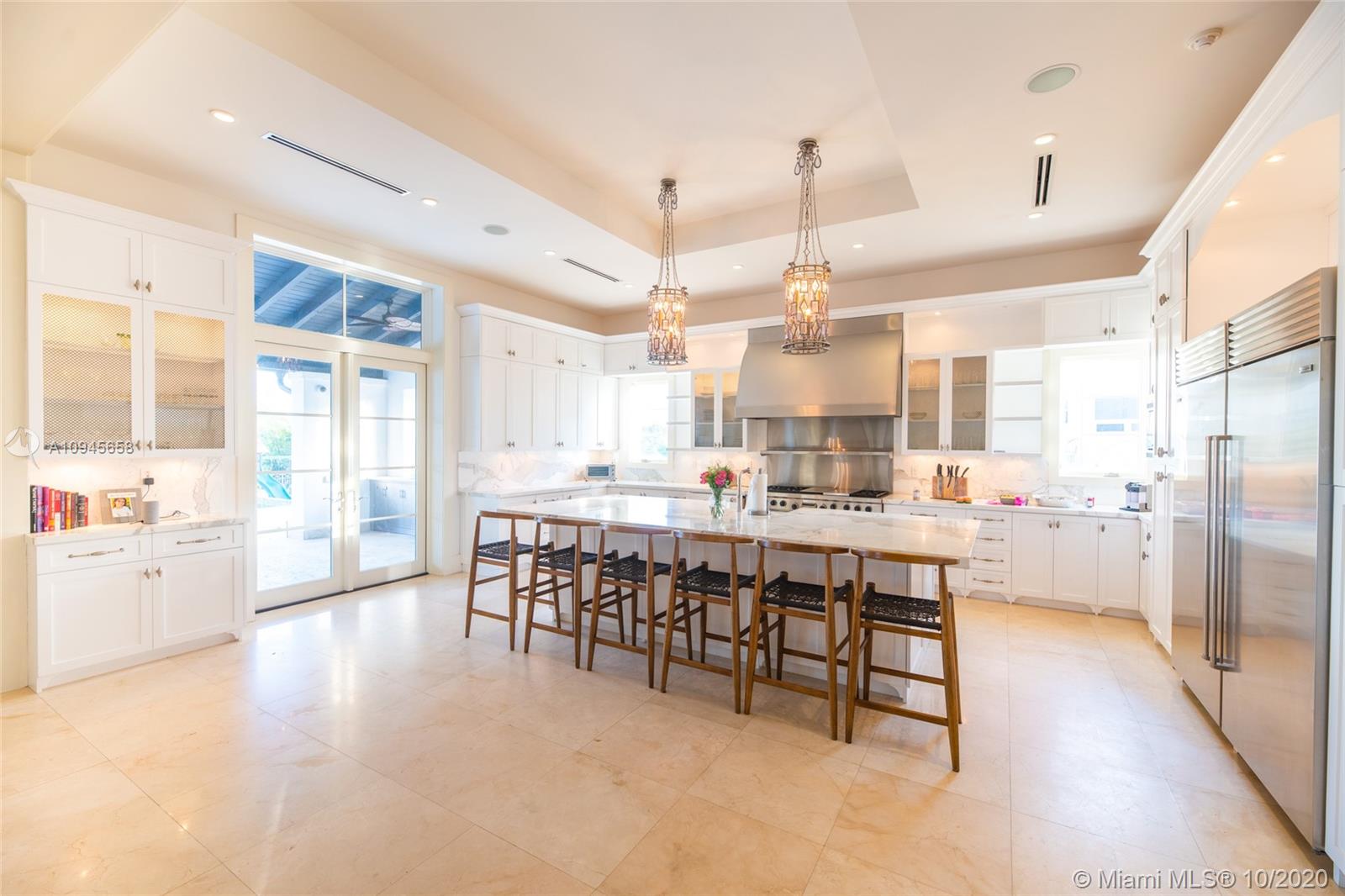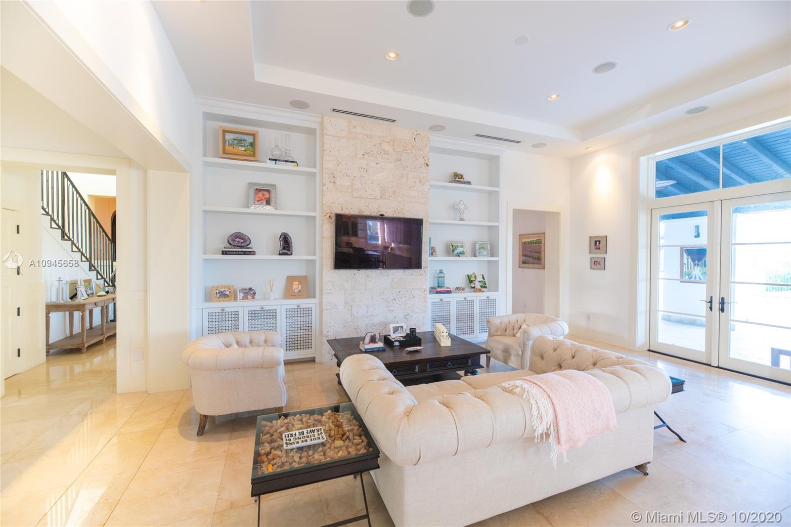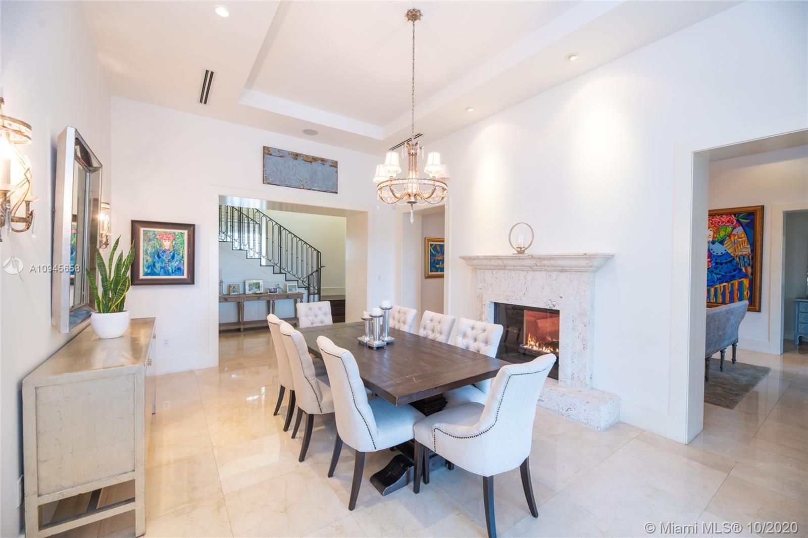 Custom built waterfront Tuscan villa with a modern interior flare, nestled behind the beautiful Mangroves of Matheson Hammock Park. This gorgeous home is located in the exclusive gated community of Hammock Oaks, Coral Gables and boasts a large 20,392 square foot lot and a stunning 8,765 total square foot home with 8 bedrooms and 7.5 bathrooms. First Floor features a gourmet chef kitchen with top of the line Wolf, Miele and Subzero appliances, gas stove and carrera marble countertops. An entertainer's dream, backyard features oversized covered Loggia with outdoor kitchen and large infinity pool. Direct water access with a 55’ boat dock included in price.