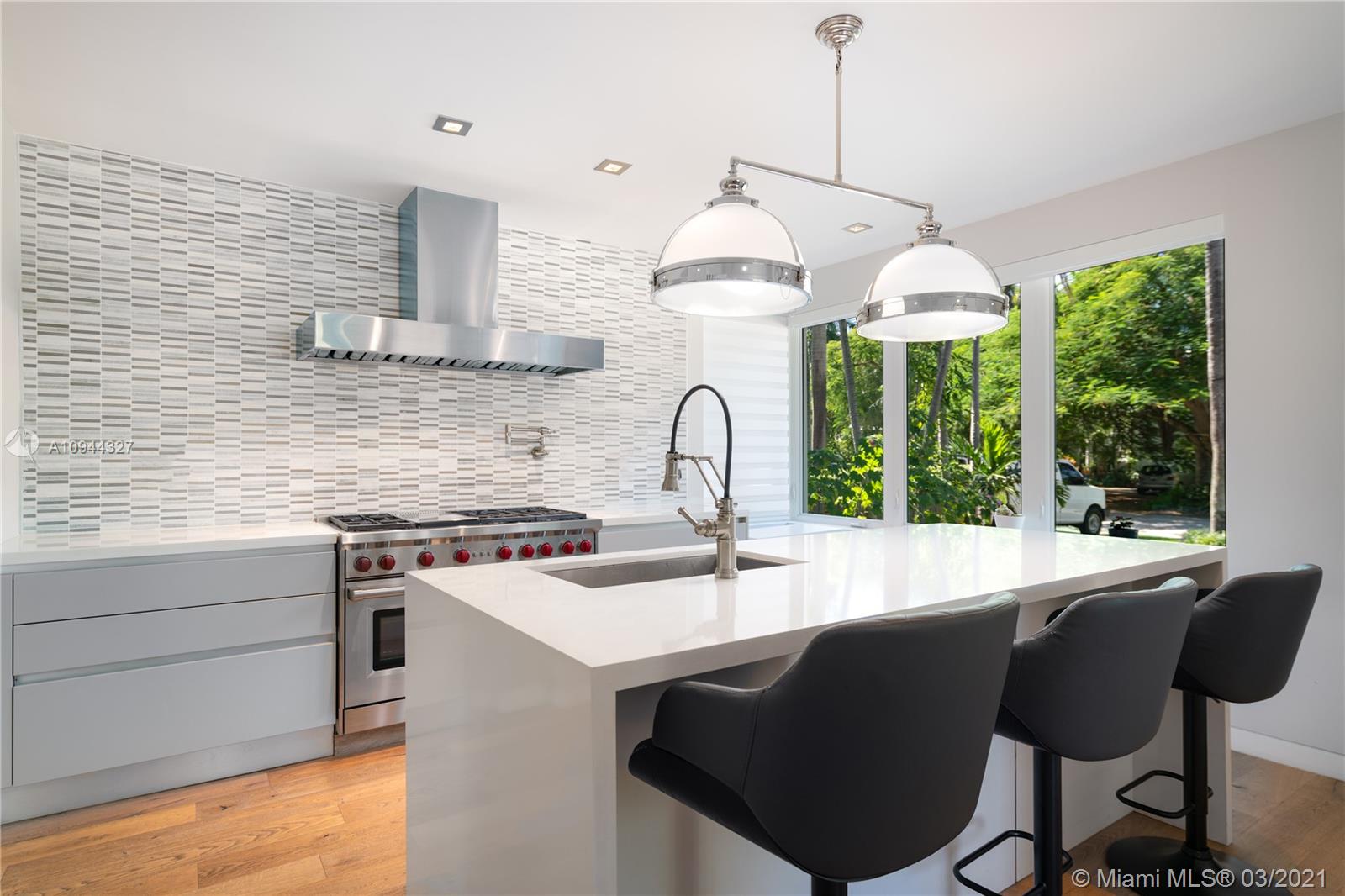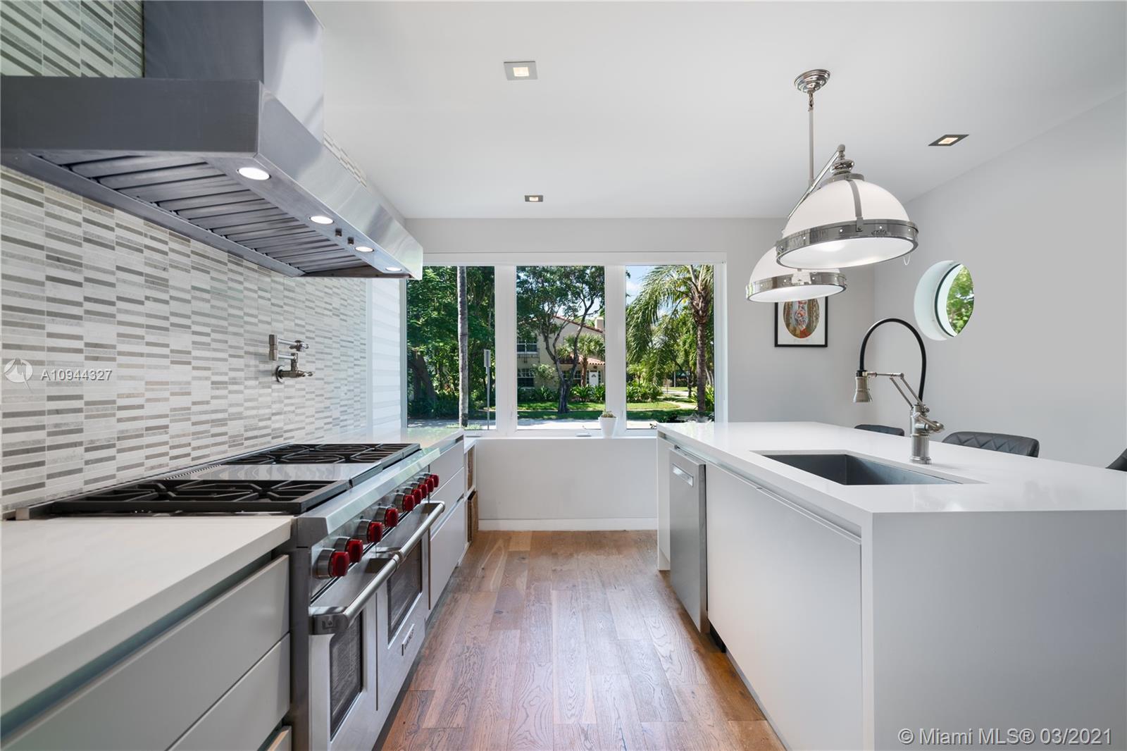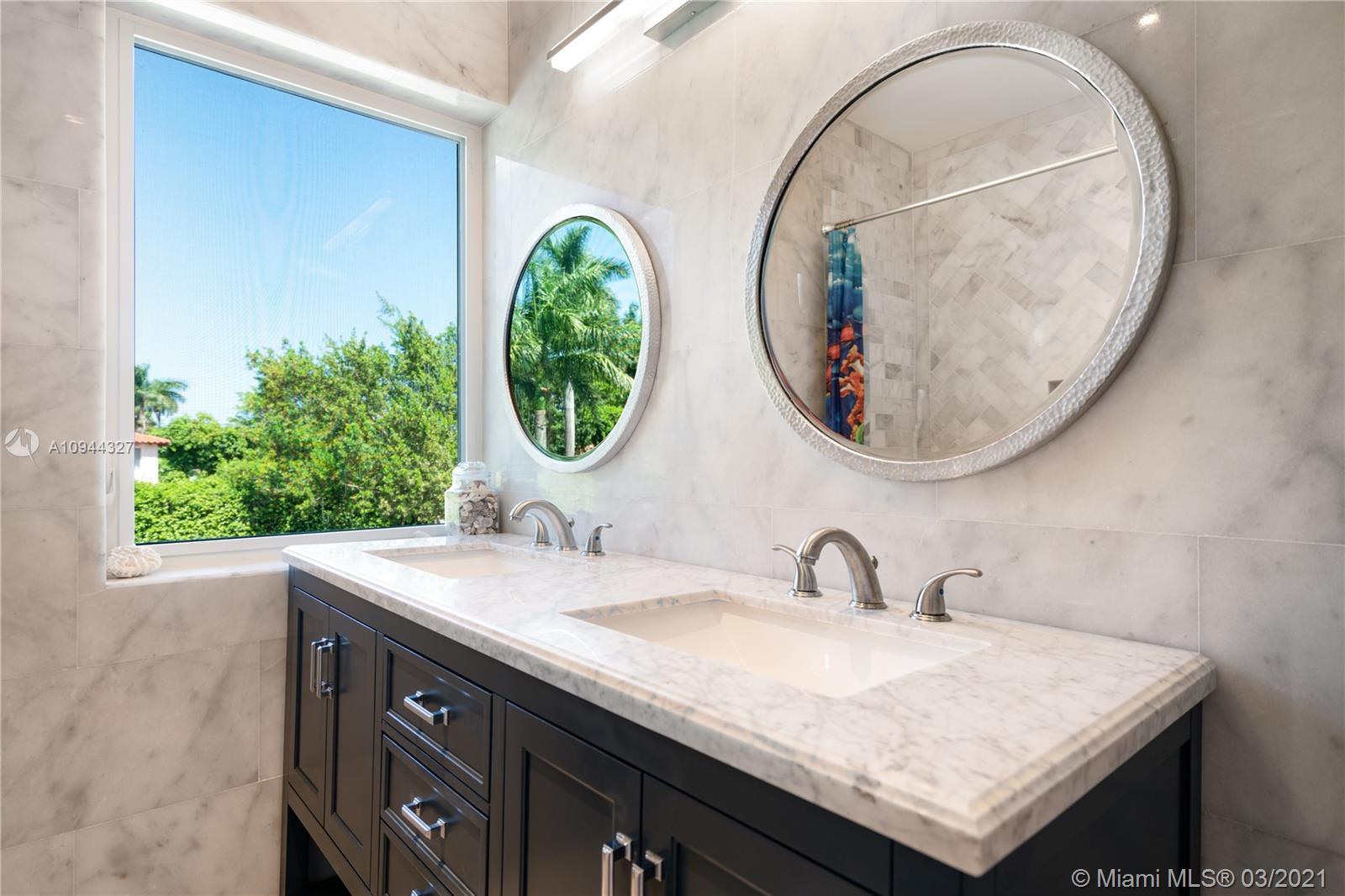 Fully renovated corner lot home taken down to the studs. The house has an open floor plan, 5bed/4full bath +1 car garage. Beautiful Boffi kitchen w/Sub-Zero & Wolf appliances. The second floor has 3 bedrooms & 2 baths all upgraded with Porcelanosa European slabs + steam shower and Carrera marble. Custom doors and oak wood flooring throughout. All hurricane impact windows. This corner lot has a private yard w/large swimming pool and amazing sunlight exposure perfect for entertaining. There is an office/5th bedroom/in-law quarters w/private entrance. Great natural light throughout. Close to 41st St shops and eateries. 5 mins drive from the Ocean and South Beach.