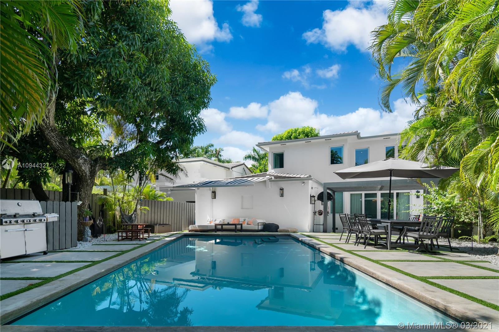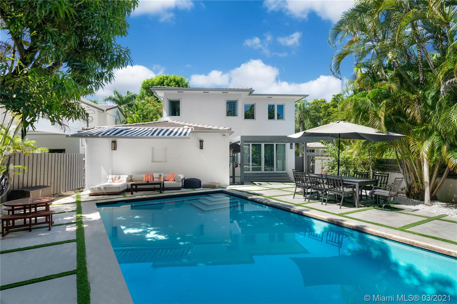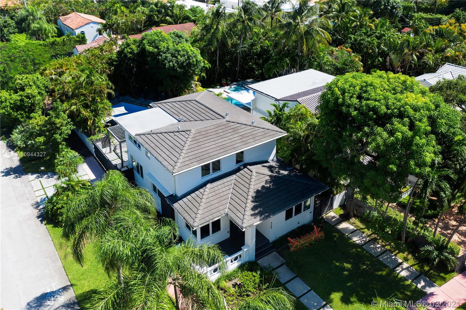 Fully renovated corner lot home taken down to the studs. The house has an open floor plan, 5bed/4full bath +1 car garage. Beautiful Boffi kitchen w/Sub-Zero & Wolf appliances. The second floor has 3 bedrooms & 2 baths all upgraded with Porcelanosa European slabs + steam shower and Carrera marble. Custom doors and oak wood flooring throughout. All hurricane impact windows. This corner lot has a private yard w/large swimming pool and amazing sunlight exposure perfect for entertaining. There is an office/5th bedroom/in-law quarters w/private entrance. Great natural light throughout. Close to 41st St shops and eateries. 5 mins drive from the Ocean and South Beach.