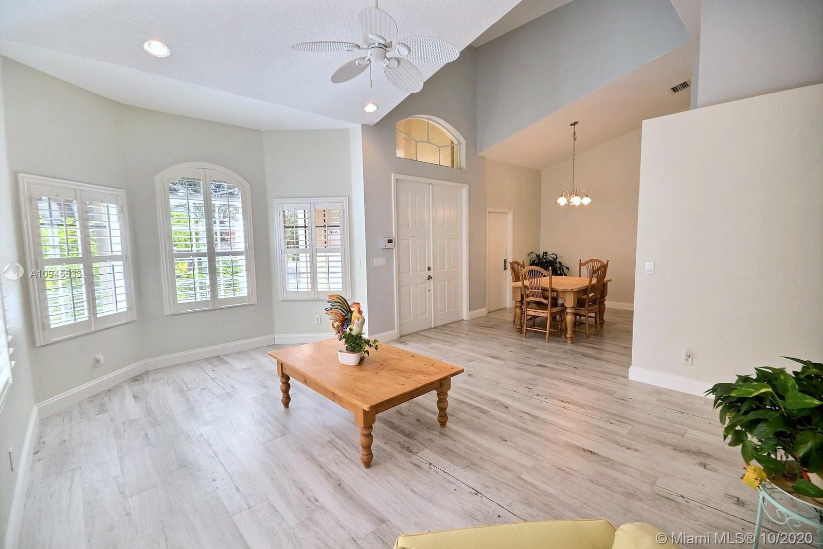 ABSOLUTELY GORGEOUS LAKEFRONT HOME IN PORTOFINO SOUTH, MONARCH LAKES. REMODELED HOME FEATURES A CUSTOM FLOOR WITH OPEN LIVING AREA, HIGH CEILINGS, BEAUTIFUL WHITE KITCHEN WITH GRANITE COUNTERS, ISLAND WITH SINK AND STAINLESS STEEL APPLIANCES. OVERSIZED PRIMARY BEDROOM SUITE WITH TRAY CEILINGS, LARGE WALK-IN CLOSET WITH WINDOW, SPA-LIKE EN-SUITE BATH WITH DOUBLE VANITIES, SEPARATE JETTED TUB AND FRAME-LESS GLASS SHOWER. NEW MODERN TILE FLOORS THROUGHOUT, ELEGANT PLANTATION SHUTTERS, CEILING FANS, FRESHLY PAINTED. SERENE BACKYARD WITH COVERED AND SCREENED-IN PATIO WITH SKYLIGHTS, MATURE BUTTERFLY GARDEN, PRIVACY HEDGES AND FABULOUS LONG LAKE VIEWS. 2 CAR GARAGE, ACCORDION HURRICANE SHUTTERS AND WIRED FOR EMERGENCY GENERATOR, ALL IN THIS DESIRABLE GATED COMMUNITY.