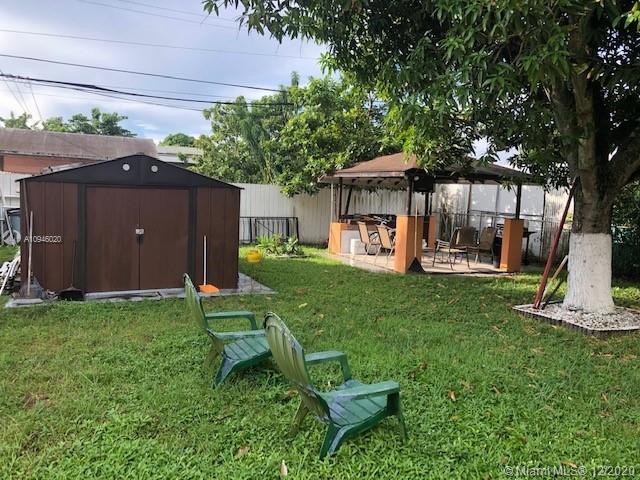Don’t miss this great opportunity to own this very well maintained home in East Hialeah situated in a desired family-oriented neighborhood! Excellent 3bed 2baths,one-story family home. Tile floors in common areas and wood flooring in the bedrooms.Open format kitchen with spacious flow-through living,dining area,and family room.This home also features a separate laundry room for convenience and easy use. Huge rear yard with build-in gazebo & utility shed offers additional storage,plenty of room for a pool,great space for entertaining family and friends.A delicious mango tree is part of the beautiful and peaceful backyard. Centrally located near schools,shops and major roads.A nice front porch entrance and driveway with plenty of room to park cars,boats or other recreational vehicles.No HOA.